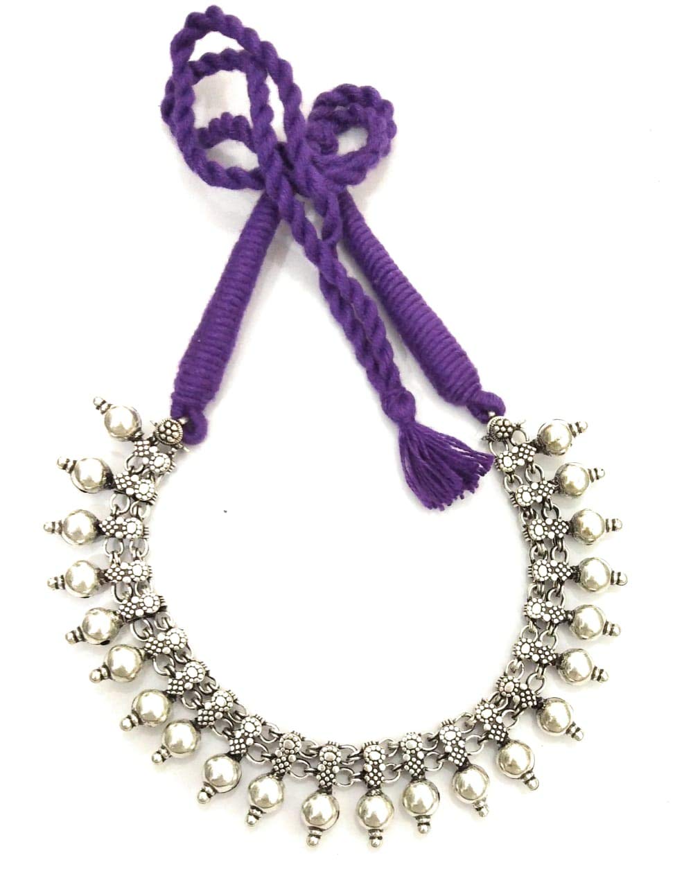 Beautiful tribal inspired necklace Thread in cotton thread or dori with round ball oxidised metal beads embellishment. This choker is an amazing choker for ladies fashion for festive & cultural occasions & events. This statement necklace is a perfect party wear to catch the eyeball.