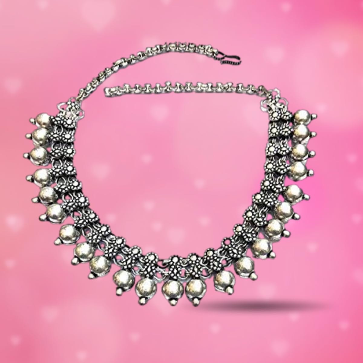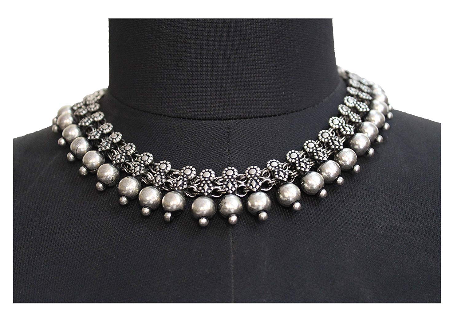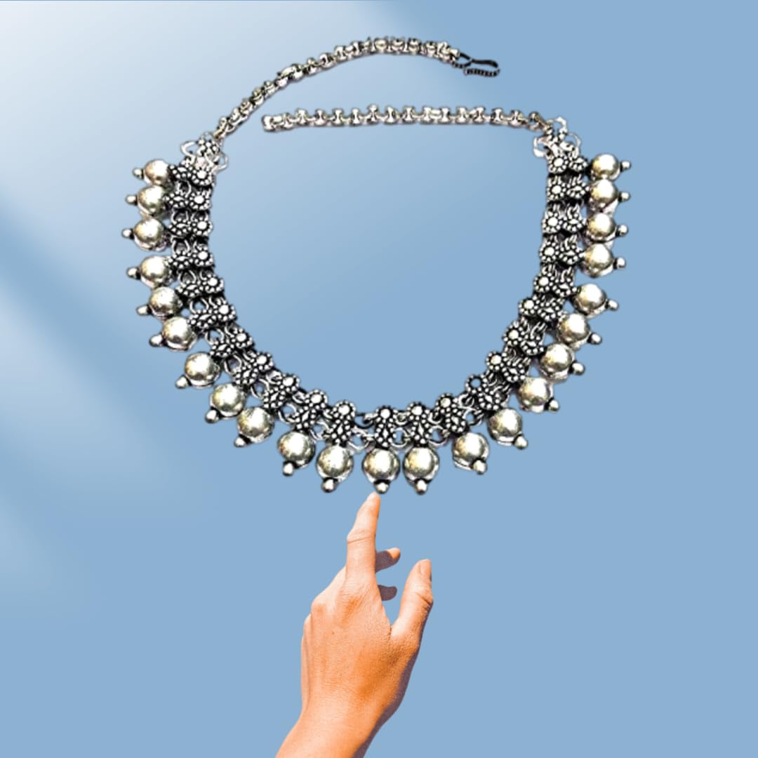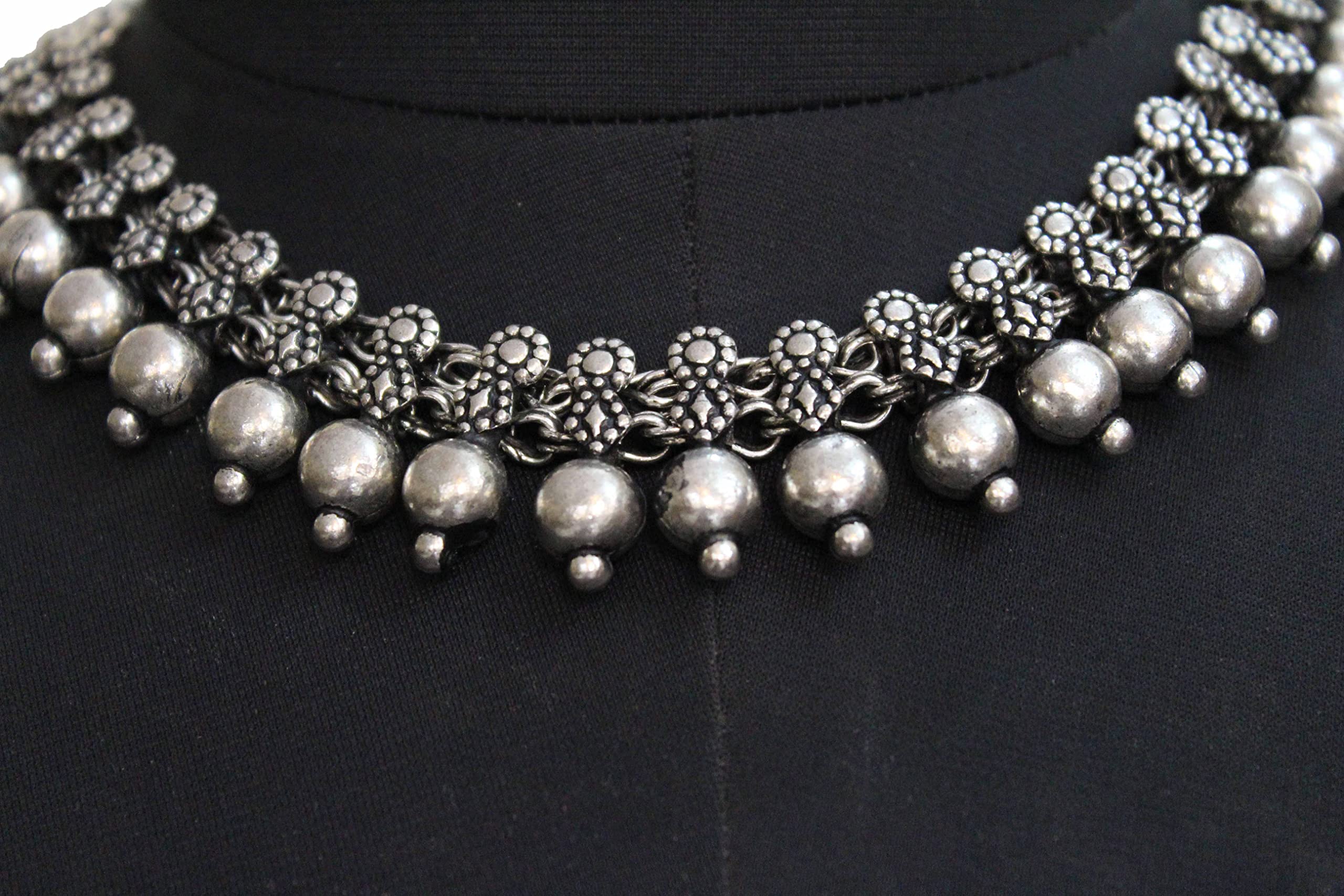 athizay Rajasthani Antique Heavy Tribal Statement Round Bead Necklace made of Oxidized silver || Made in India