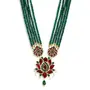 Binni s Wardrobe green beaded five lines Beautiful handcrafted menakari lotus necklace set (Green&Red)