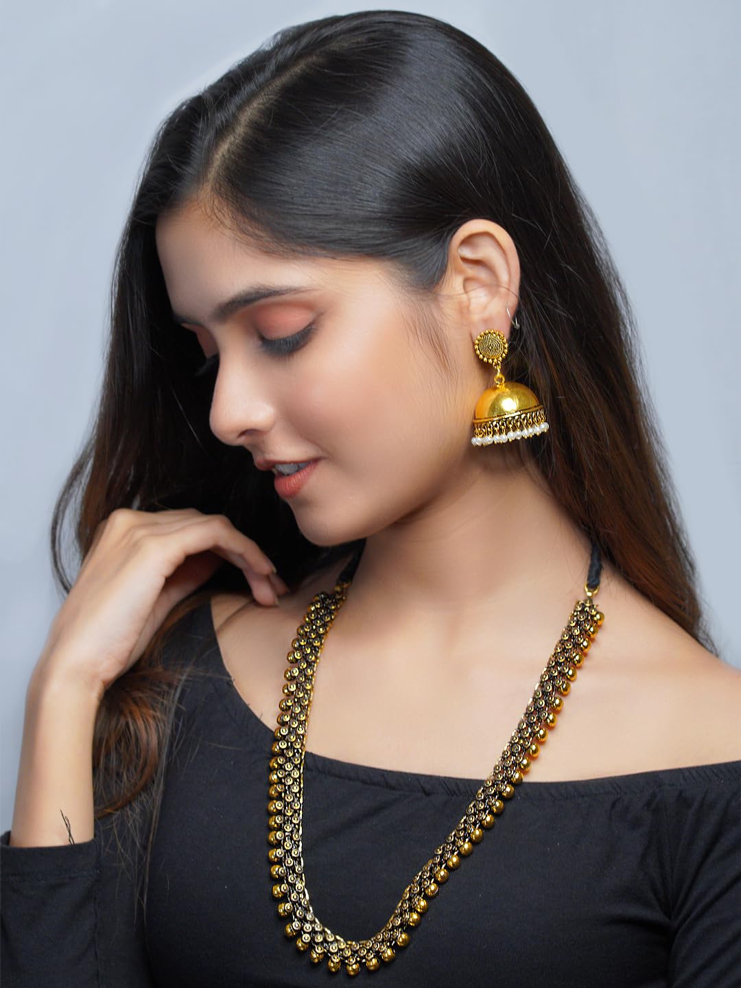 PRODUCT DETAILS This jewellery set consists of a necklace and a pair of earrings Gold-toned layered necklace has white pearl-beaded details gold-plated Secured with a drawstring closure A pair of matching drop earrings each secured with a post-and-back closure Size & Fit Necklace dimensions: 24 cm x 1.5 cm (Length x Width) Earrings dimensions: 5 cm x 1 cm (Length x Width) Material & Care Material: German silver Plating: Gold-Plated Stone Type: Artificial Beads Care Instruction Wipe your jewellery with a soft cloth after every use Always store your jewellery in a flat box to avoid accidental scratches Keep sprays and perfumes away from your jewellery Do not soak your jewellery in water Clean your jewellery using a soft brush dipped in jewellery cleaning solution only