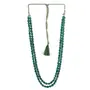 Green layered necklace Material and stone type: german silver with kundan Closure: drawstring Size & Fit Necklace Length: 60 cm Material & Care Material: German Silver Stone type: Kundan Wipe with a soft lint-free clean cloth. Avoid contact with perfume soap hairspray and cosmetics. Avoid using in swimming pools. Store your jewellery in a fabric-lined box to prevent loosening of stone setting