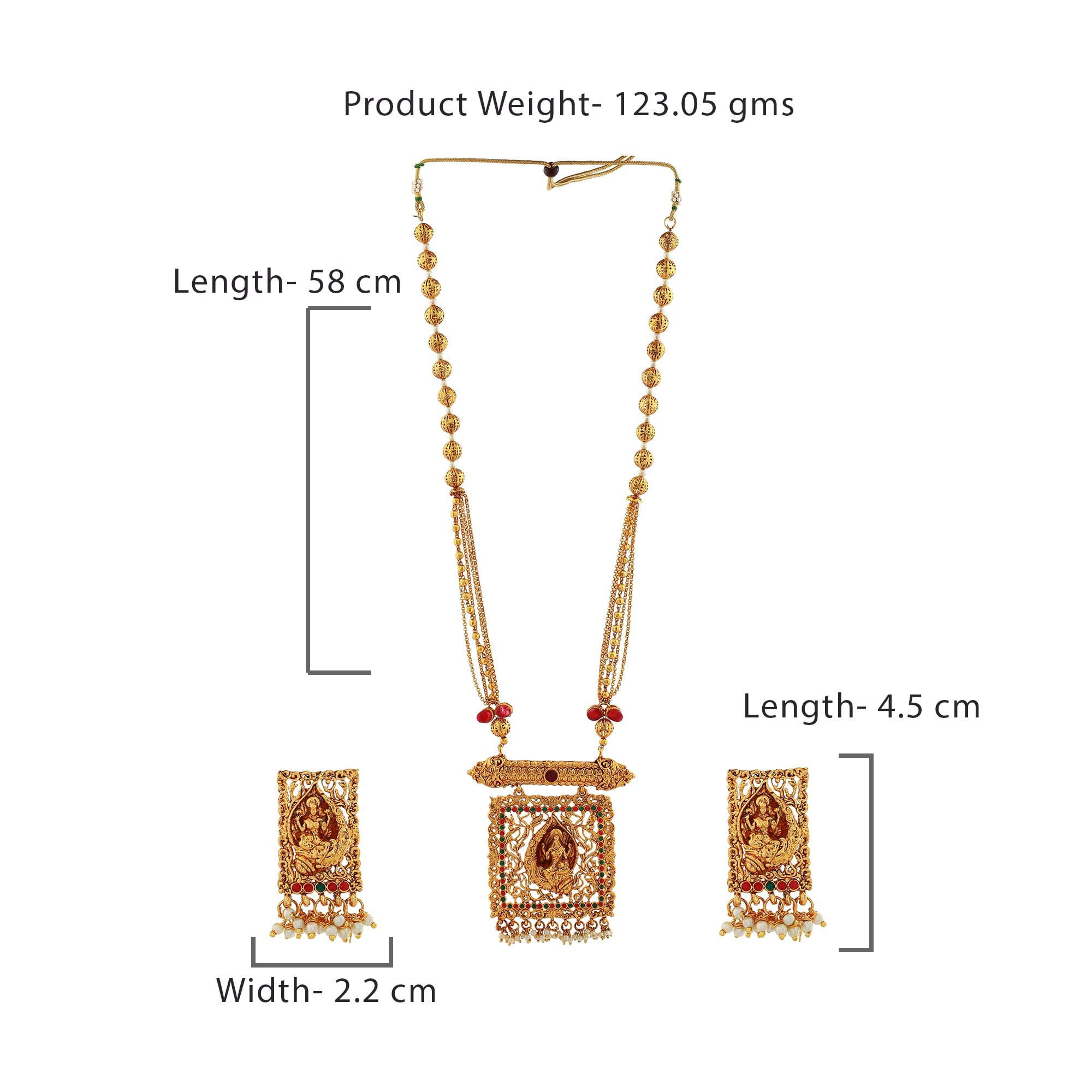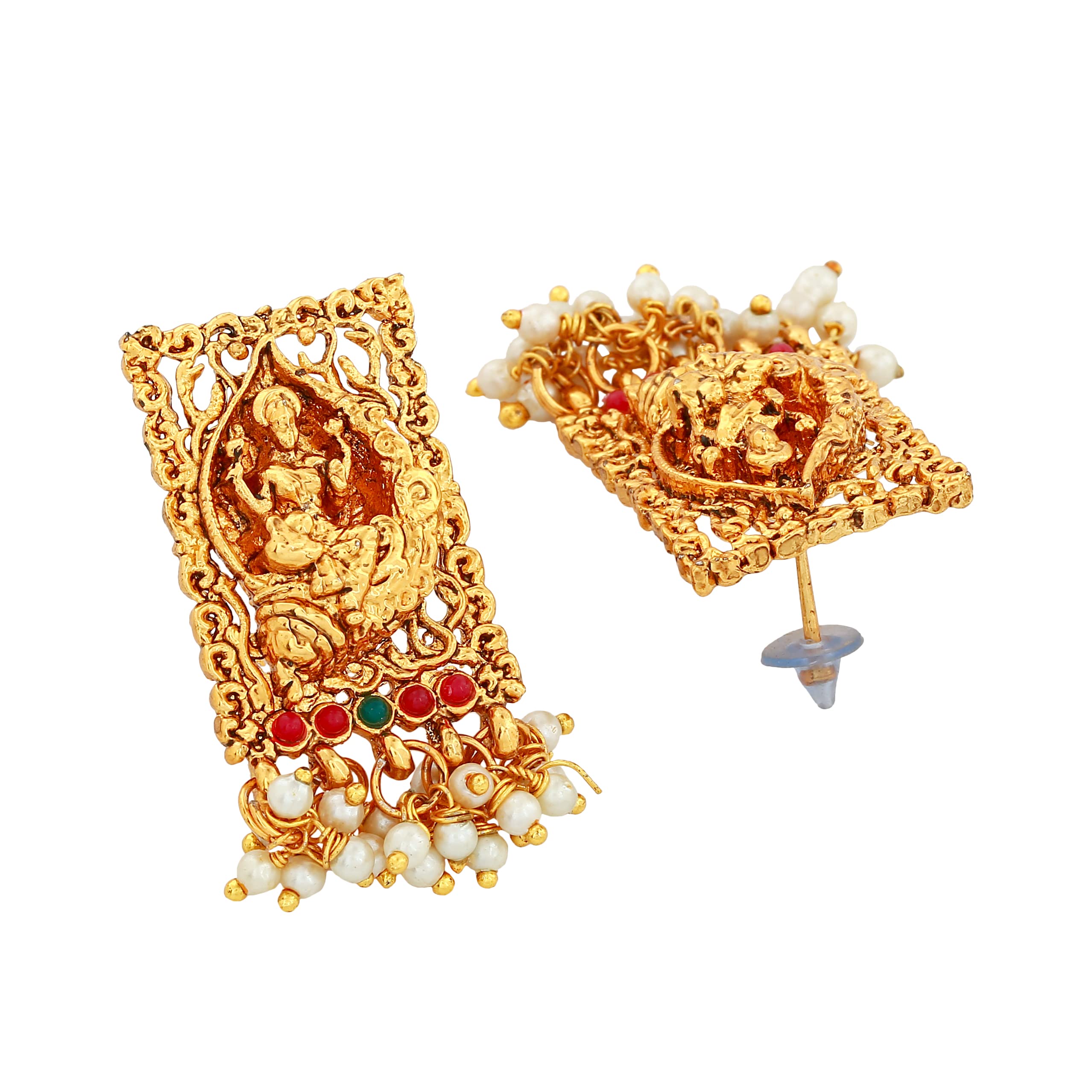 Estele Gold Tone Traditional Lakshmi Devi Designer Necklace Set with Pearls for Women