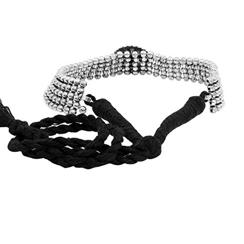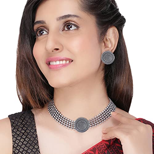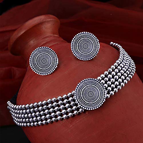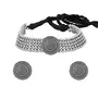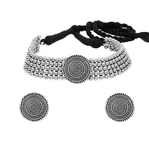 Girl's Ethnic Threaded Jewelry Designer Beads Traditional Choker Necklace Set Oxidised Silver Medium