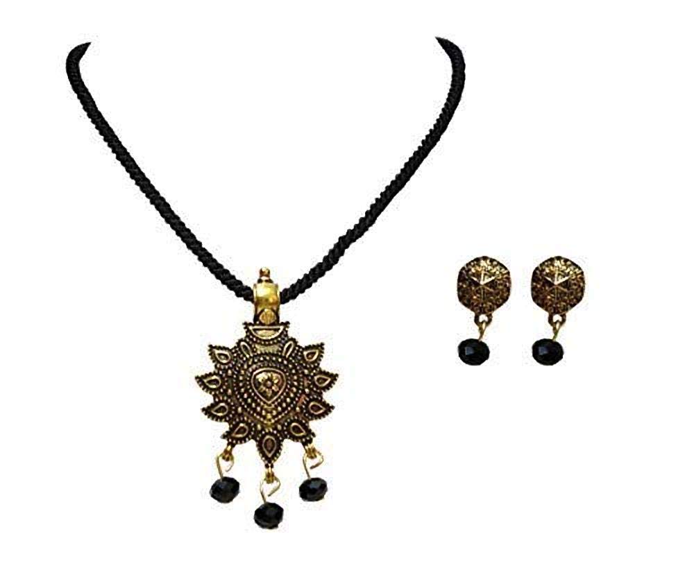 GOELX Black and Gold Antique Flower Choker Style Mangalsutra Necklace with Earrings for Women