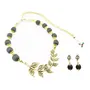 GOELX Silk Thread Leaf Pendant Necklace Handcrafted Black Set with Earrings