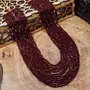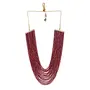 This jewellery set is crafted in 18K gold plated traditional light weight beaded mala. The necklace feature ruby onyx stone beads work in it and is secured with a drawstring closures. Style this necklace set with a saree or a salwar suit to enhance the look.
