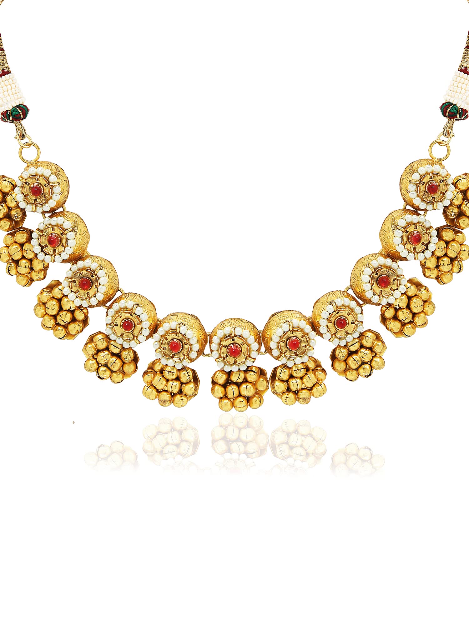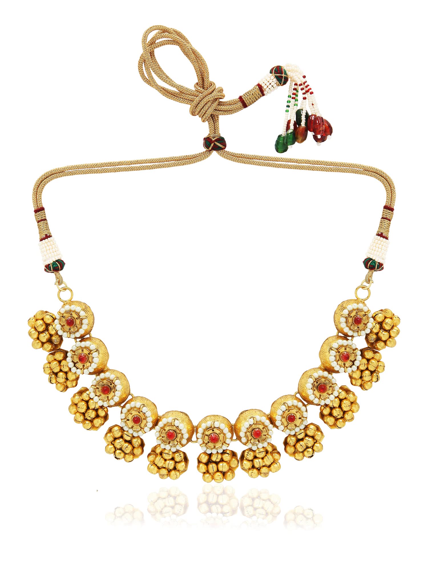 I Jewels 18k Gold Plated Indian Wedding Bollywood Antique Choker Necklace Jewellery Set with Earrings for Women (MC092-94)
