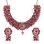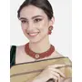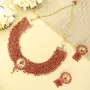 This jewellery set is crafted in 18K gold plating and consists of a choker and a pair of earrings. The necklace feature beads & pearls studded in it and is secured with a drawstring closures. Style this necklace set with a saree or a salwar suit to enhance the look.