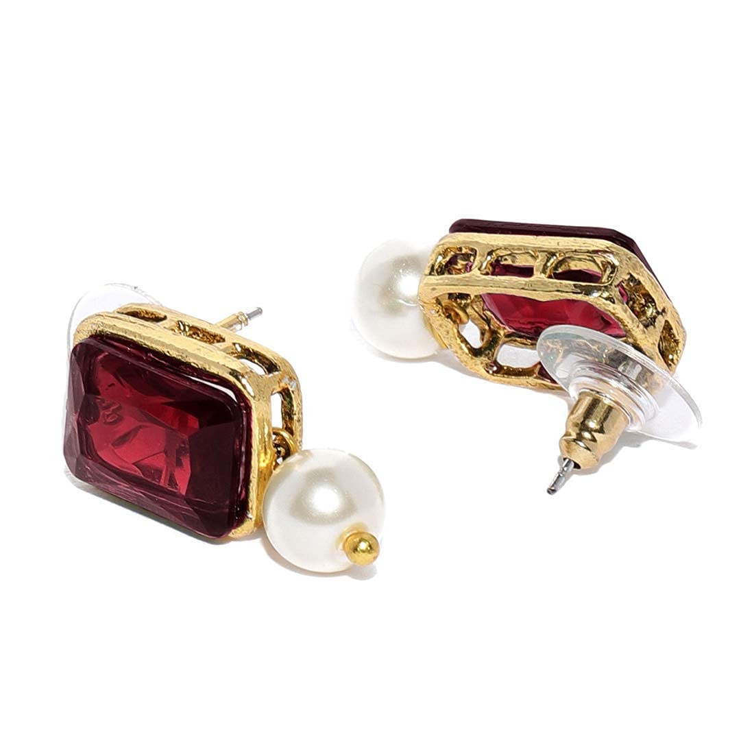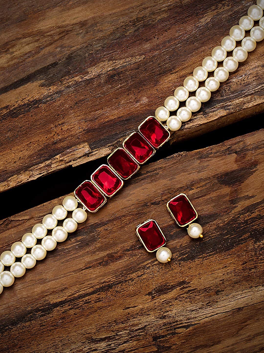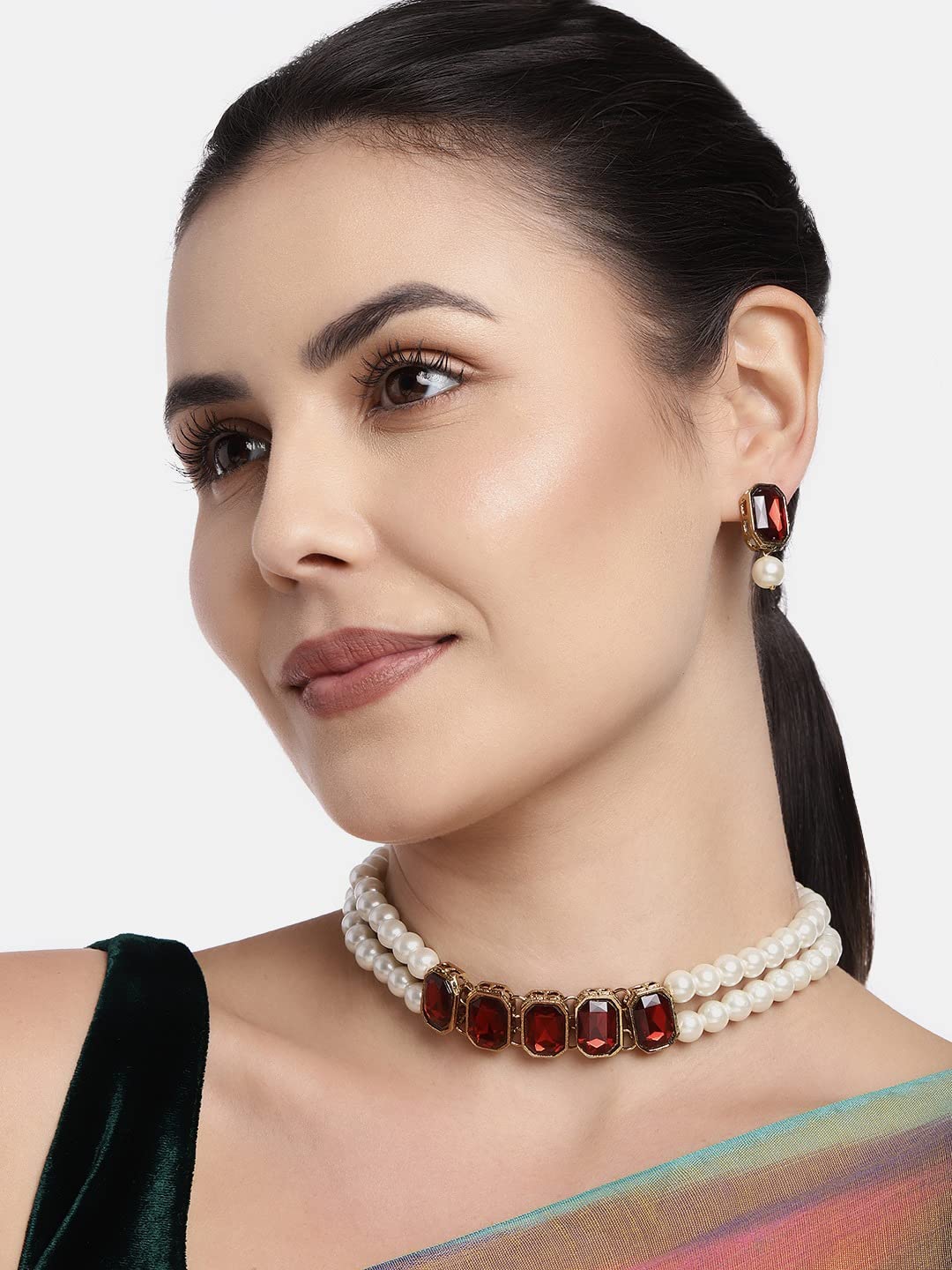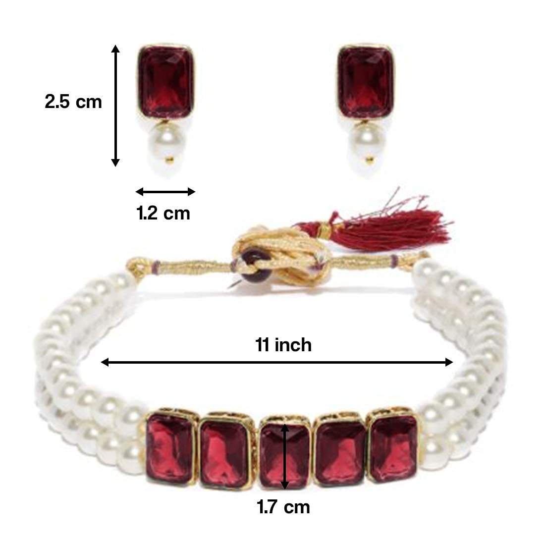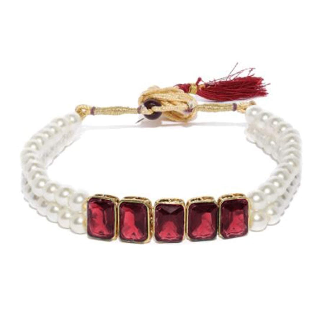 I Jewels 18K Gold Plated Indian Wedding Bollywood Crystal Stone Pearl Studded Choker Necklace Jewellery Set for Women (ML287)