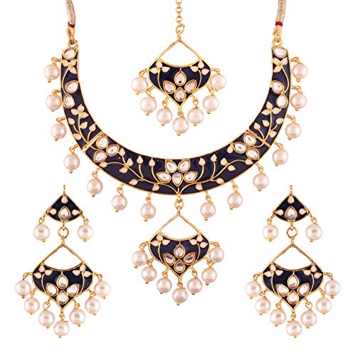I Jewels 18k Gold Plated Indian Wedding Bollywood Kundan Meenakari Necklace Jewelry Set for Women