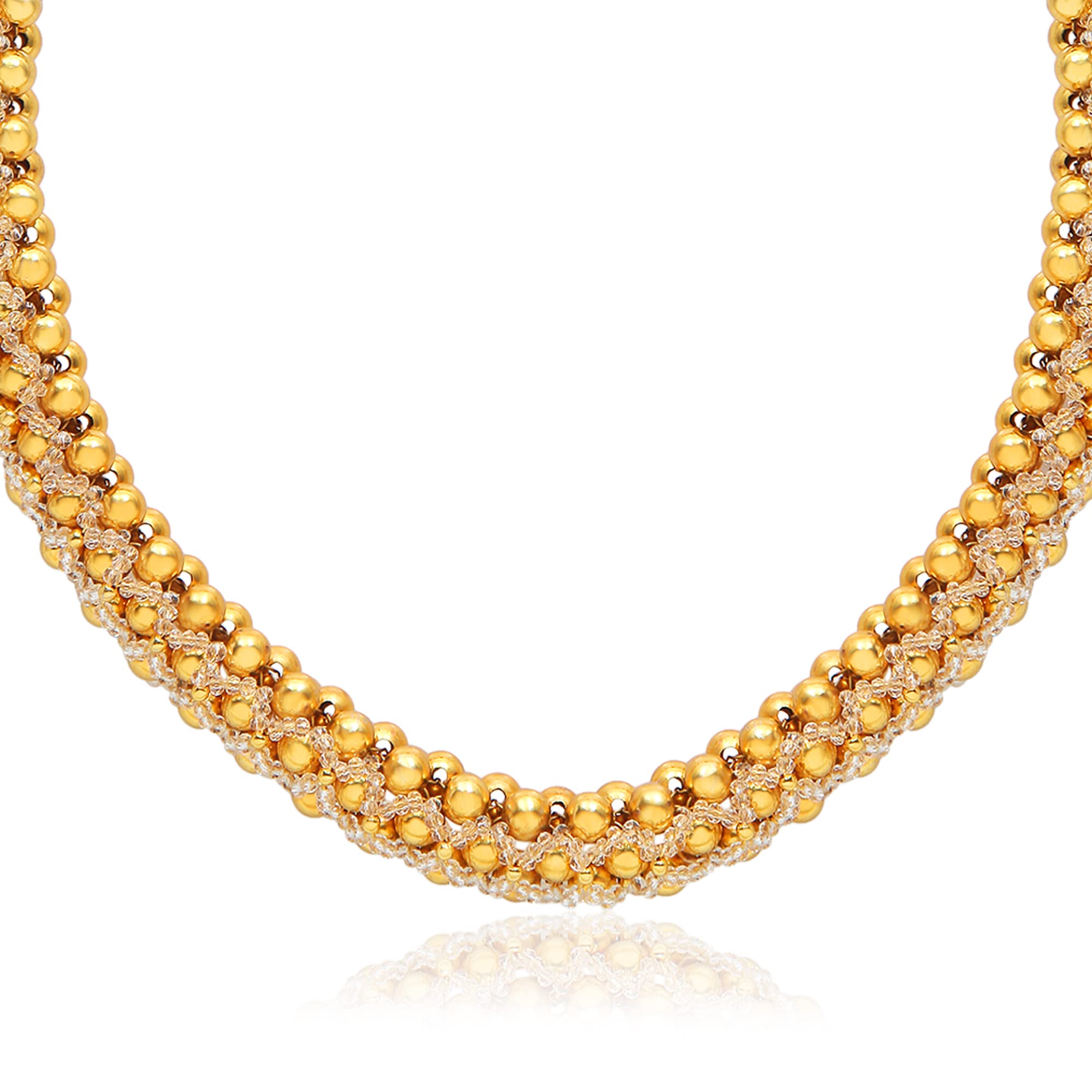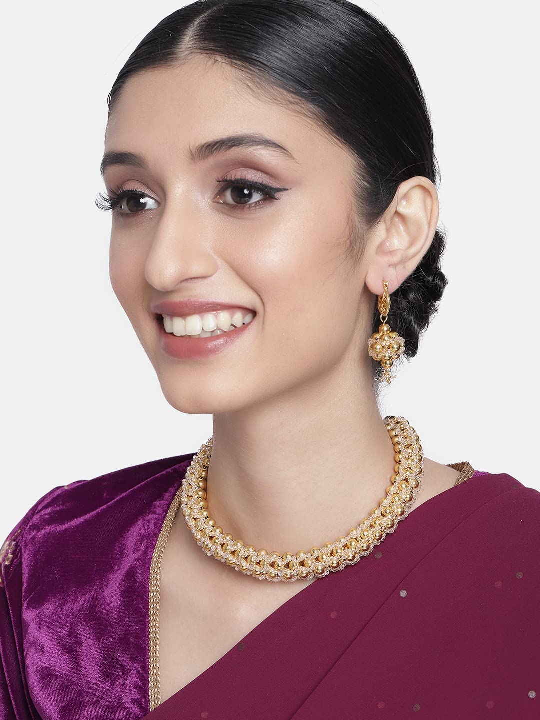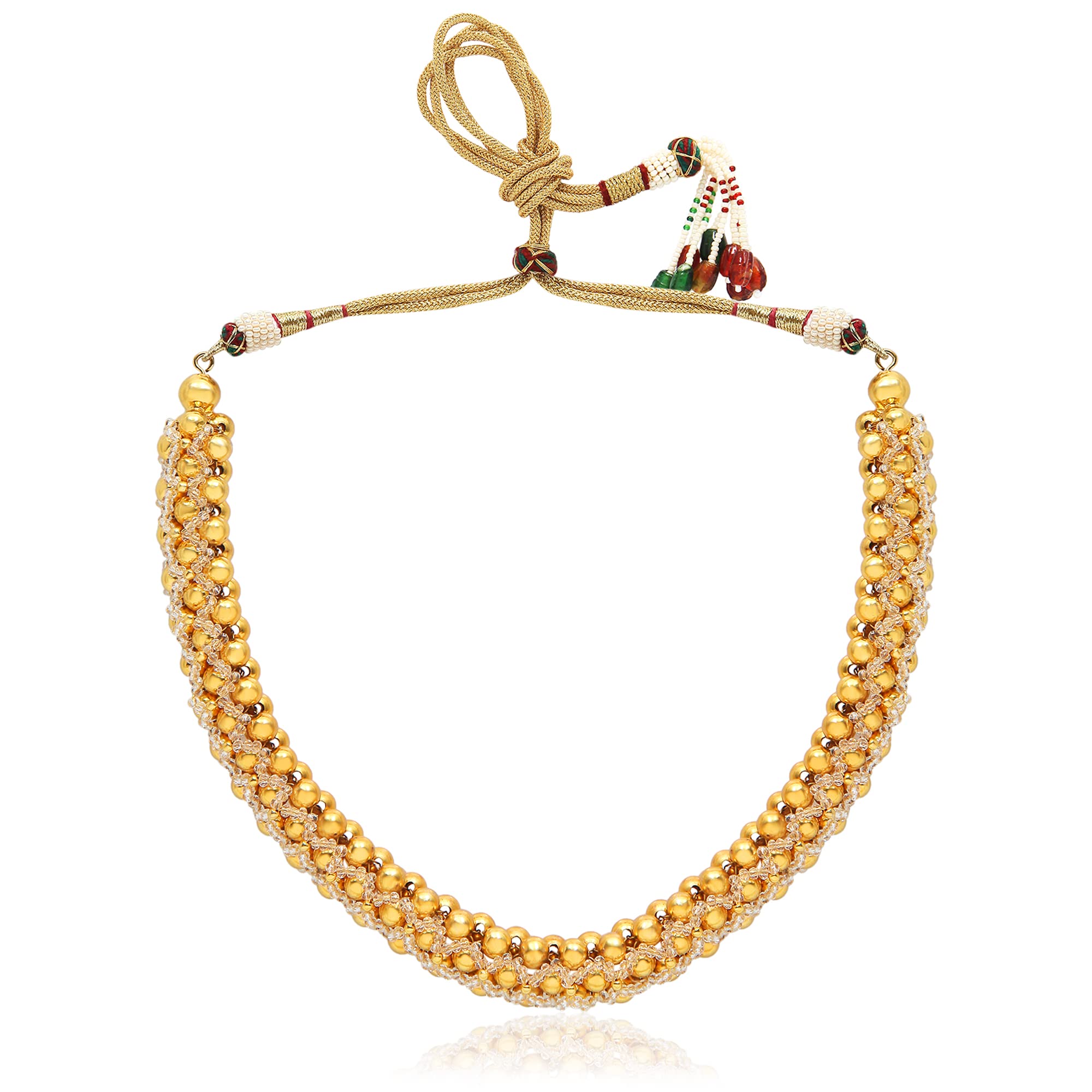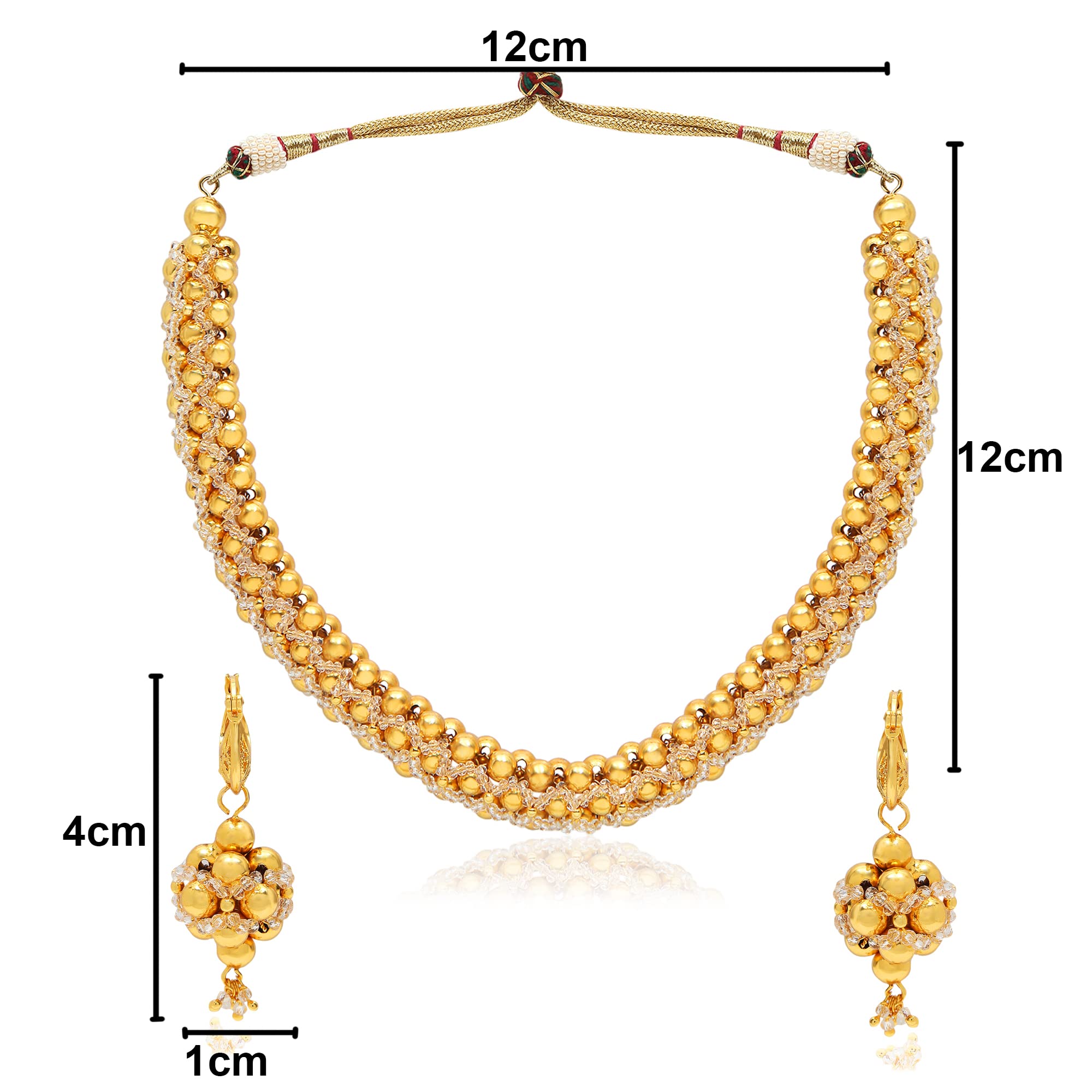 I Jewels 18k Gold Plated Moti Beads Style Thushi Choker Necklace Jewelry Set for Girls & Women (MC085W)