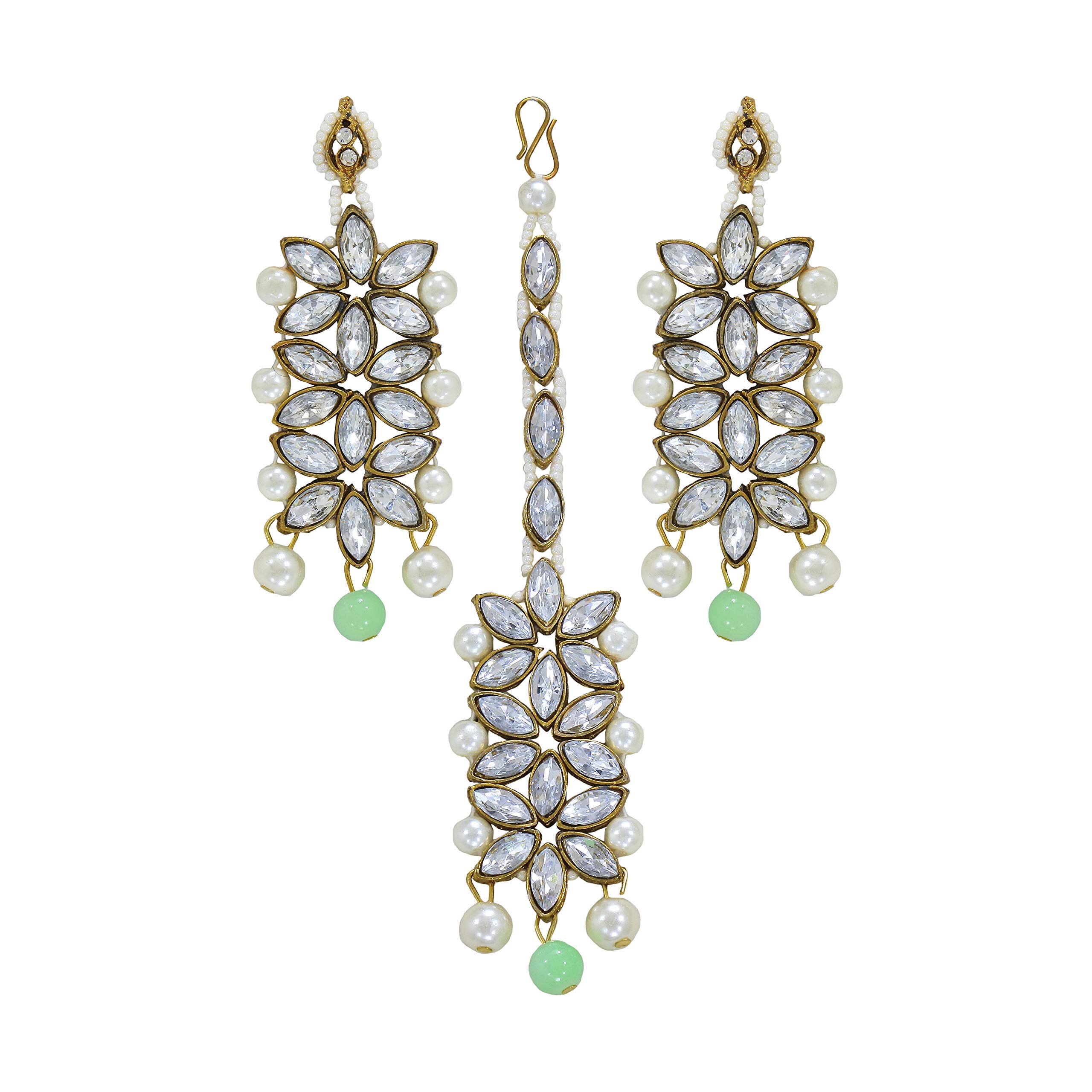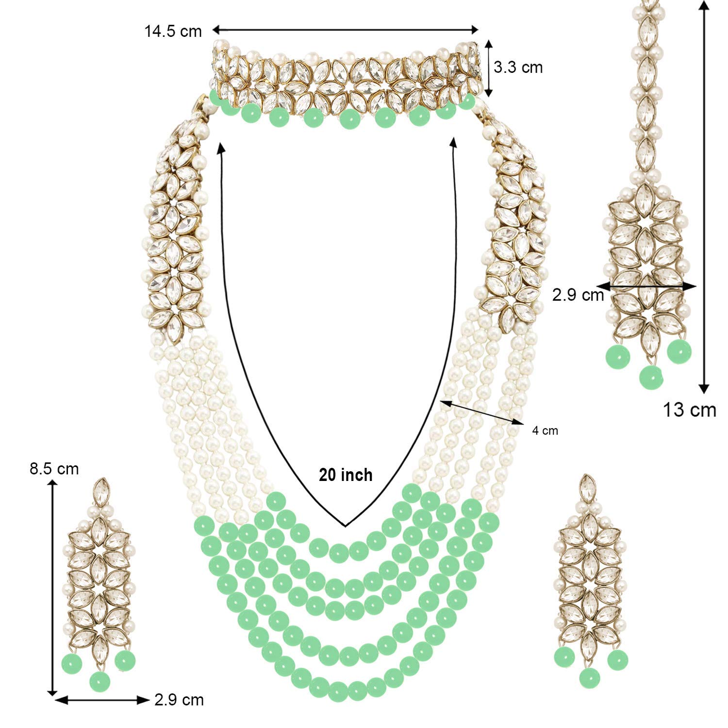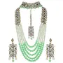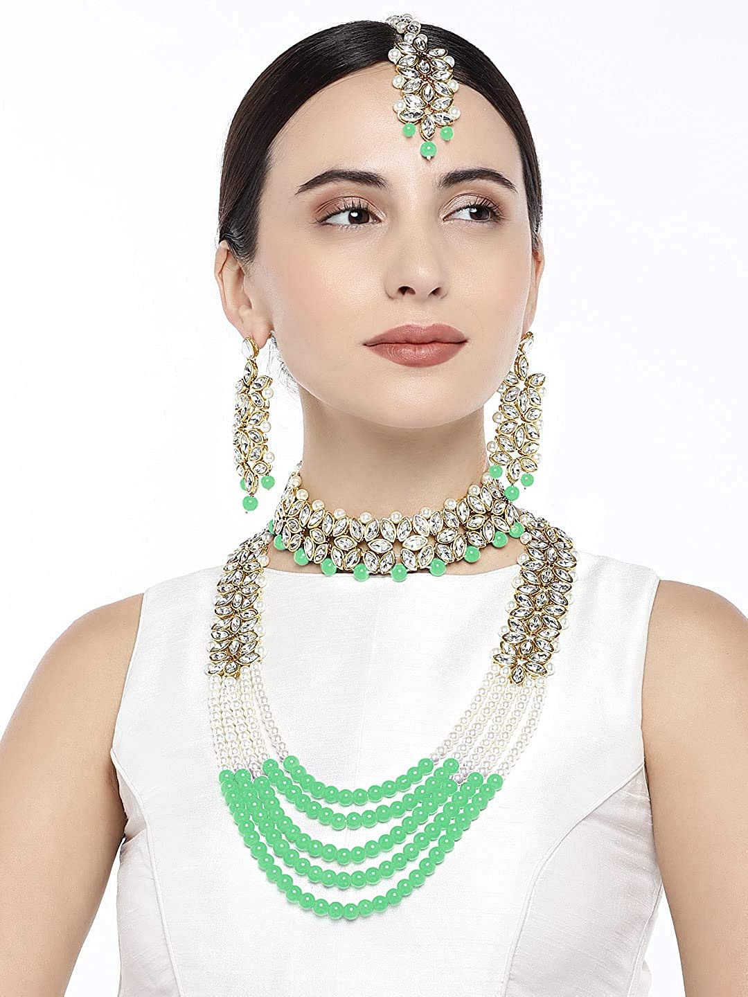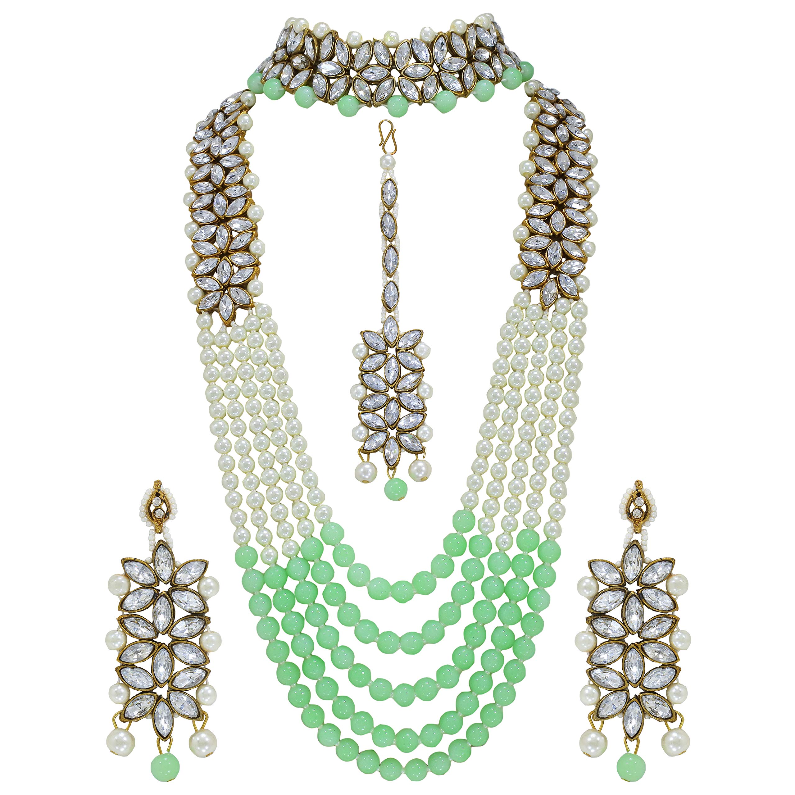 I Jewels 18K Gold Plated Traditional 5 Layers Kundan & Pearl Beaded Moti Raani Haar Necklace Jewellery Set For Women (ML164CO)