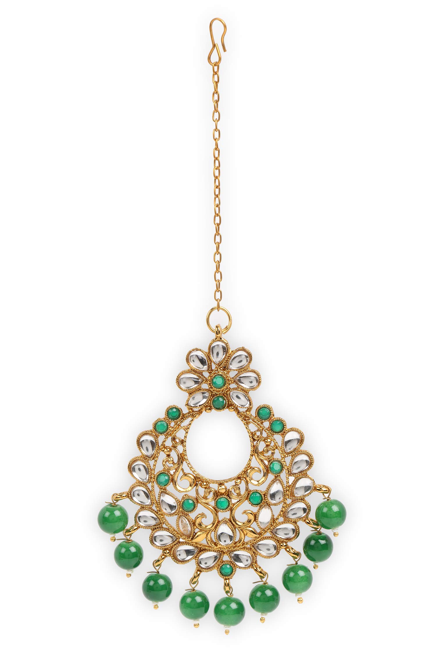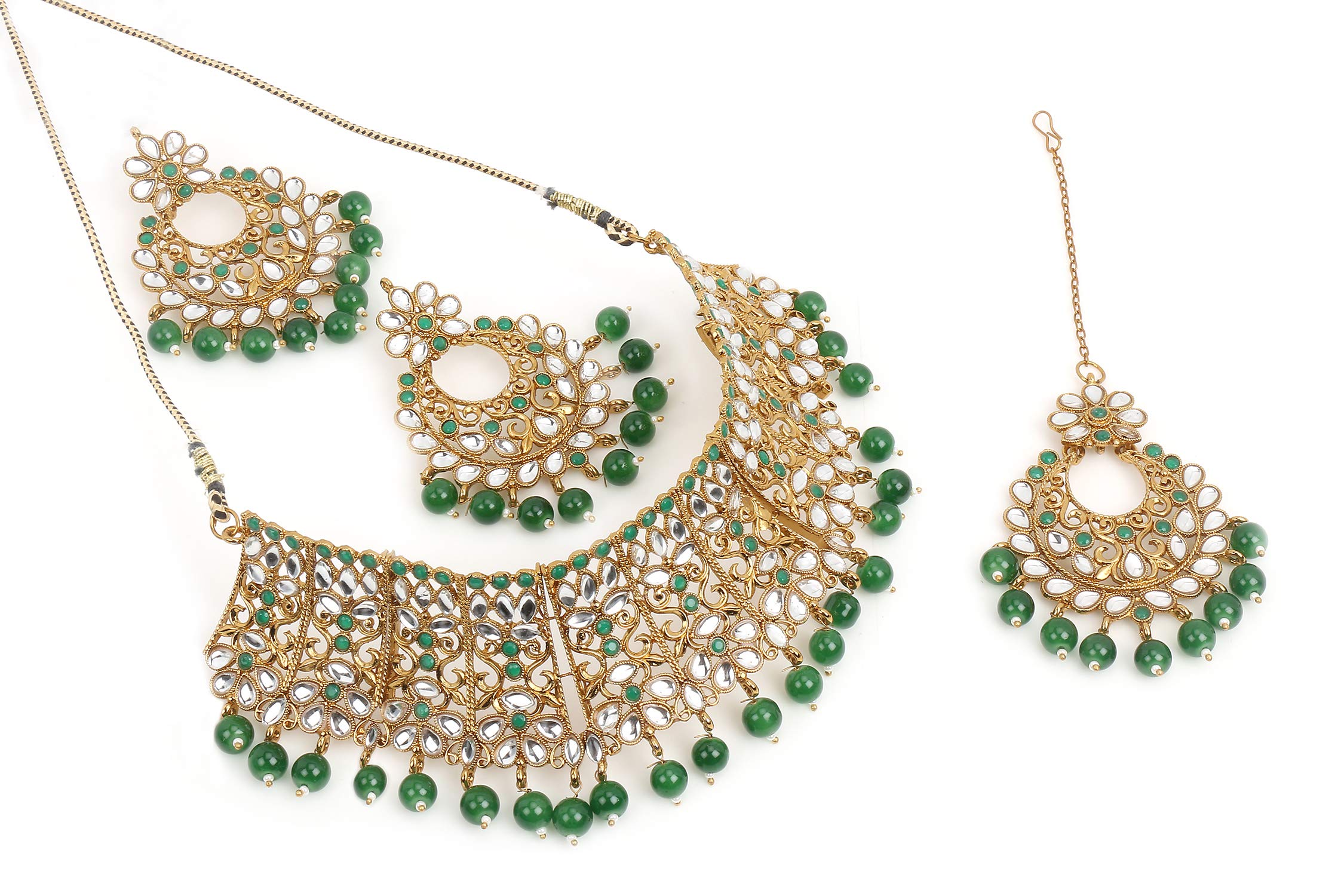 I Jewels 18K Gold Plated Traditional Choker Necklace Jewellery Set With Earrings & Maang Tikka Encased With Kundan & Pearl