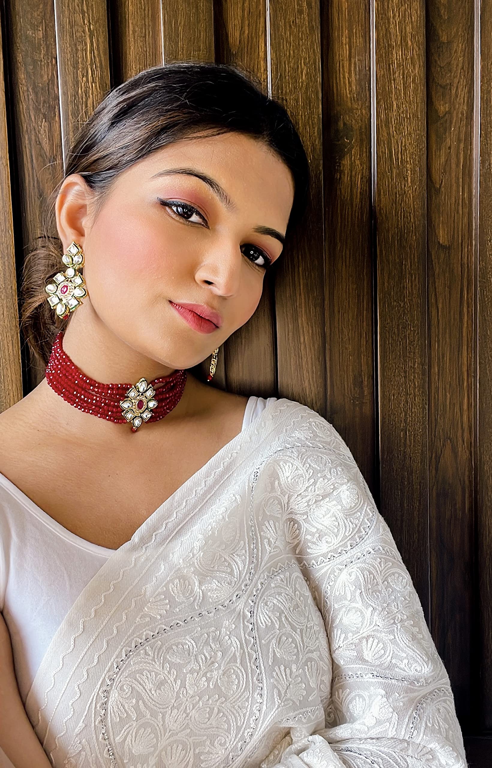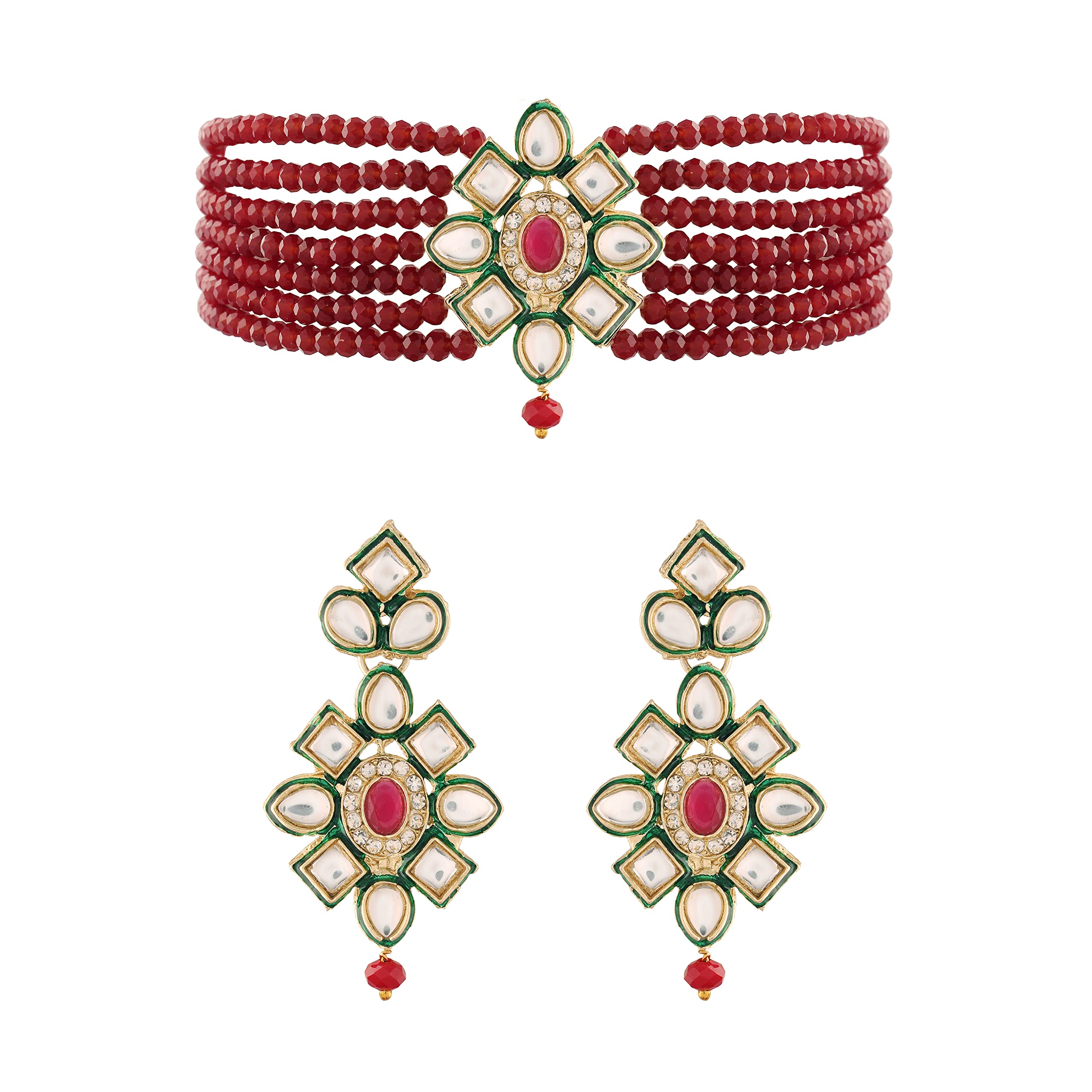 I Jewels 18k Gold Plated Traditional Choker Set Glided With Kundan & Beads For Women/Girls (K7207)