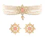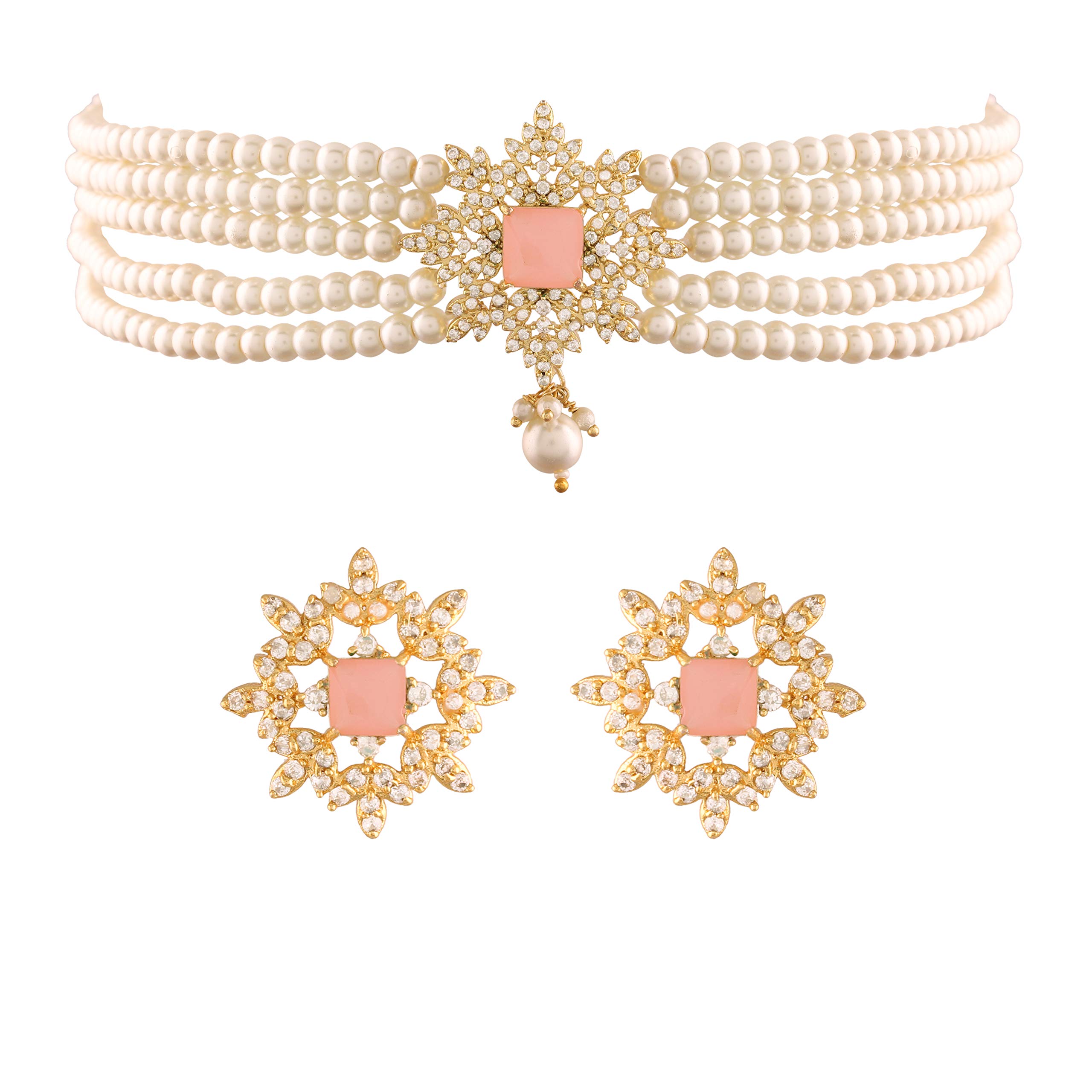 I Jewels 18K Gold Plated Traditional CZ Crystal with Pearl Choker Necklace Jewellery Set for Women/Girls (ML261)