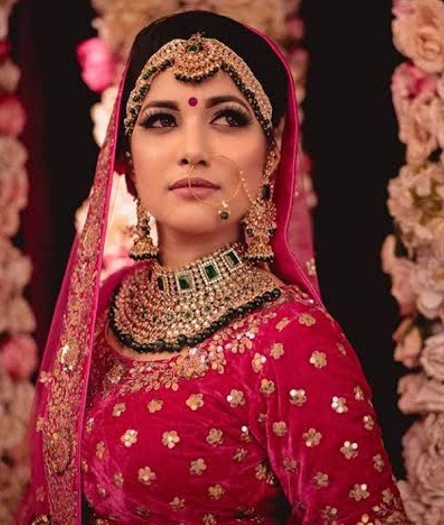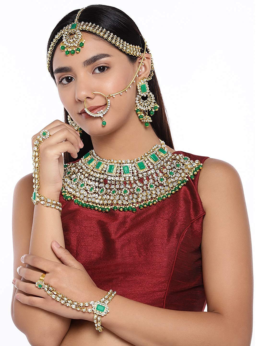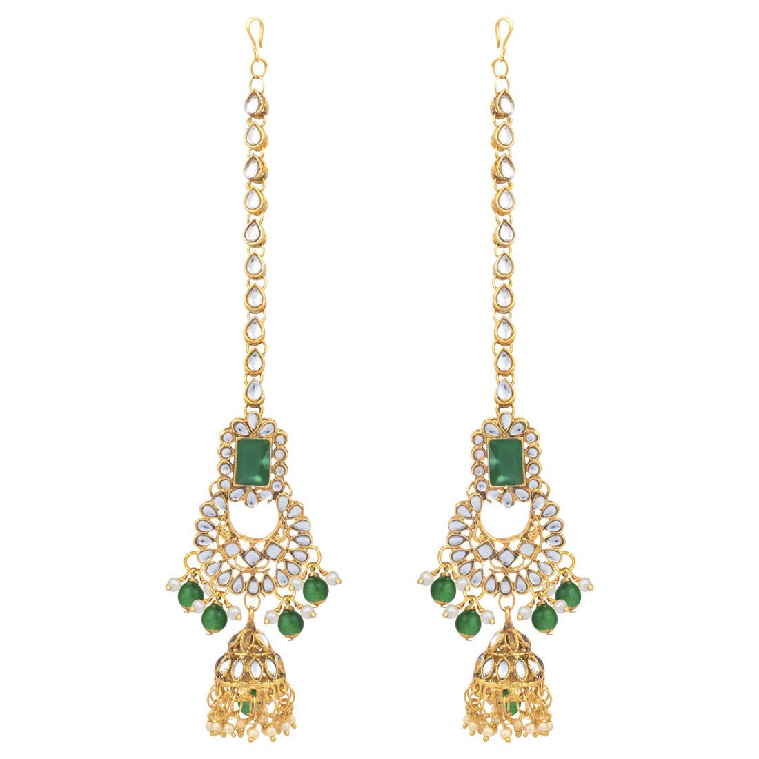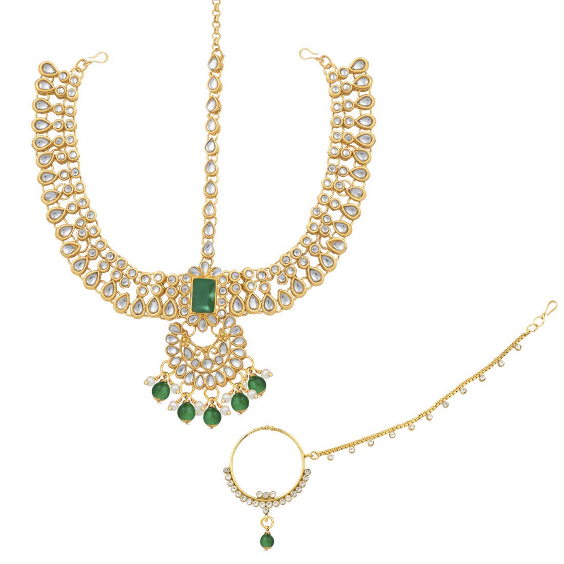 I Jewels 18K Gold Plated Traditional Handcrafted Faux Kundan Studded Bridal Jewellery Set with Earrings & Matha Patti for Women