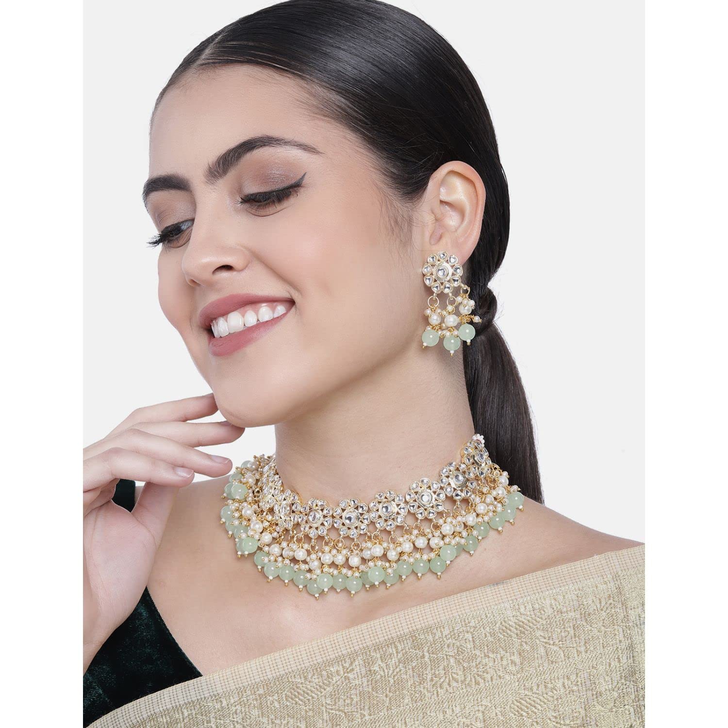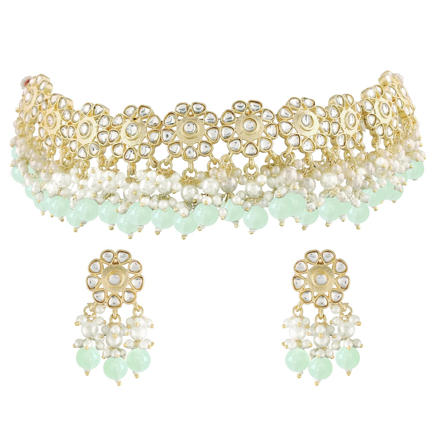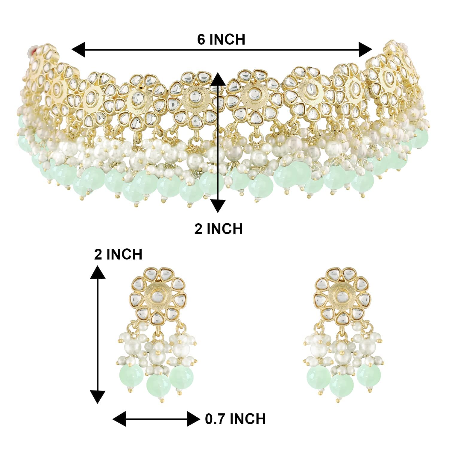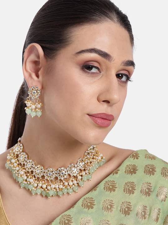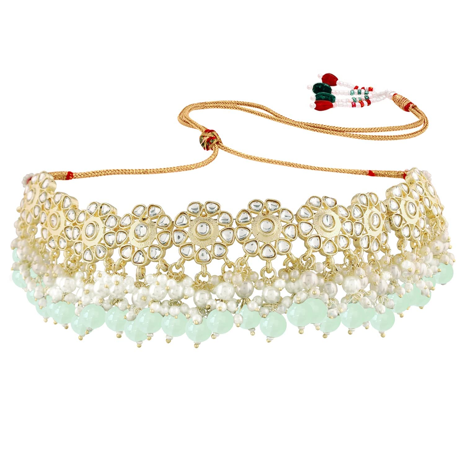 I Jewels 18K Gold Plated Traditional Kundan & Pearl Studded Choker Necklace Set For Women/Girls (K7213)