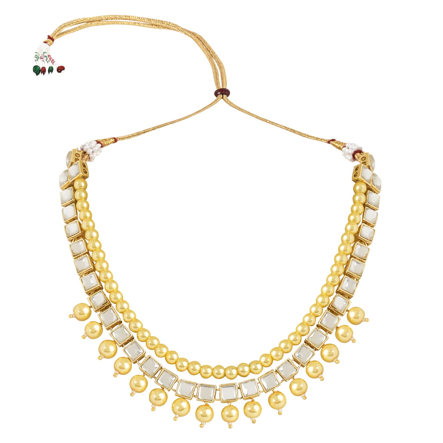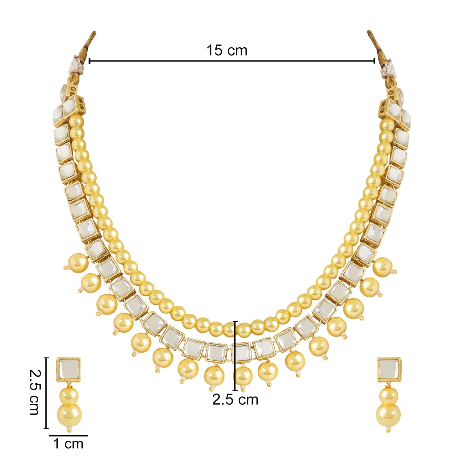 I Jewels 18K Gold Plated Traditional Kundan Studed Pearls Choker Necklace Jewellery Set with Earrings for Women (IJ373FL)