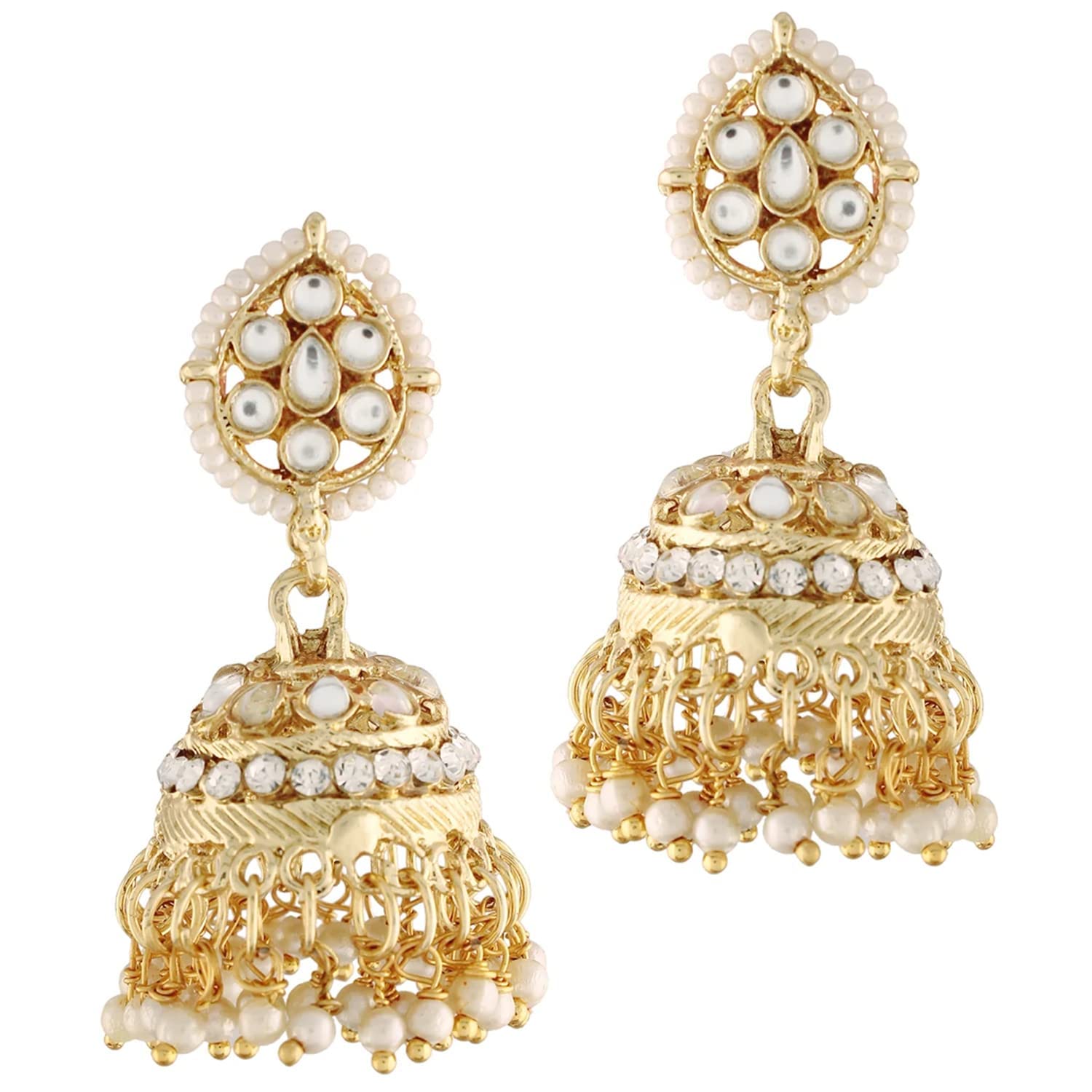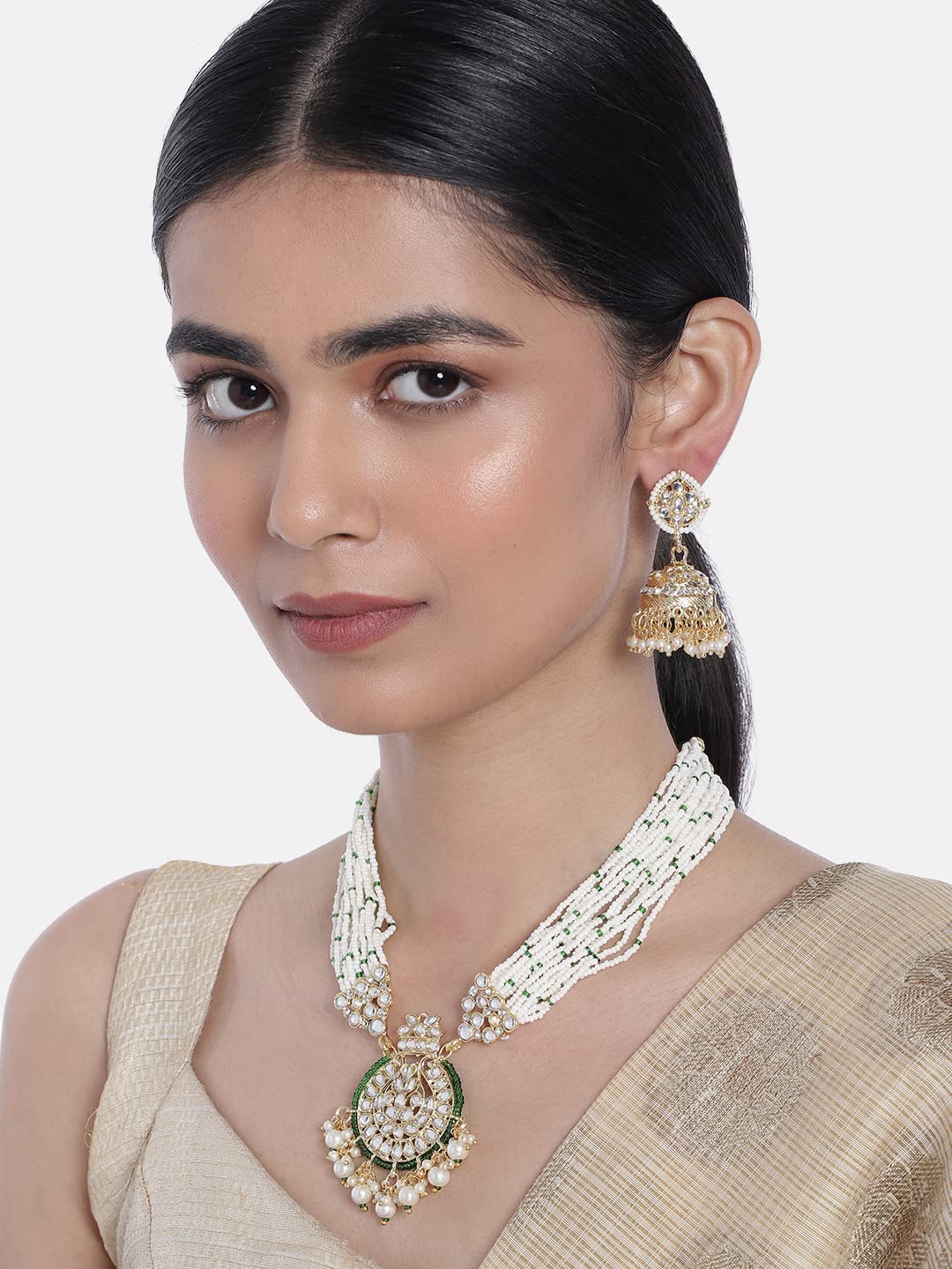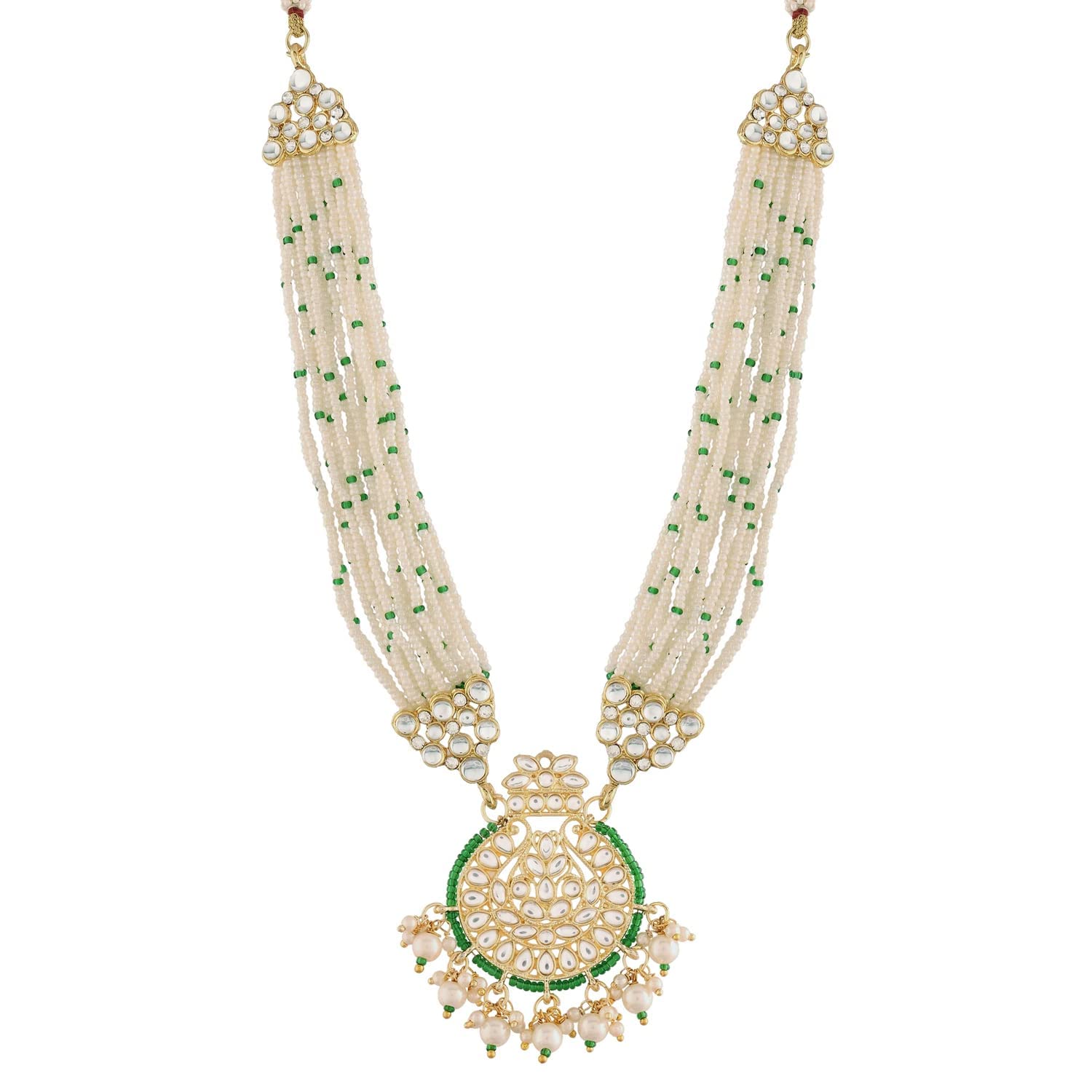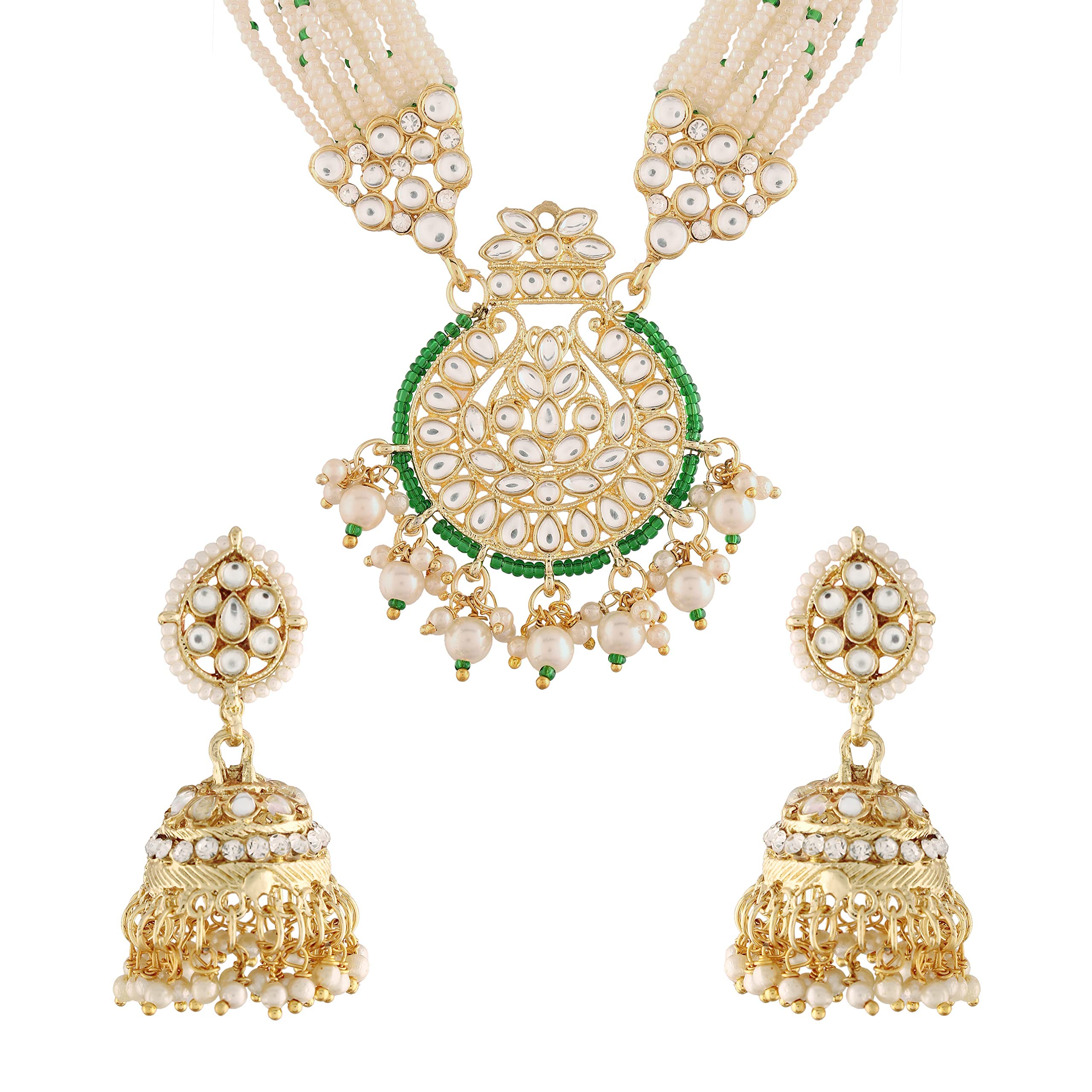 I Jewels 18k Gold Plated Traditional Multistrand Pearl Kundan Studded Necklace Jewellery Set For Women (ML307-8)