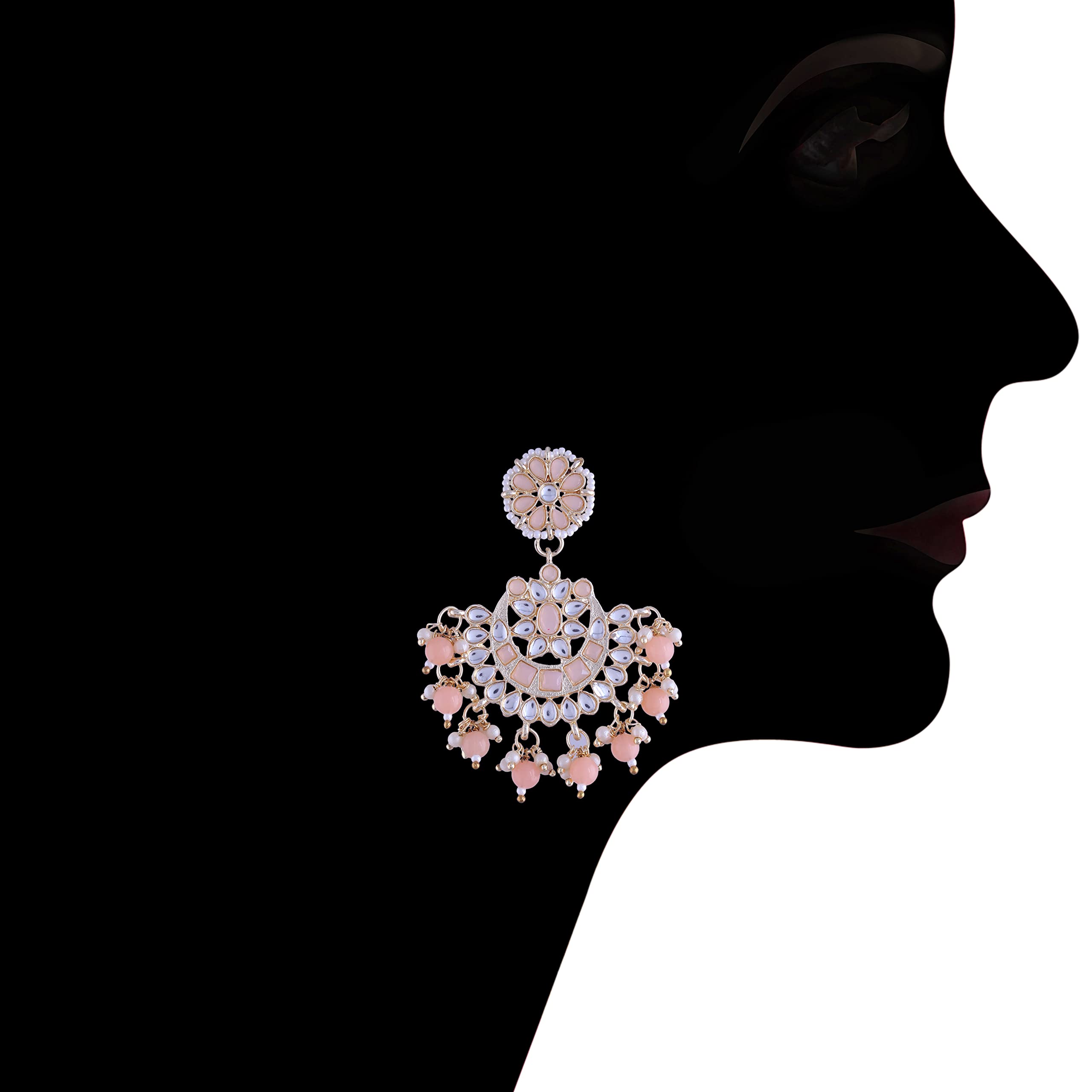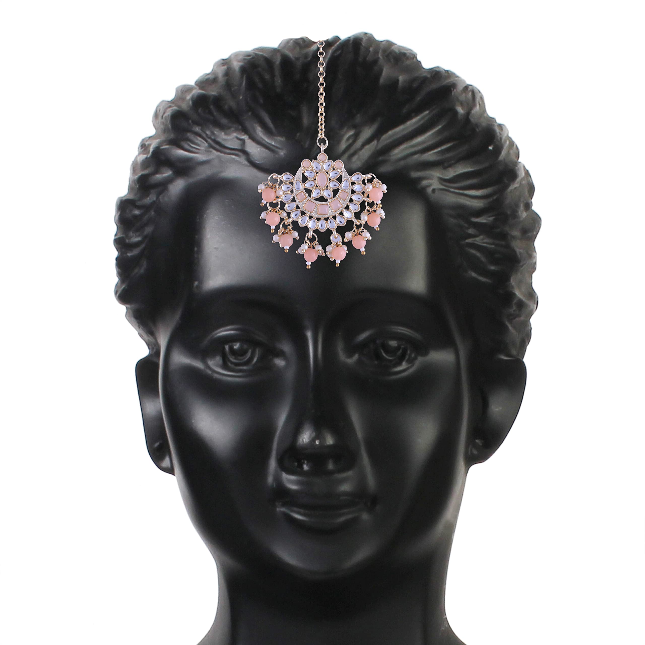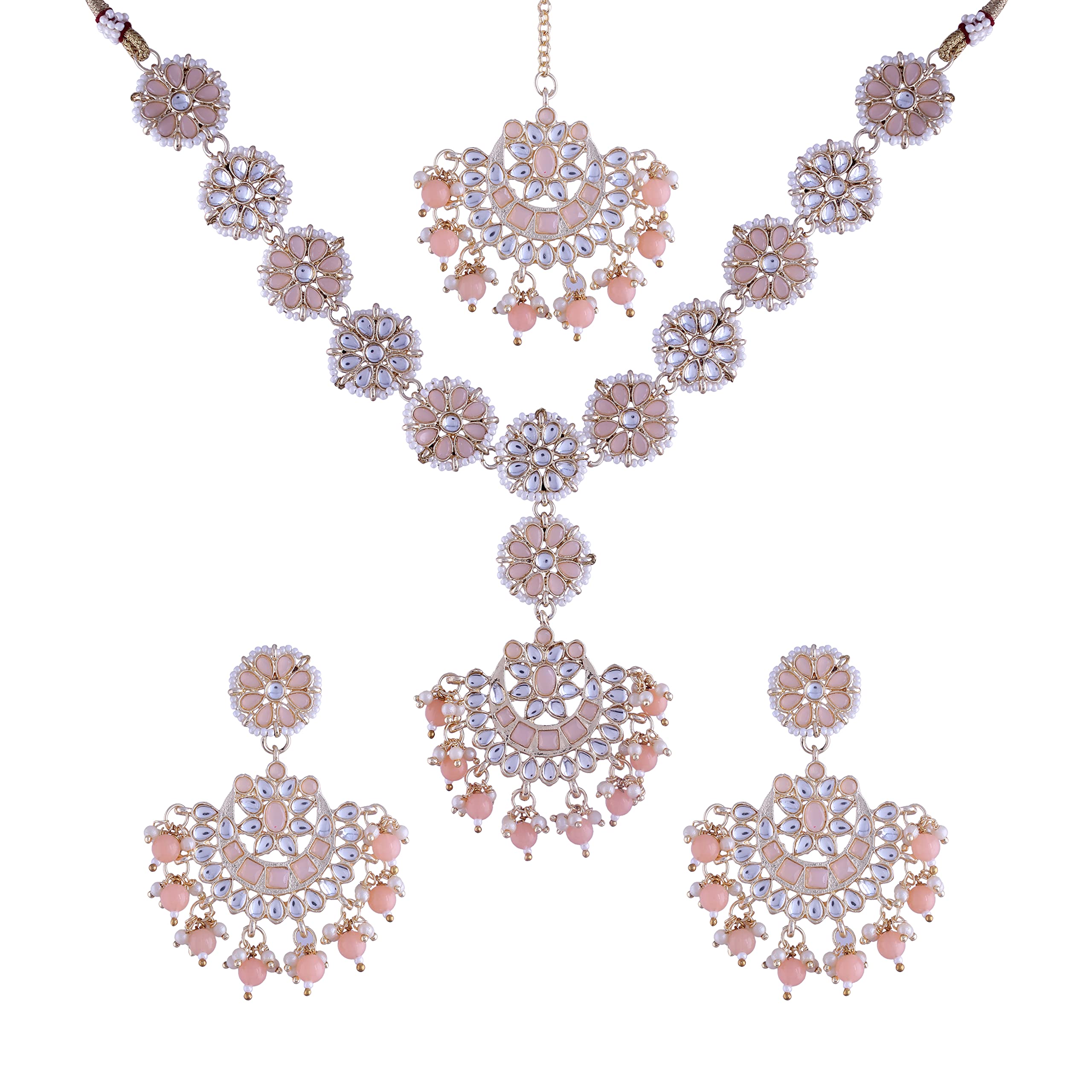 I Jewels 18k Gold Plated Traditional Pearl Kundan Studded Jewellery Necklace Set with Maang Tikka for Women (K7224Pe)