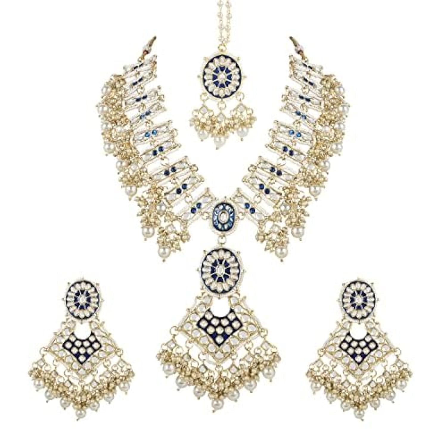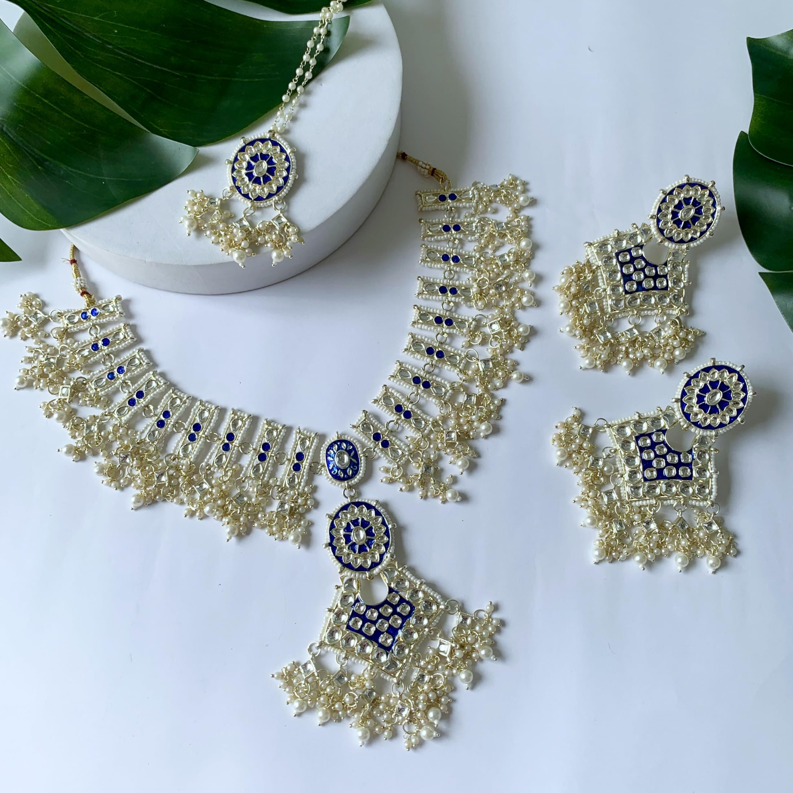 Indulge in the regal beauty of the I Jewels 18k Gold Plated Traditional Pearl Kundan Studded Meenakari Necklace with Earring Maang Tikka Set for Women and Girls. This exquisite set is a true masterpiece of traditional craftsmanship perfect for any occasion that demands elegance and sophistication.This set is a true treasure that any woman would be proud to own. Don't wait order your I Jewels 18k Gold Plated Traditional Pearl Kundan Studded Meenakari Necklace with Earring Maang Tikka Set today and experience the unmatched beauty and craftsmanship that I Jewels is known for.