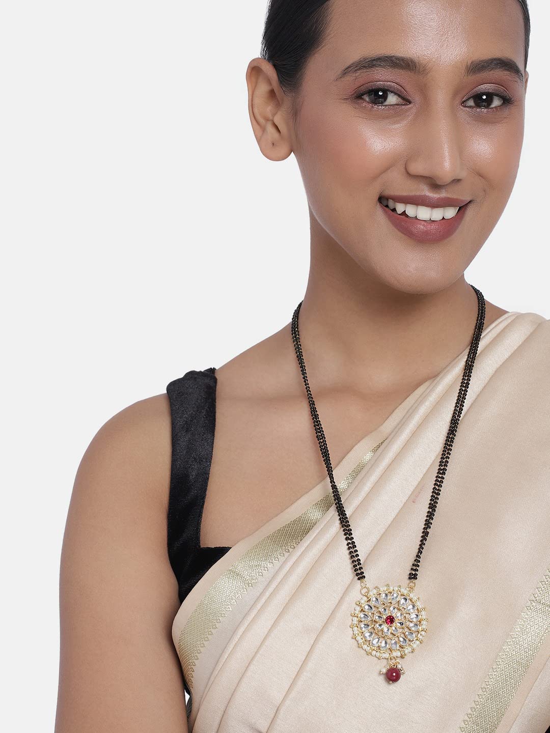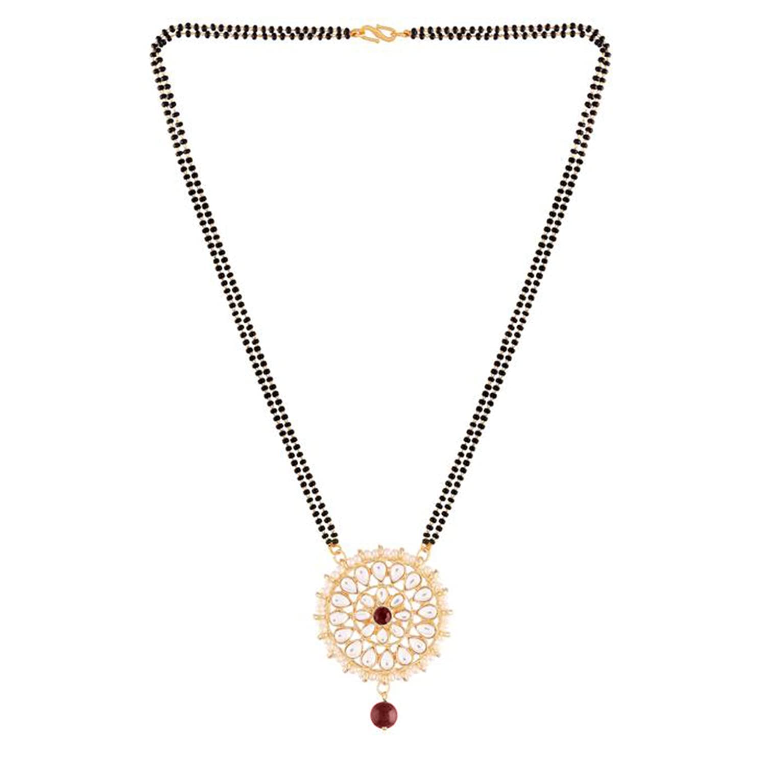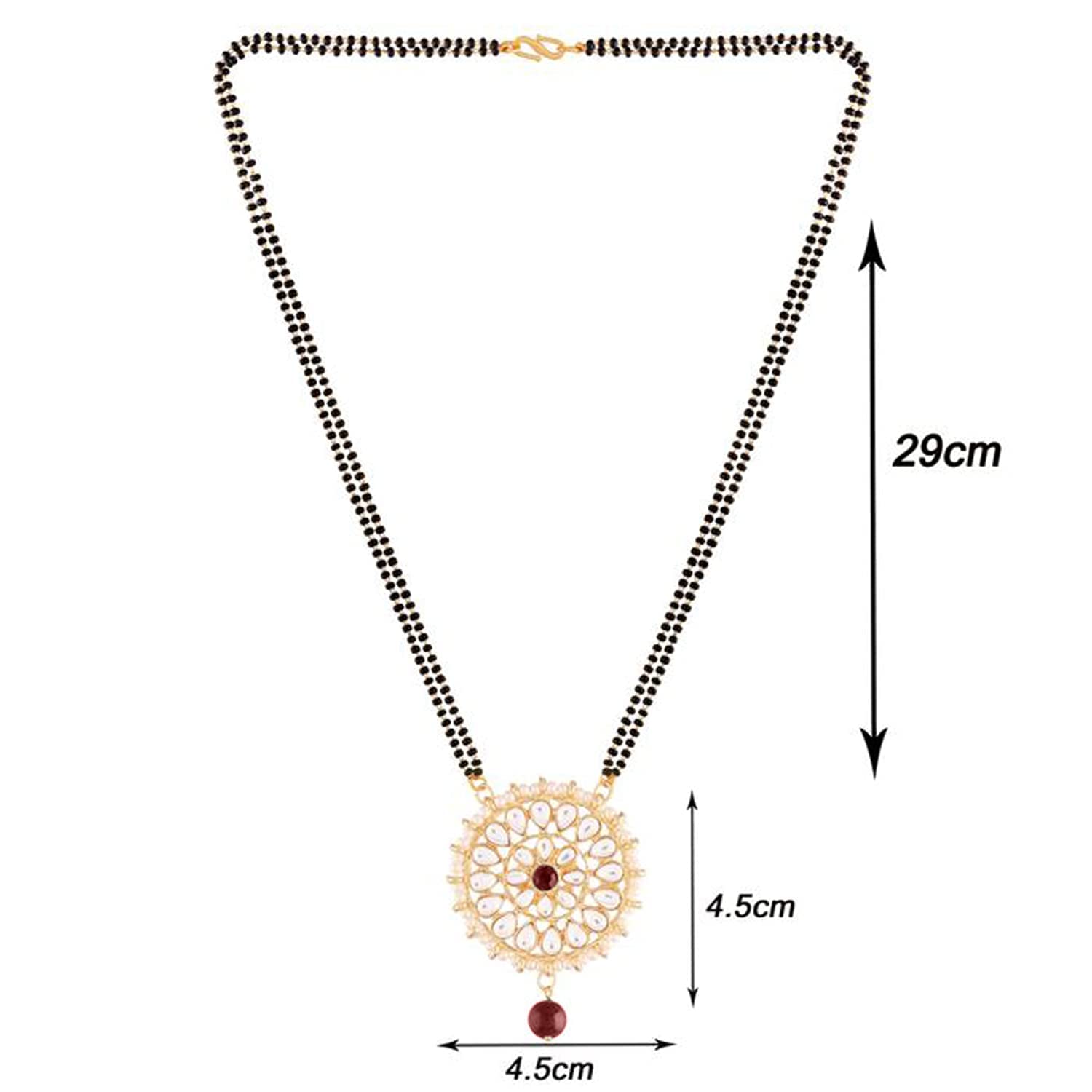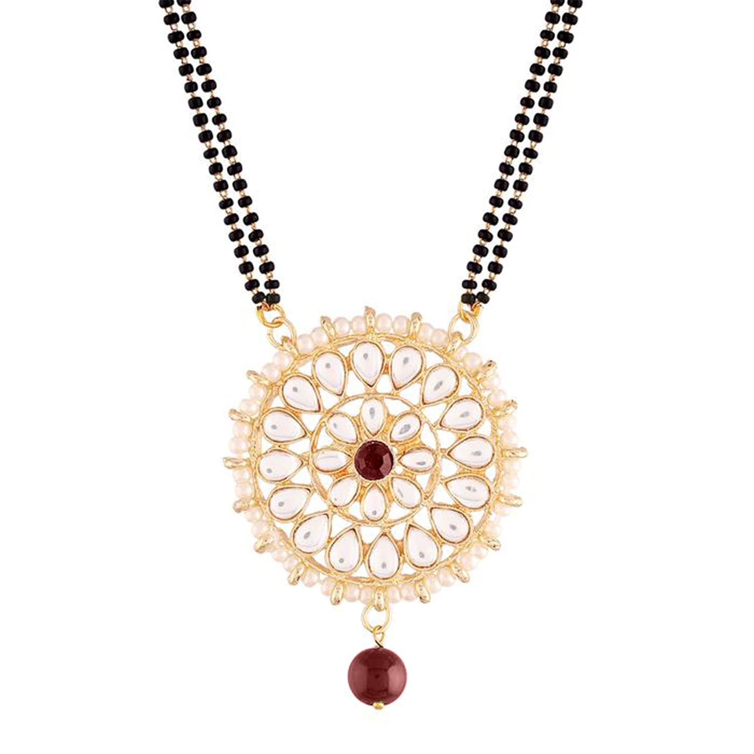 I Jewels 18k Gold Plated Traditional Pearl Kundan Studded Pendant with Black Bead Chain Mangalsutra for Women (D085)