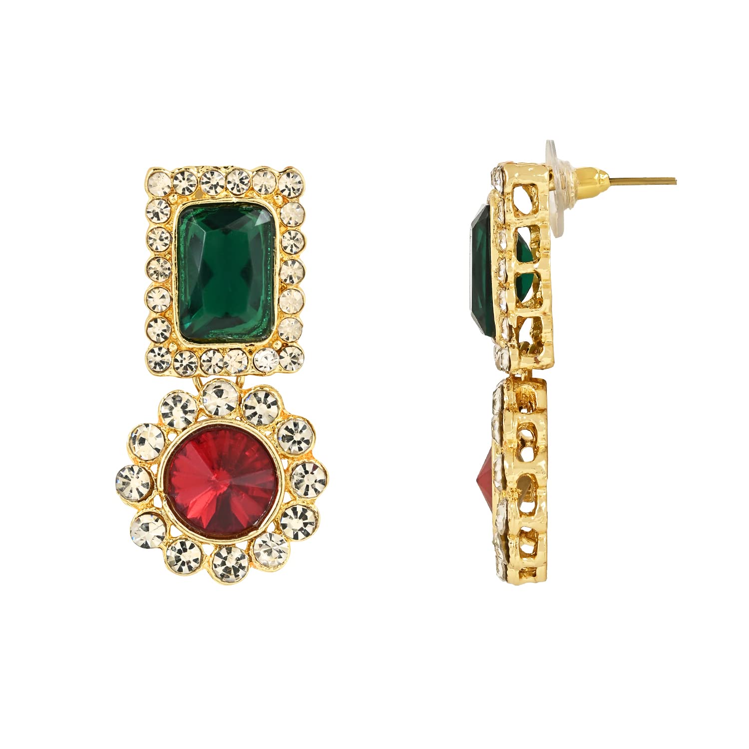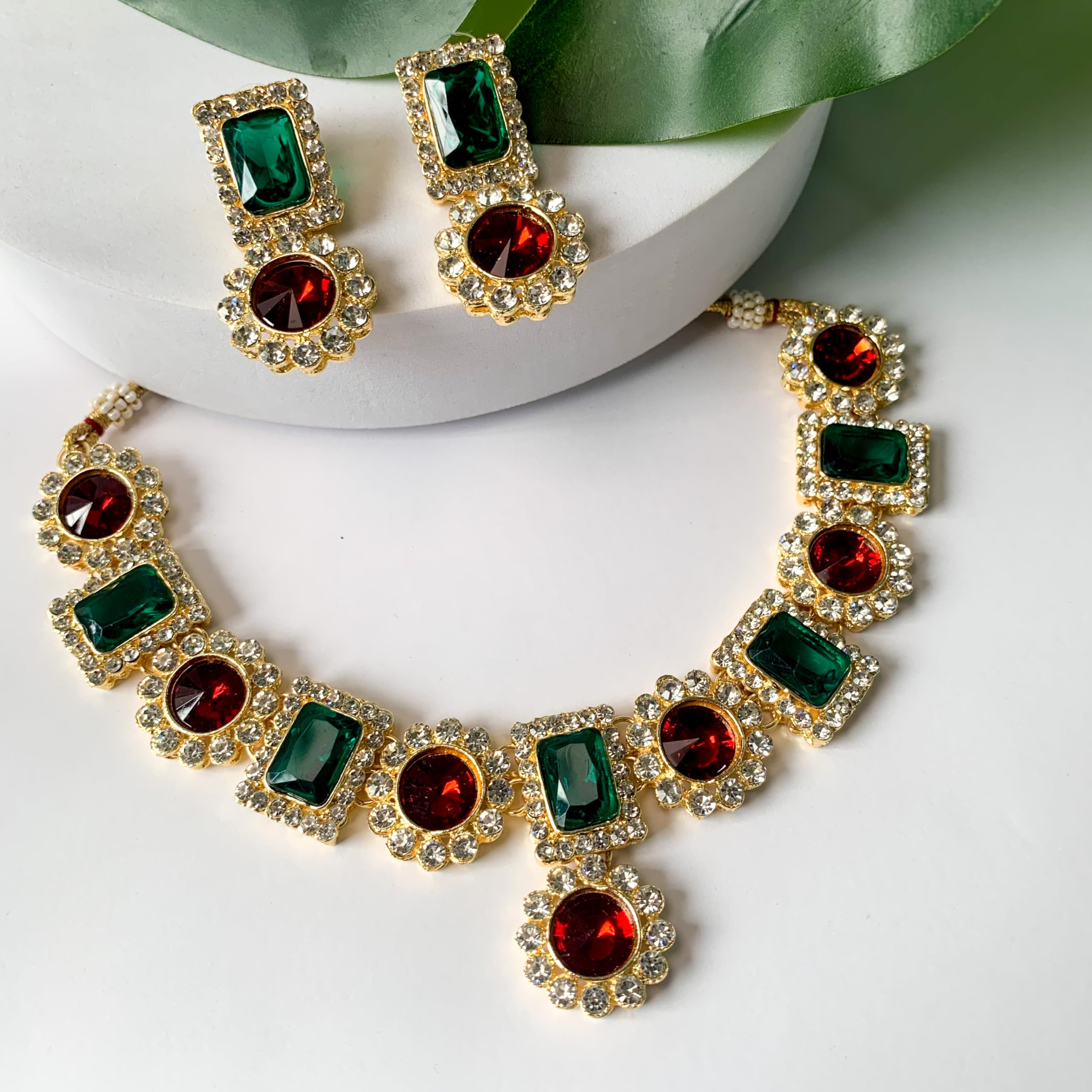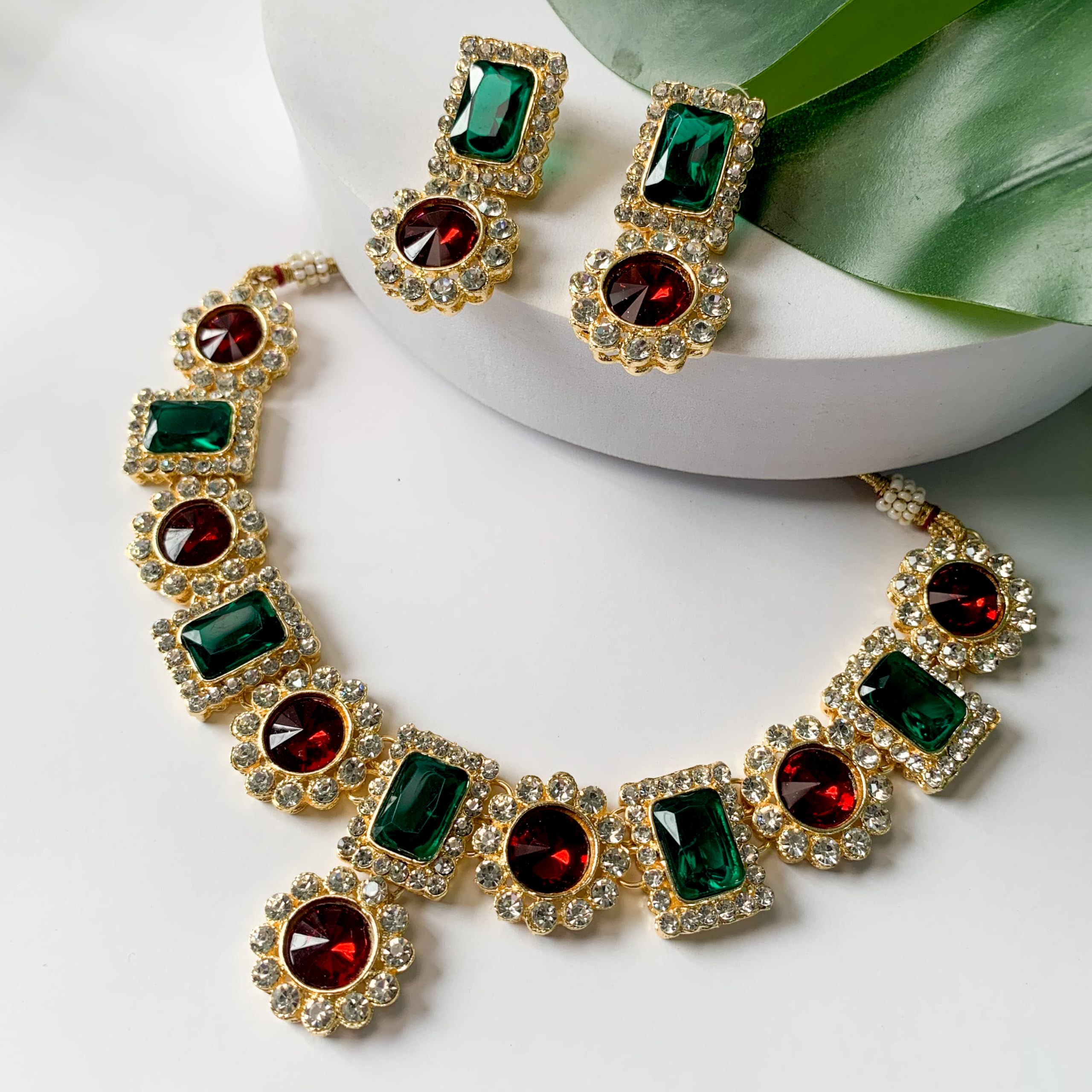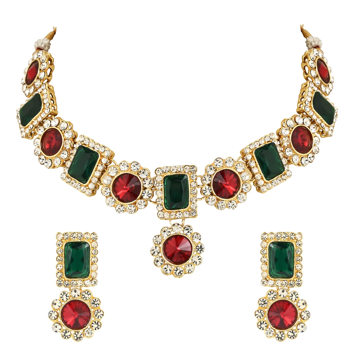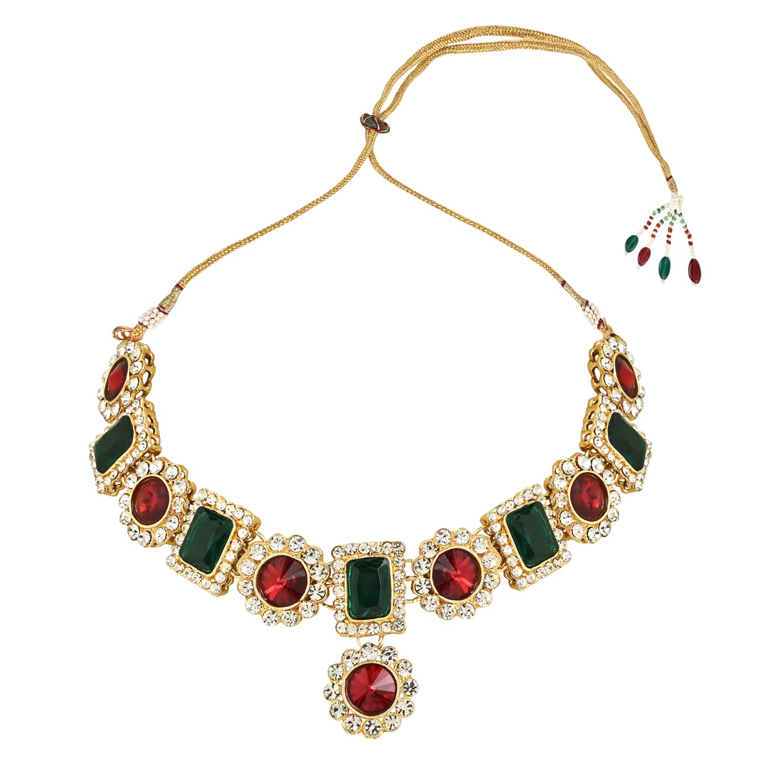 This stunning Jewels Gold Plated Traditional Stone Studded Necklace Jewellery Set is the perfect accessory for any special occasion. It features a beautifully crafted necklace adorned with intricate stone work that is sure to add a touch of elegance to any outfit. The set includes matching earrings which perfectly complement the necklace and complete the look. Made with high-quality materials this set is durable and long-lasting. The gold plating gives it a rich and luxurious look making it an ideal gift for any woman who loves traditional jewelry. Whether you're dressing up for a wedding a party or any other special event this necklace set will make you stand out in the crowd.