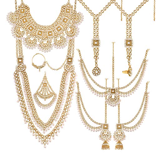 I Jewels 18k Gold Plated Wedding Wear Indian Bollywood Faux Kundan & Stone Studded Dulhan Bridal Jewelry Set for Women