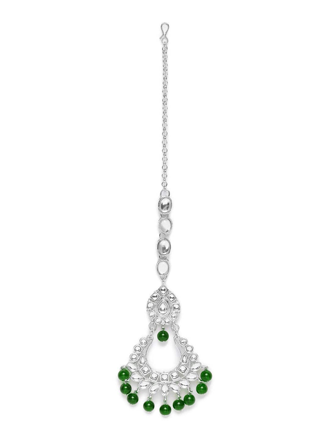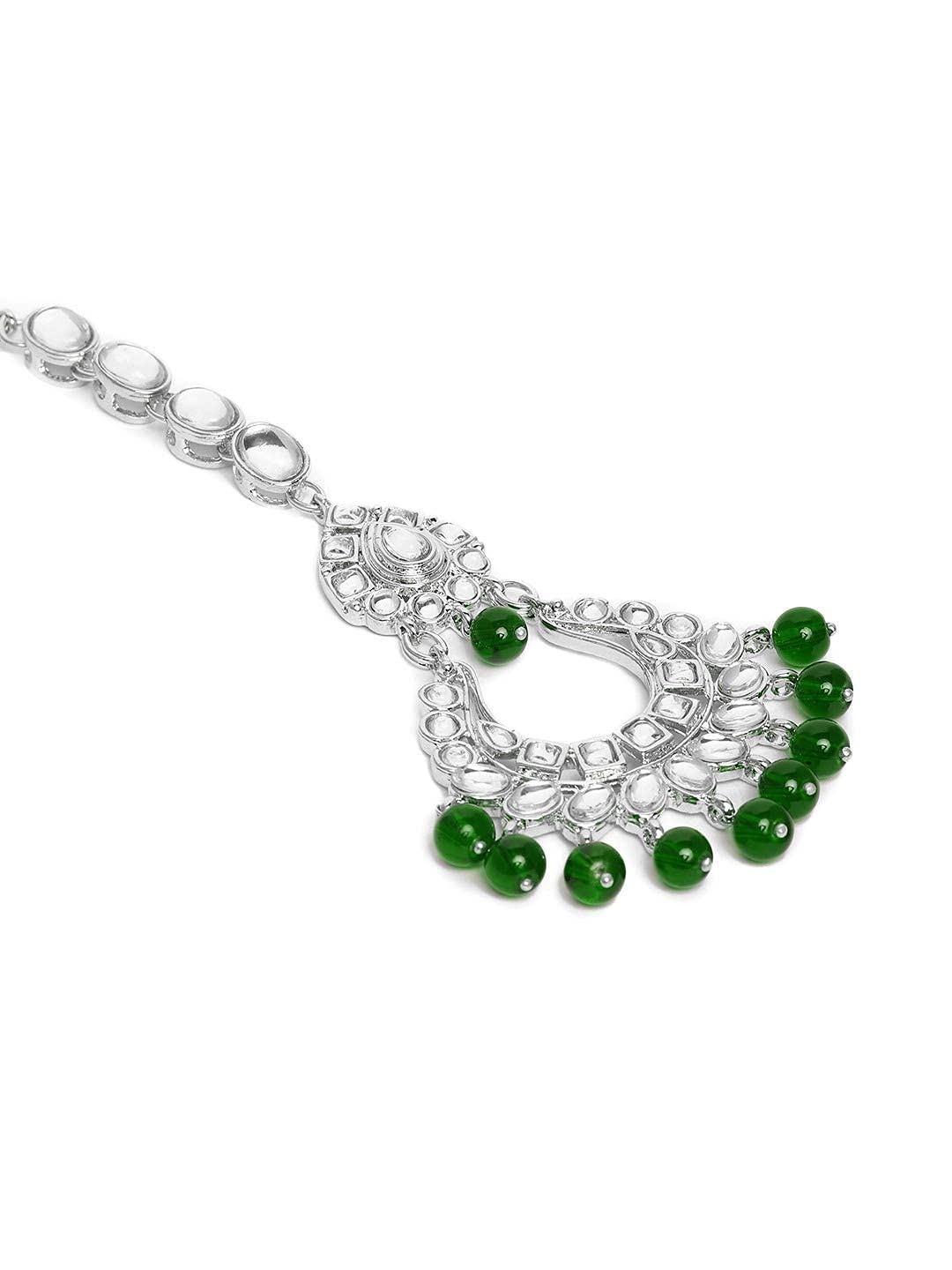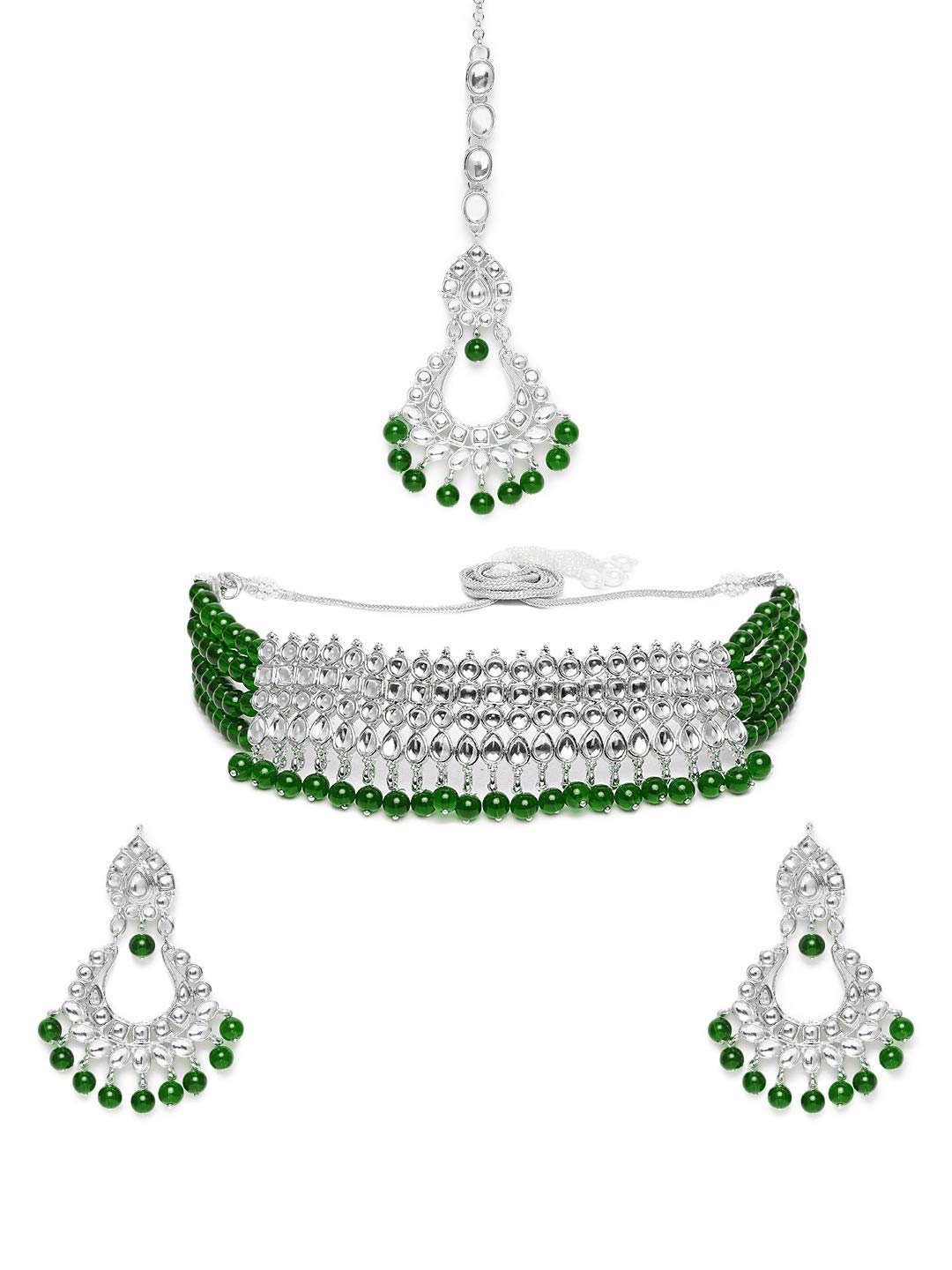 I Jewels 18k Rhodium Plated Ethnic Indian Traditional Kundan & Pearl Choker Necklace Jewellery Set for Women (K7083ZG)