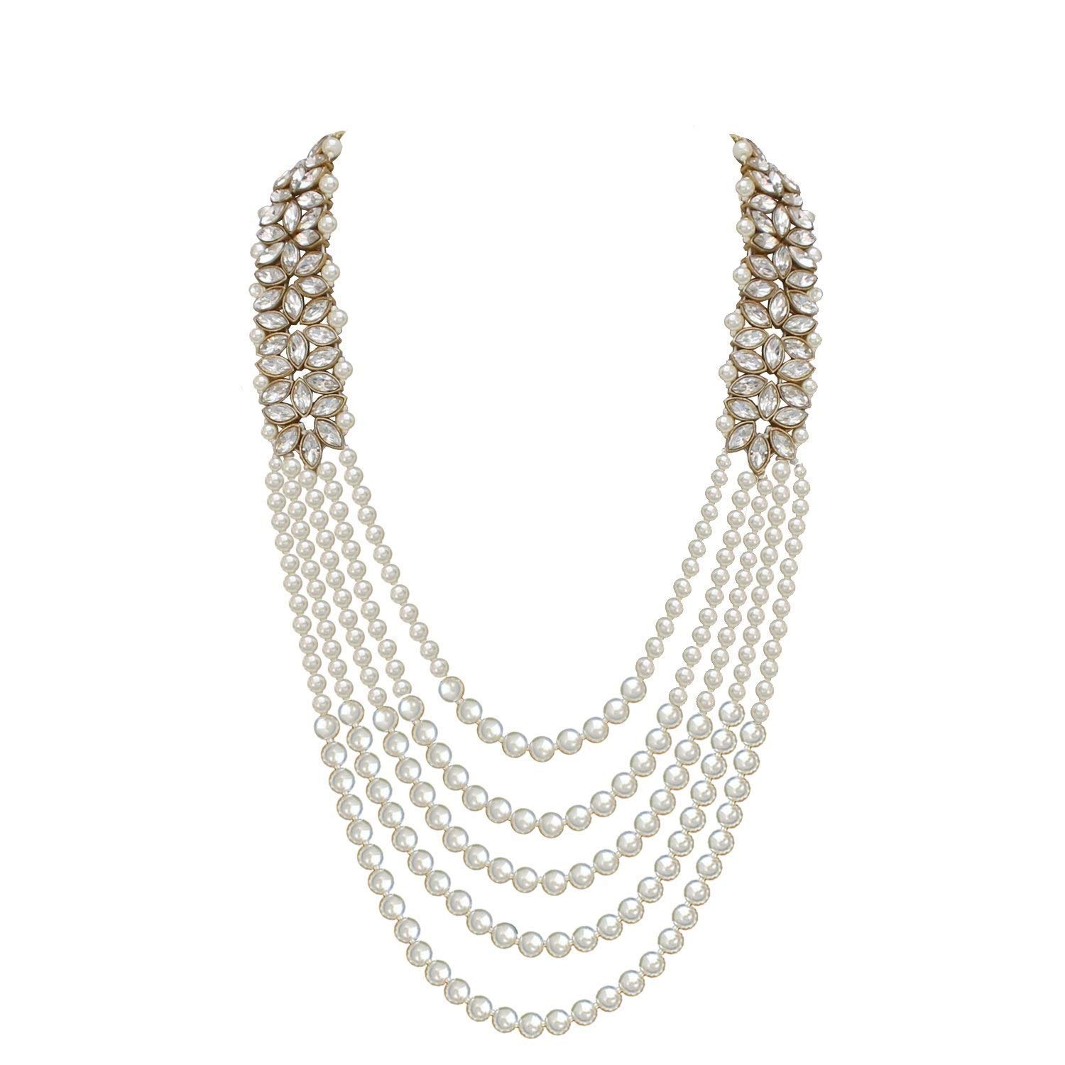 I Jewels 3 Layered Traditional Gold Plated Dulha Long Necklace/Moti Mala for Men (MLP26W)