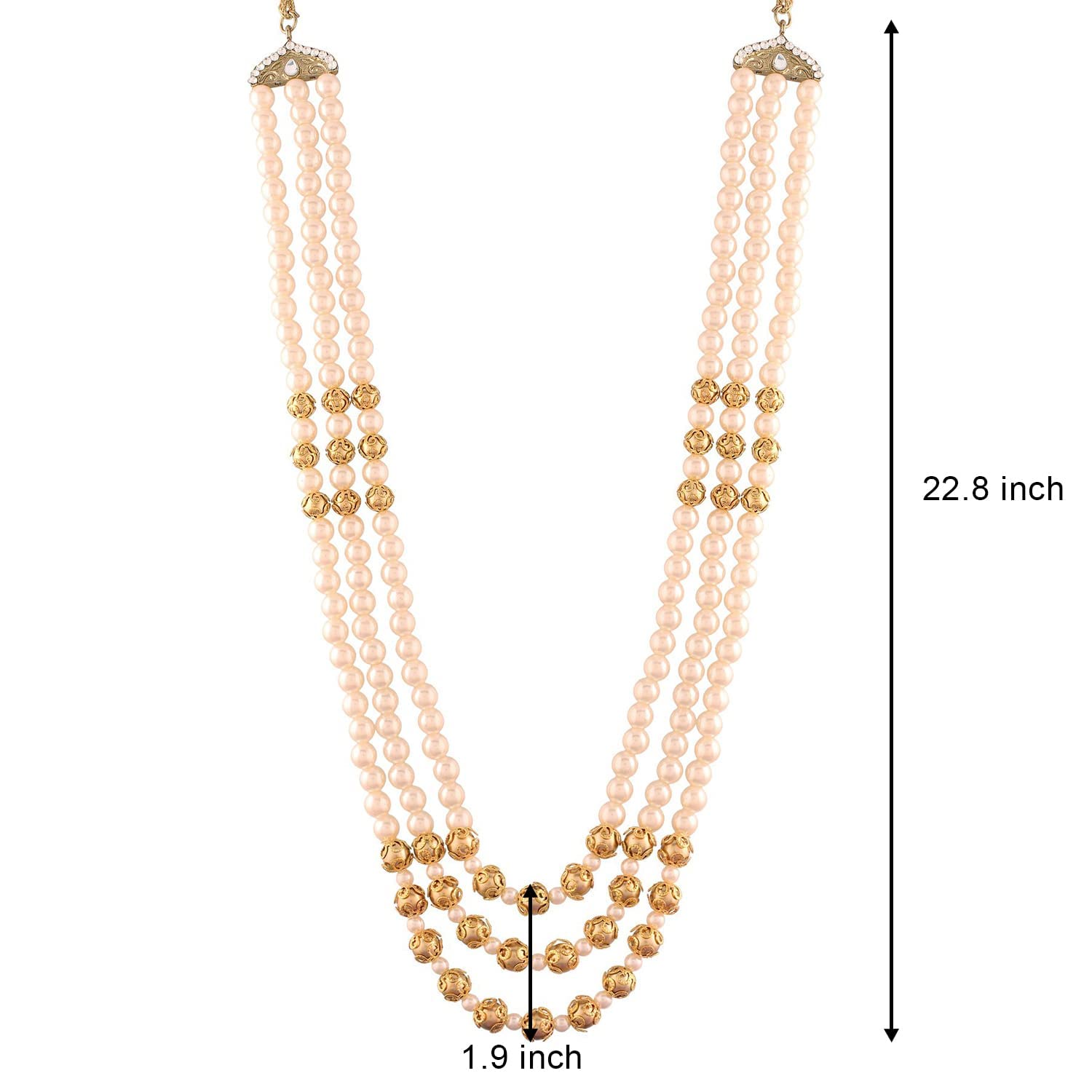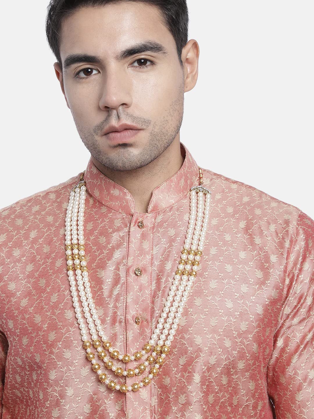 I Jewels 3 Layered Traditional Gold Plated Dulha Moti Mala with Stone Maharaja Haar/Groom Necklace For Men (MLP36FL)