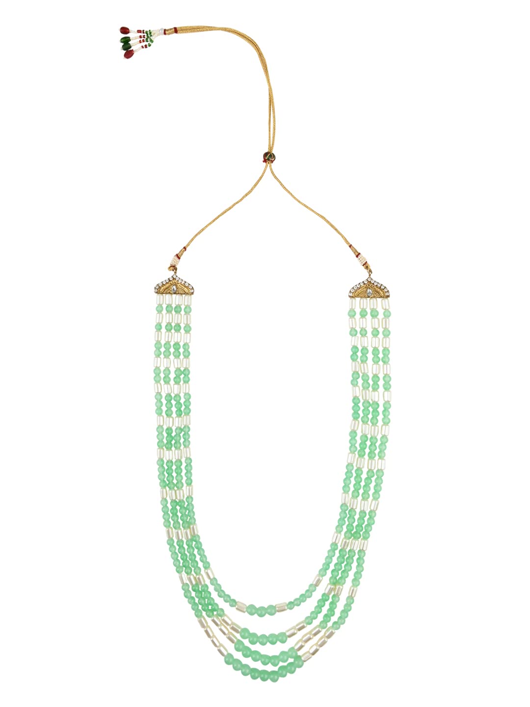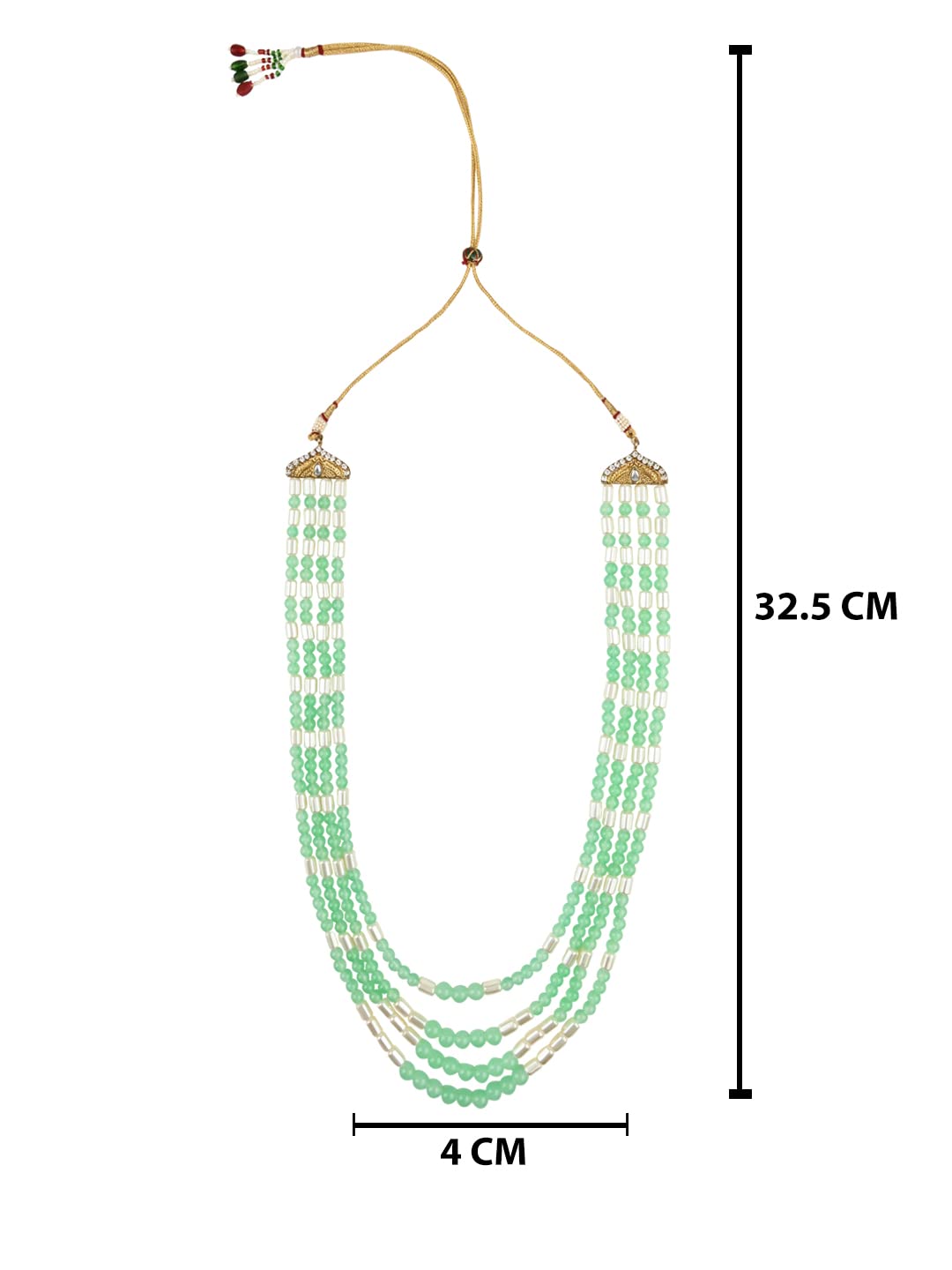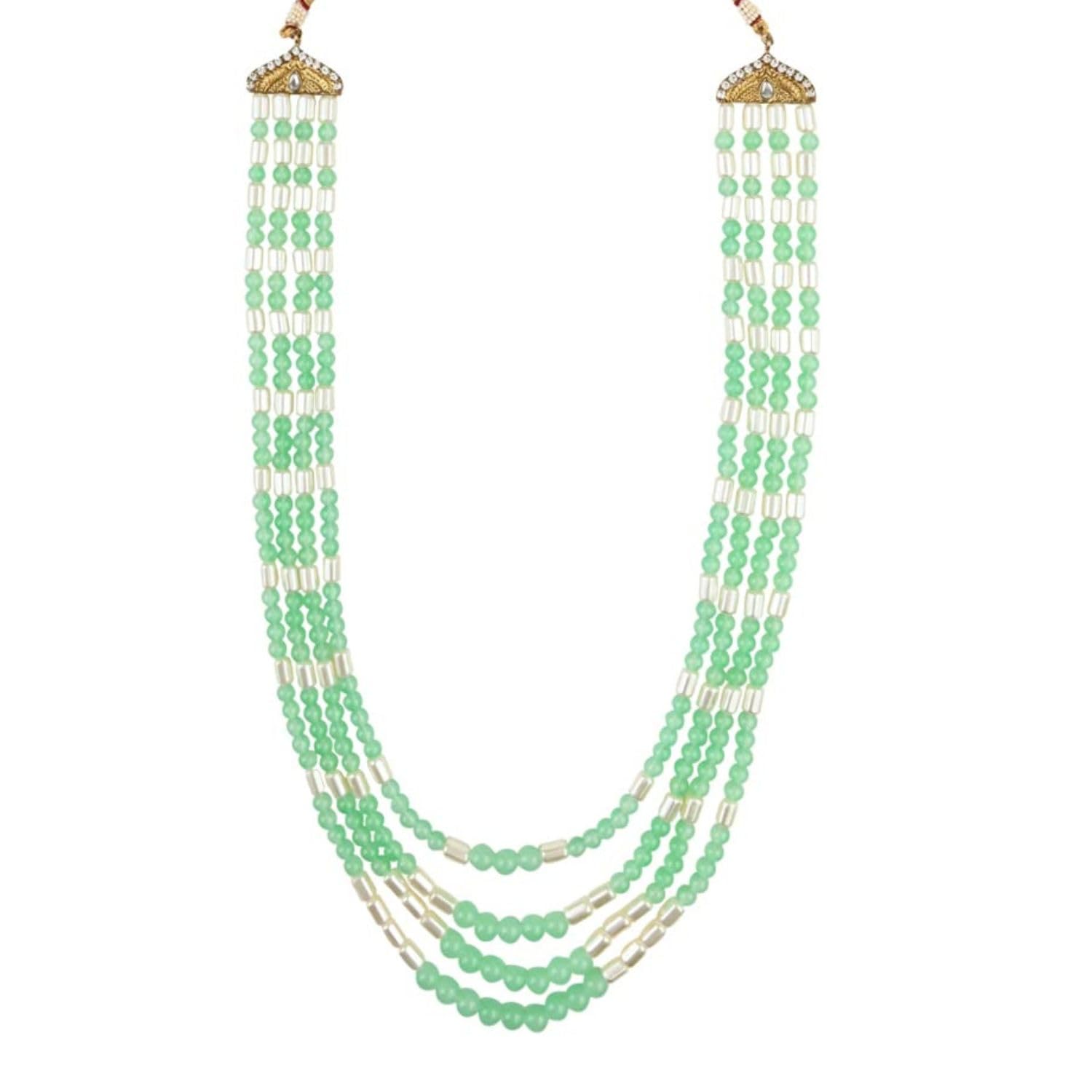 I Jewels 4 Layered Traditional Gold Plated Dulha Moti Mala with Beaded Maharaja Haar/Groom Long Necklace For Men(MLP44Min)