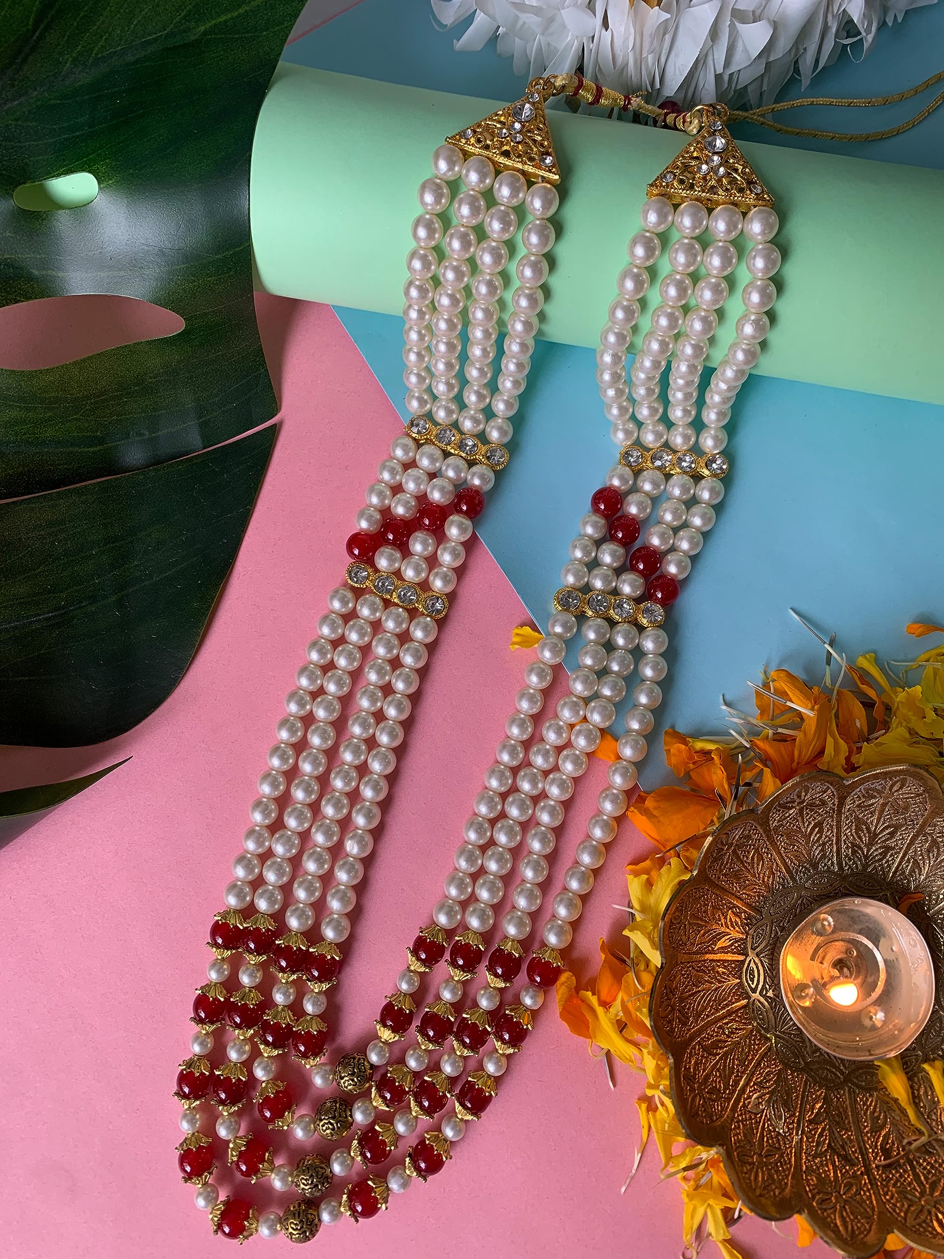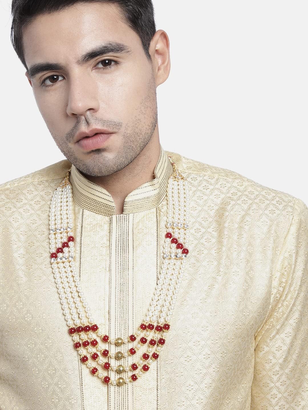 I Jewels 4 Layered Traditional Gold Plated Dulha Moti Mala with Stone Maharaja Haar/Groom Necklace For Men (MLP35)