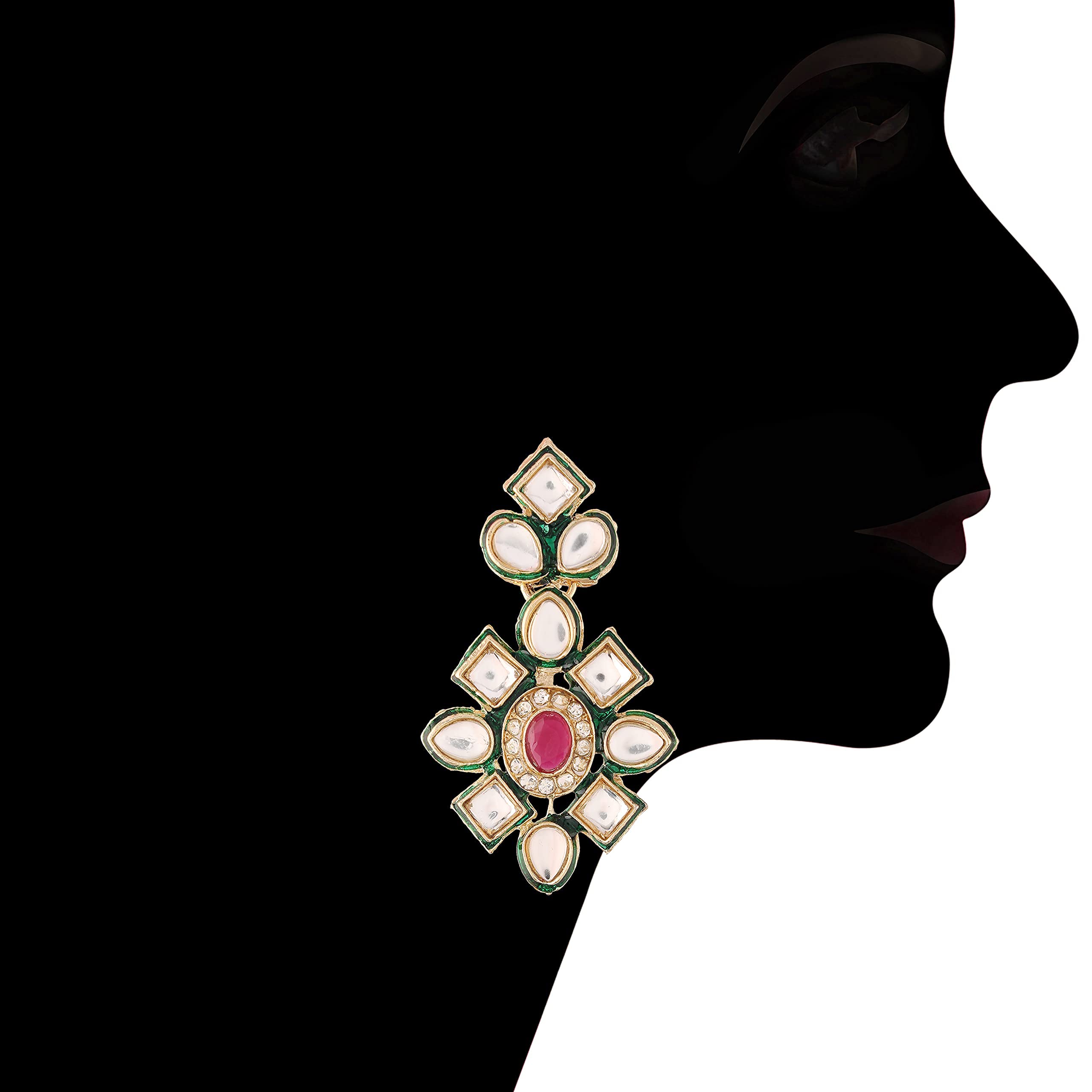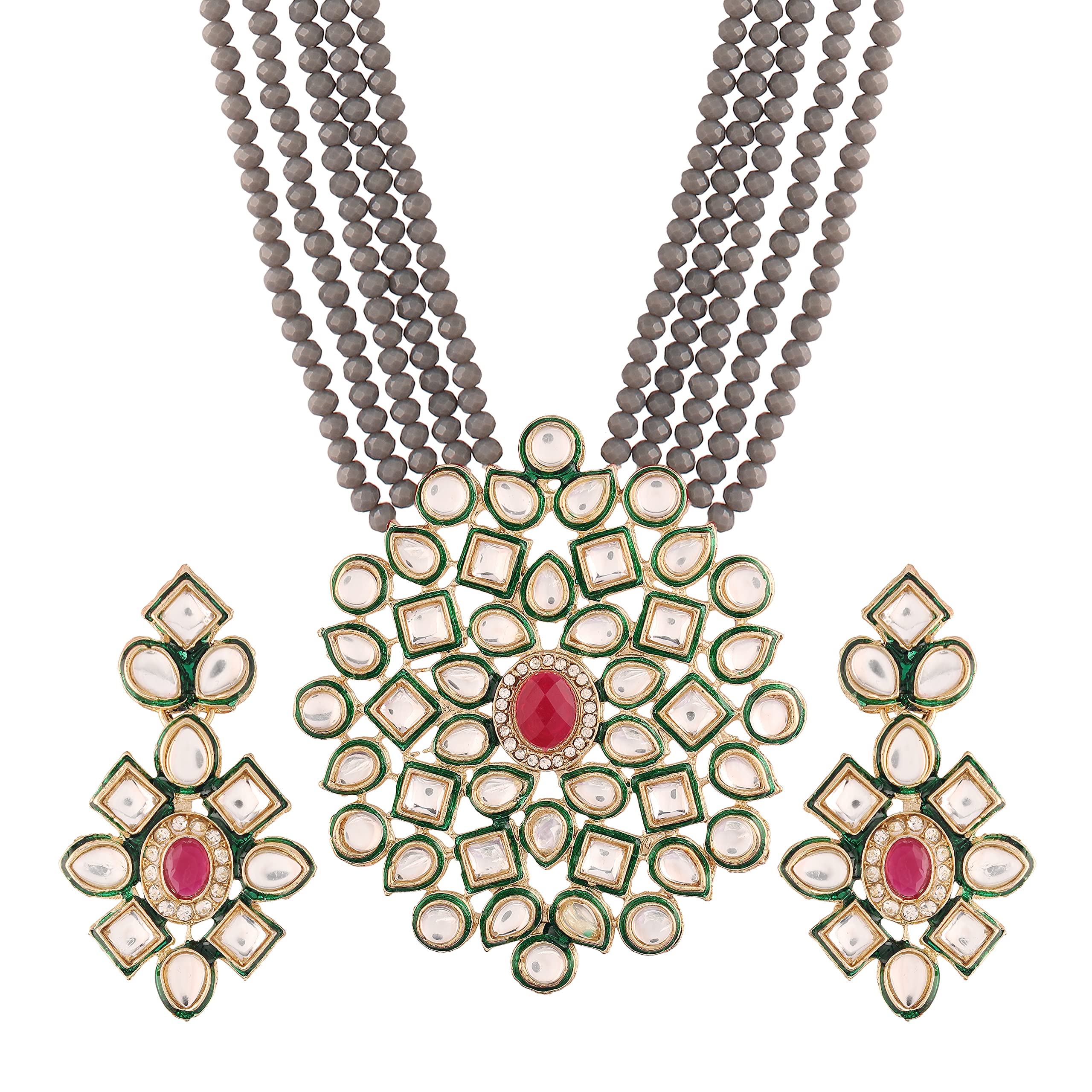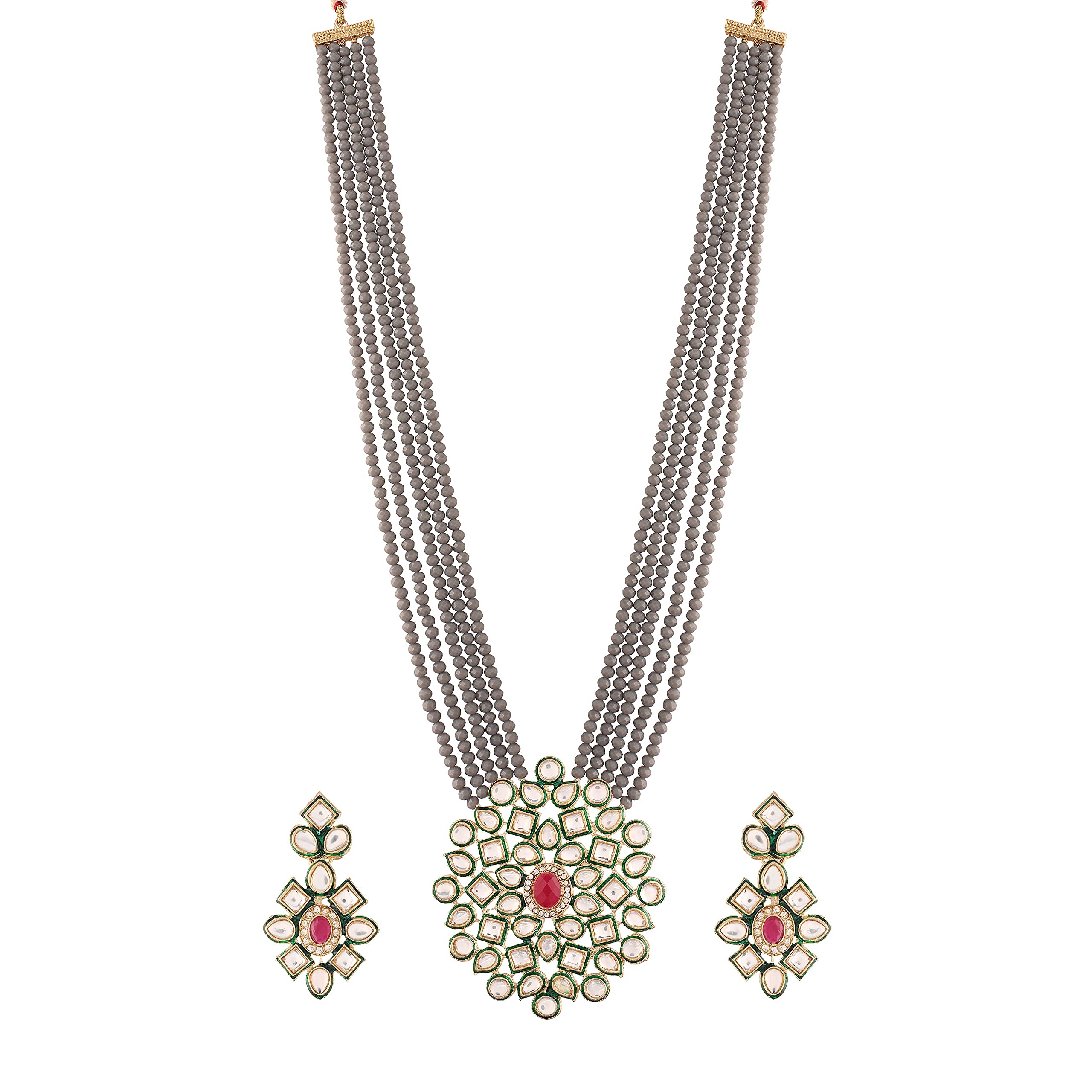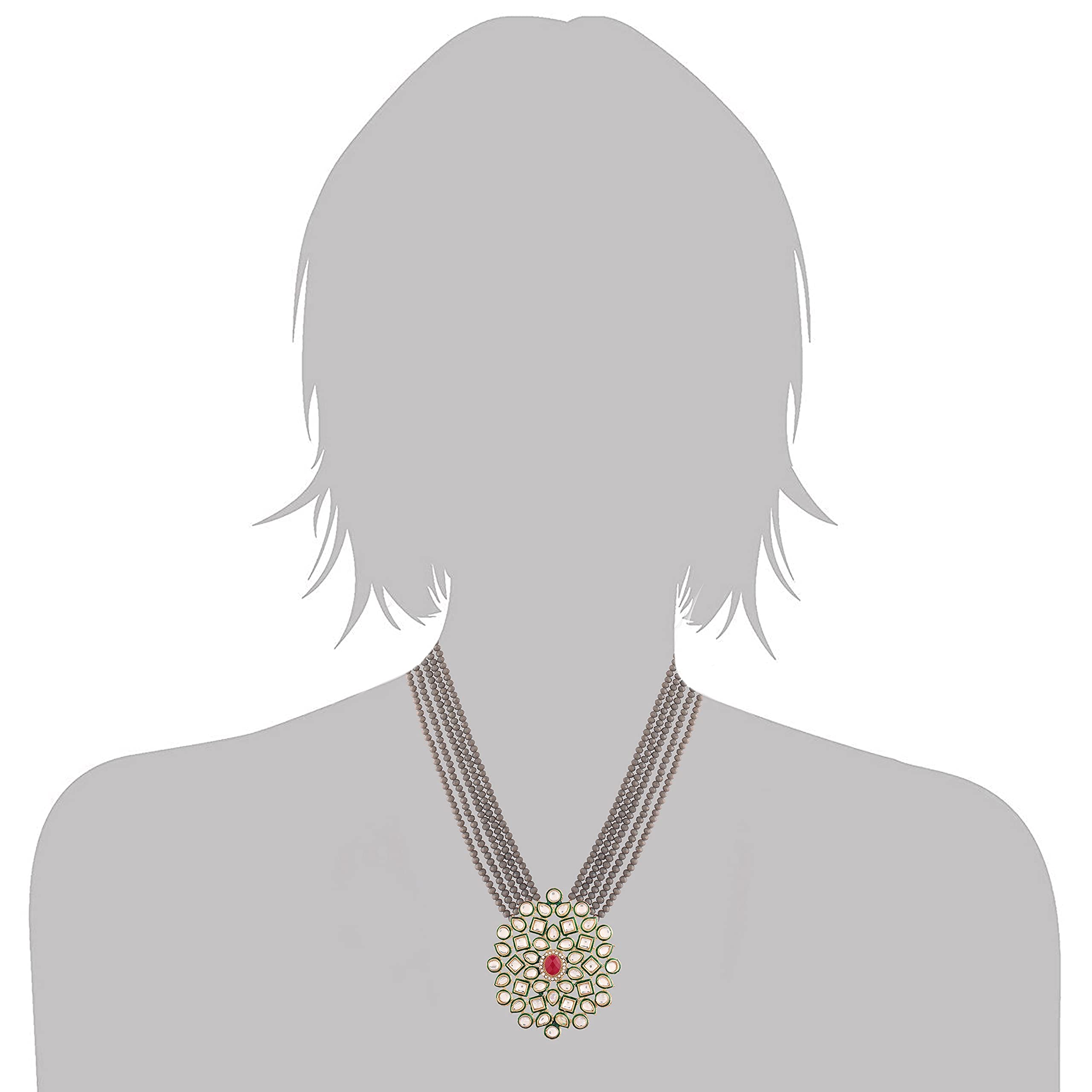 I Jewels 5 Layered Onyx Crystal Beads Alloy Necklace Jewellery Set Glided With Uncut Polki Kundan for Women & Girls (ML269)
