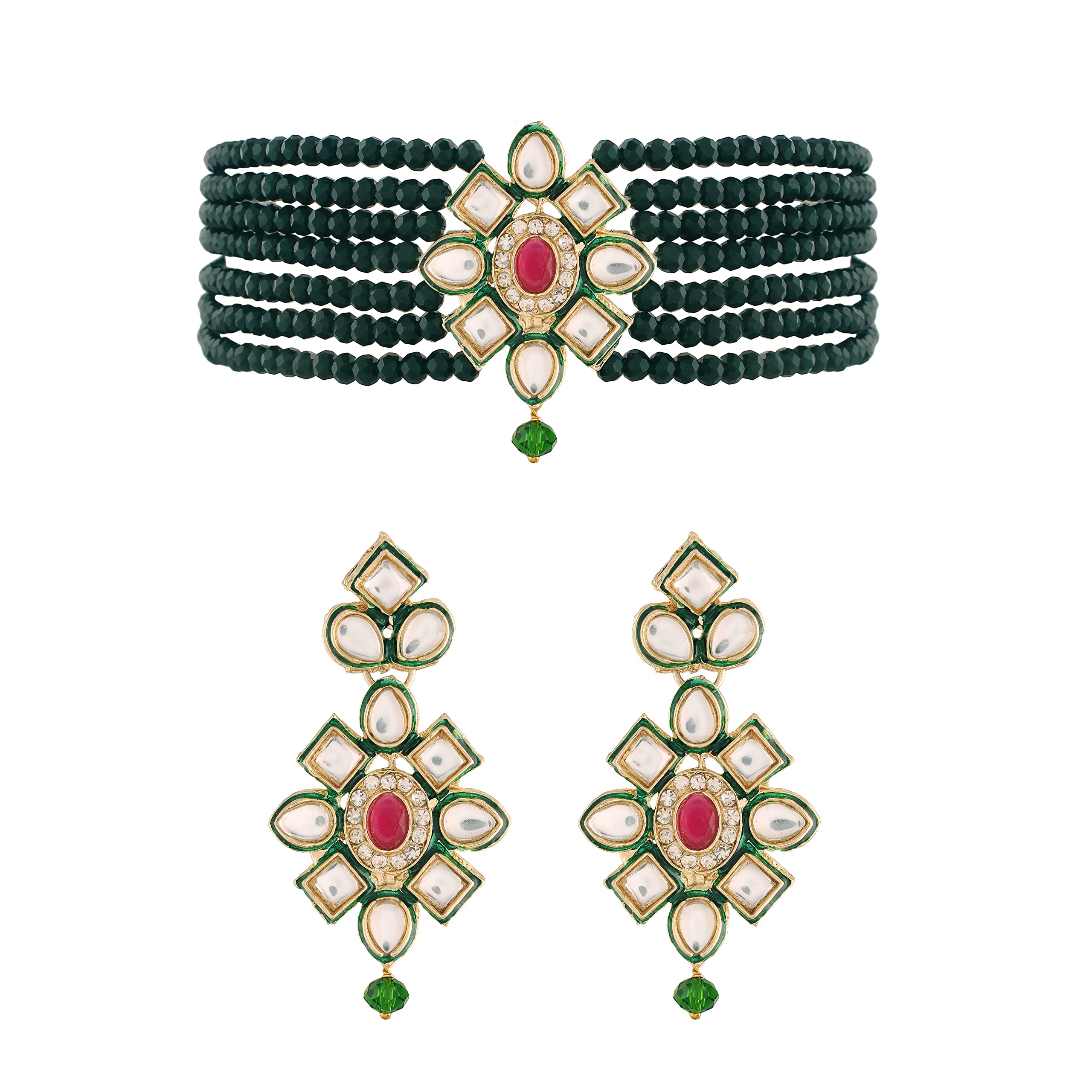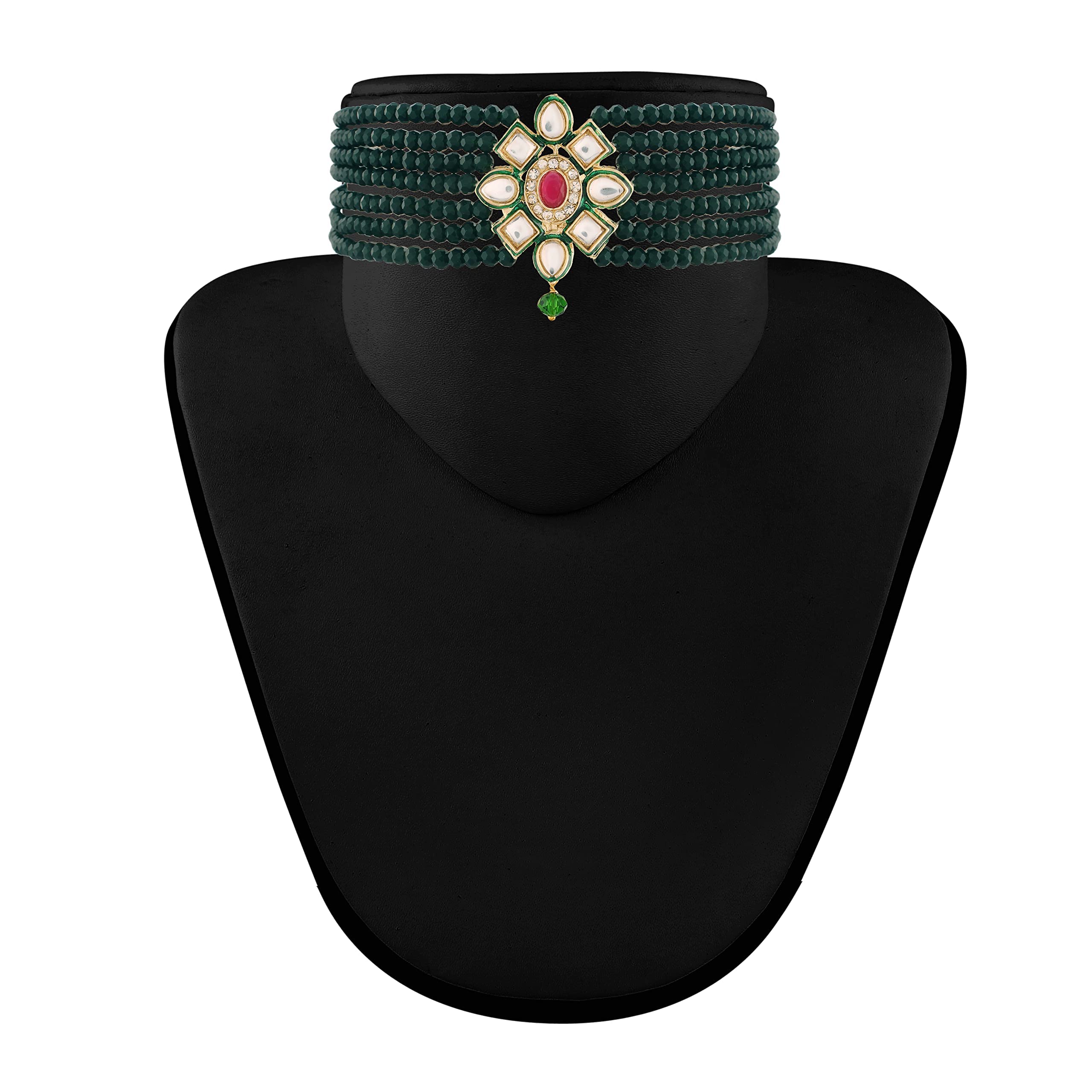 I Jewels Gold Plated Indain Wedding Bollywood Choker Set Glided With Kundan & Beads For Women (K7207)