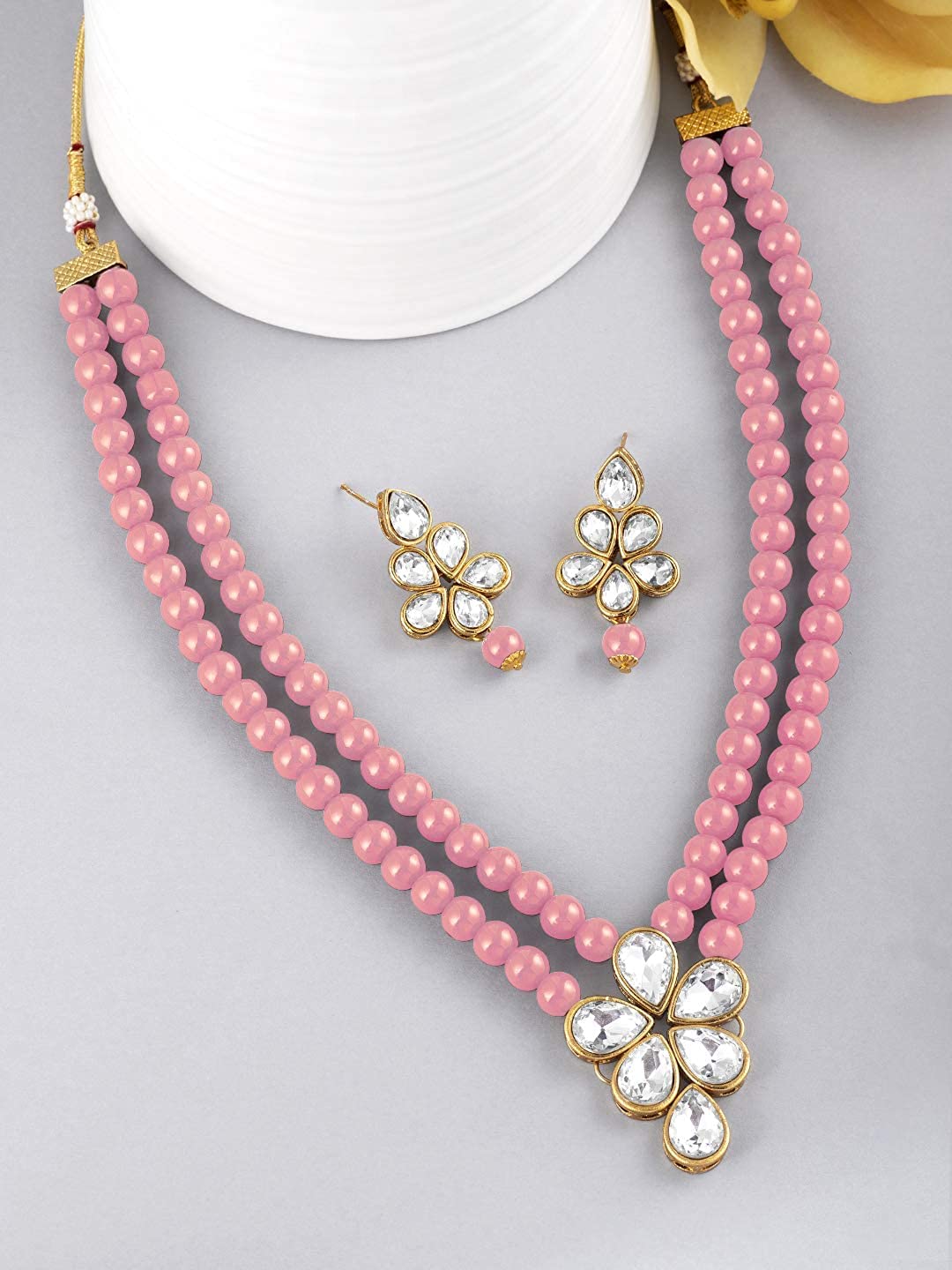 I Jewels Gold Plated Indian Wedding Bollywood Kundan & Pearl Studded Necklace Jewellery Set For Women (ML311)