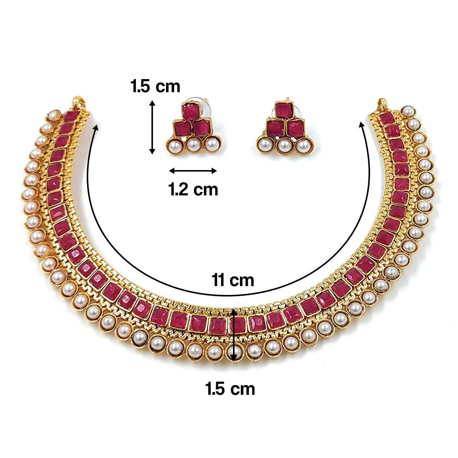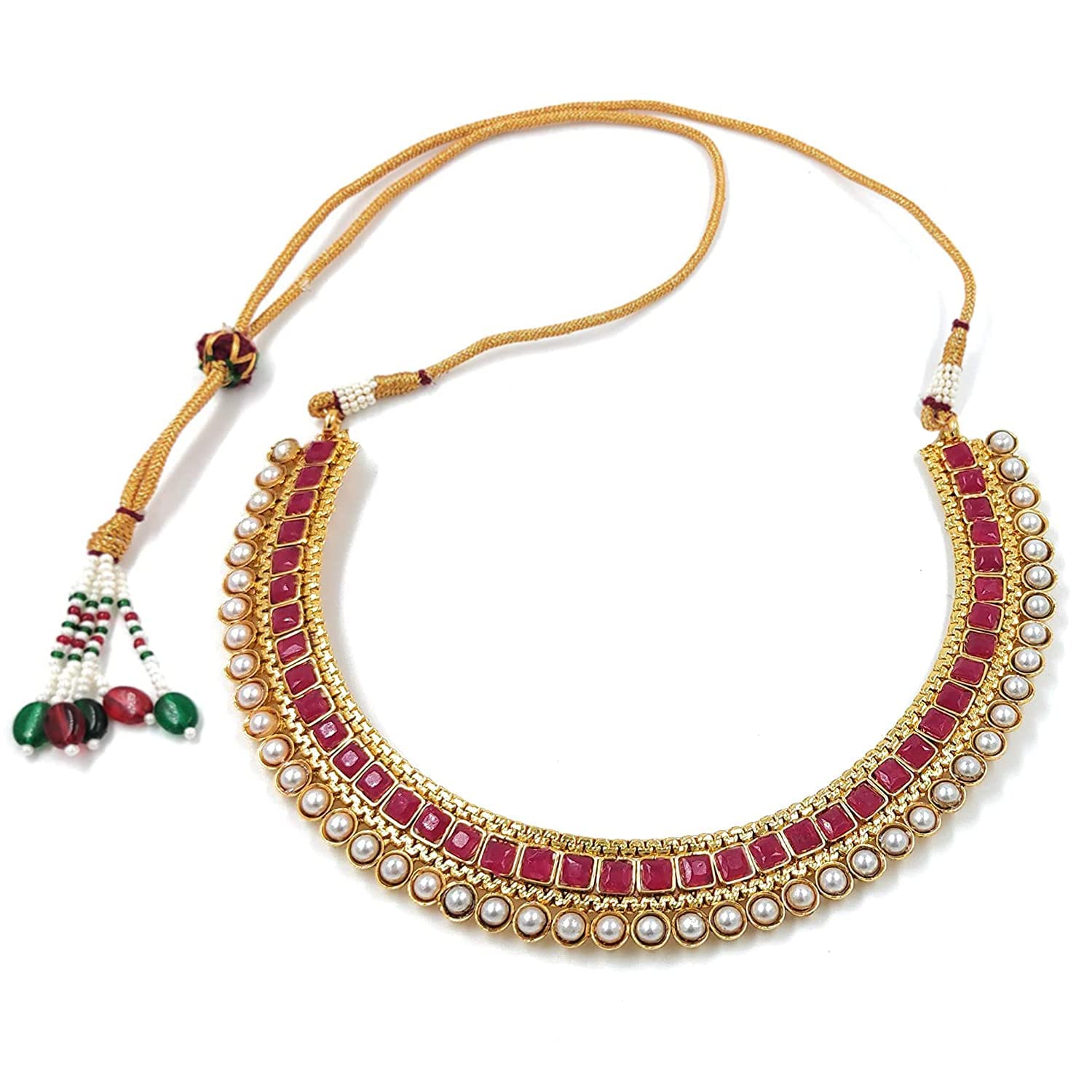 I Jewels Gold Plated Indian Wedding Bollywood Multi Choker Necklace Jewellery Set For Women (MC119-1)
