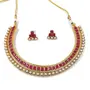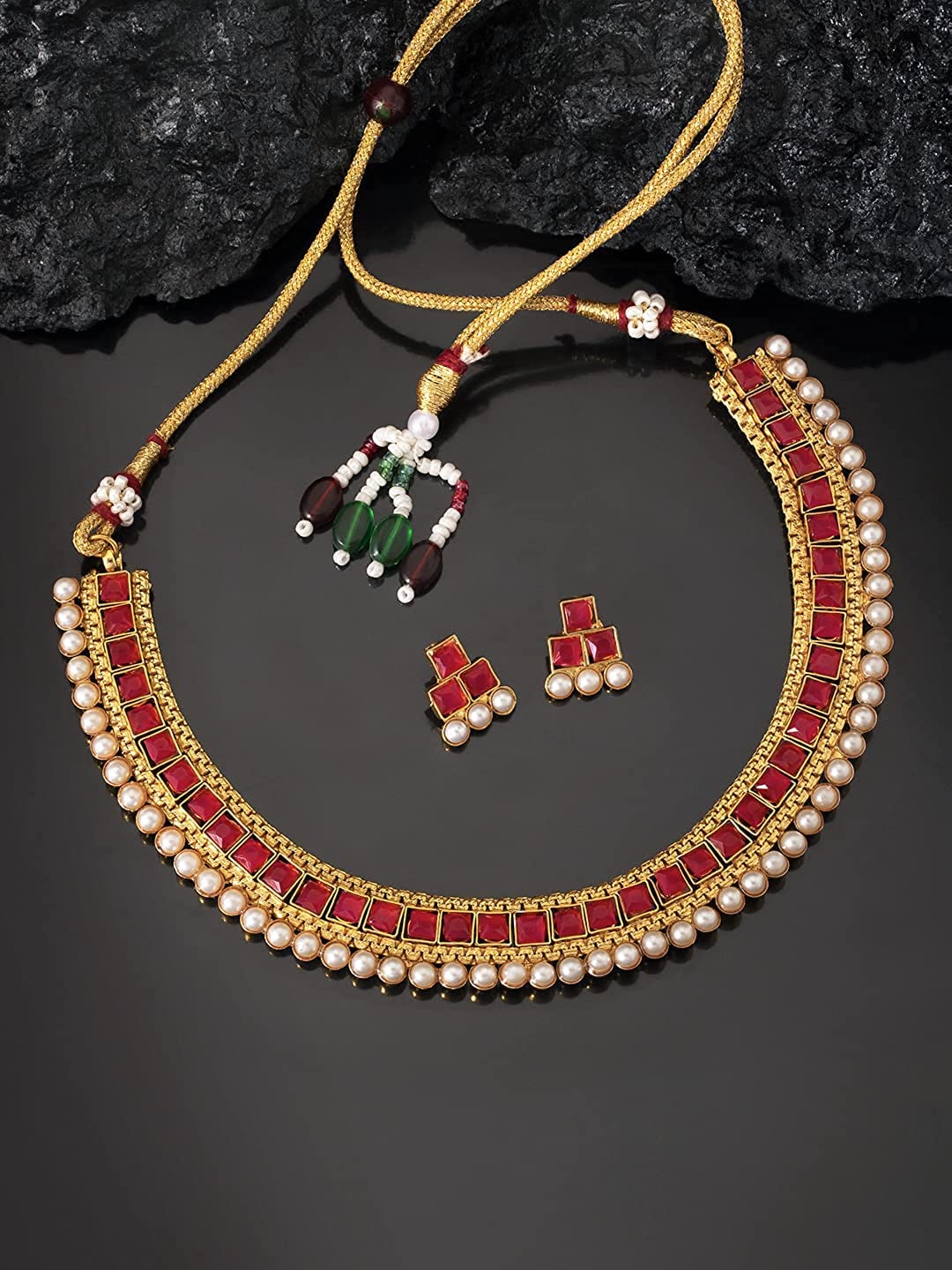 This jewellery set is crafted in gold plating and consists of a necklace and a pair of earrings. This necklace set with a saree or a salwar suit to enhance the look. This jewelry set is a great option and a perfect pick for your wedding functions. Be assured to find a variety of contemporary and traditional designs in the mesmerising collection that we offer.