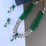 The Gold Plated Traditional White Kundan Studded Multi Layered Pearl Necklace Jewellery Set with Dangle Earrings is a beautiful and elegant piece of Indian jewelry. The set includes a multi-layered necklace and matching dangle earrings both adorned with white Kundan stones and pearl beads. The necklace features multiple layers of pearl beads with the top layer being a choker-style design and the lower layers gradually becoming longer. The Kundan stones are set in gold-plated bases and are strategically placed throughout the necklace adding a touch of sparkle and glamour. The combination of pearls and Kundan stones creates a classic and timeless design that is perfect for weddings parties and other special occasions. The matching dangle earrings feature a similar design to the necklace with white Kundan stones and pearl beads dangling from a gold-plated base. The earrings are perfect for those who prefer a more traditional style of Indian jewelry with a touch of modern elegance. Overall this set is a beautiful and versatile addition to any collection. It can be worn with traditional Indian attire such as a saree or lehenga or with modern western wear such as a cocktail dress or gown. The intricate design and high-quality craftsmanship make it a piece that can be cherished for years to come.
