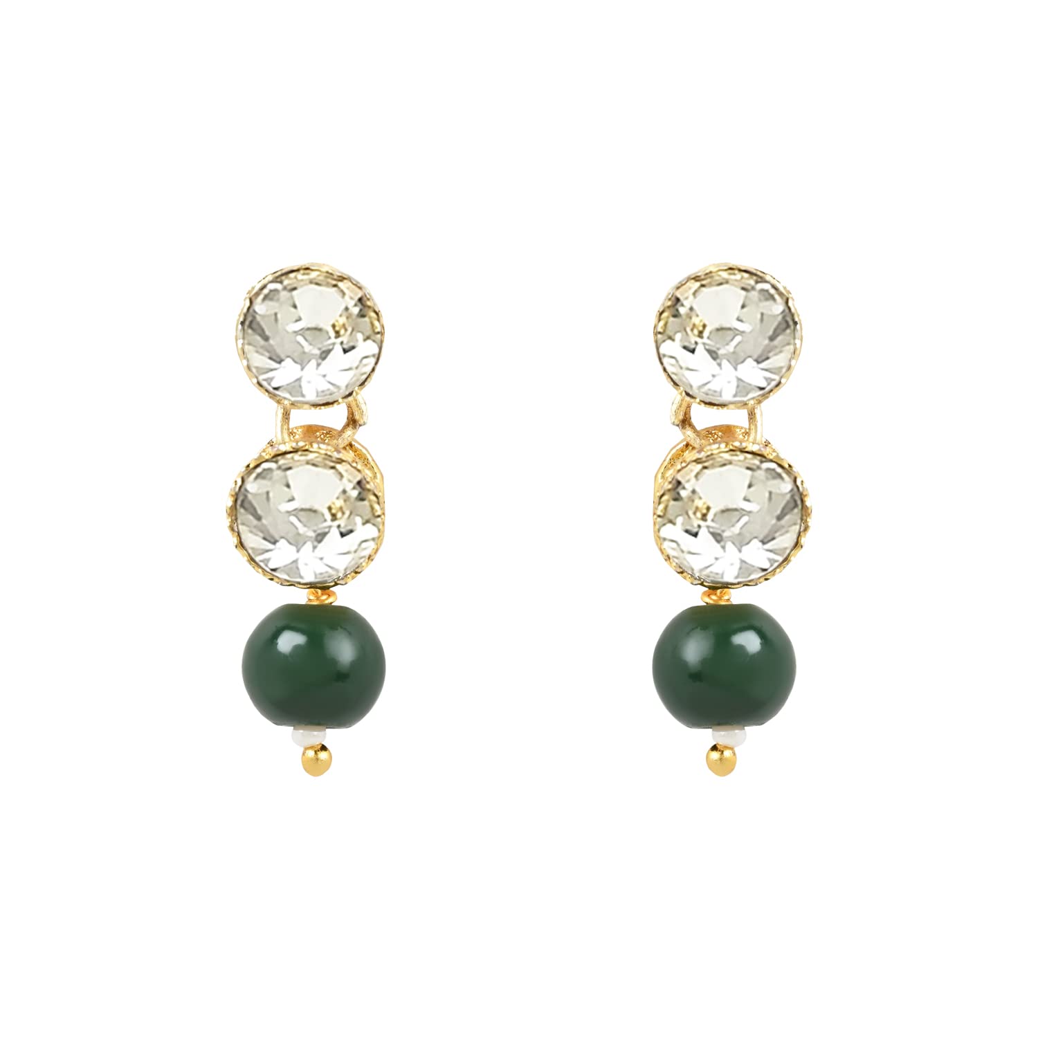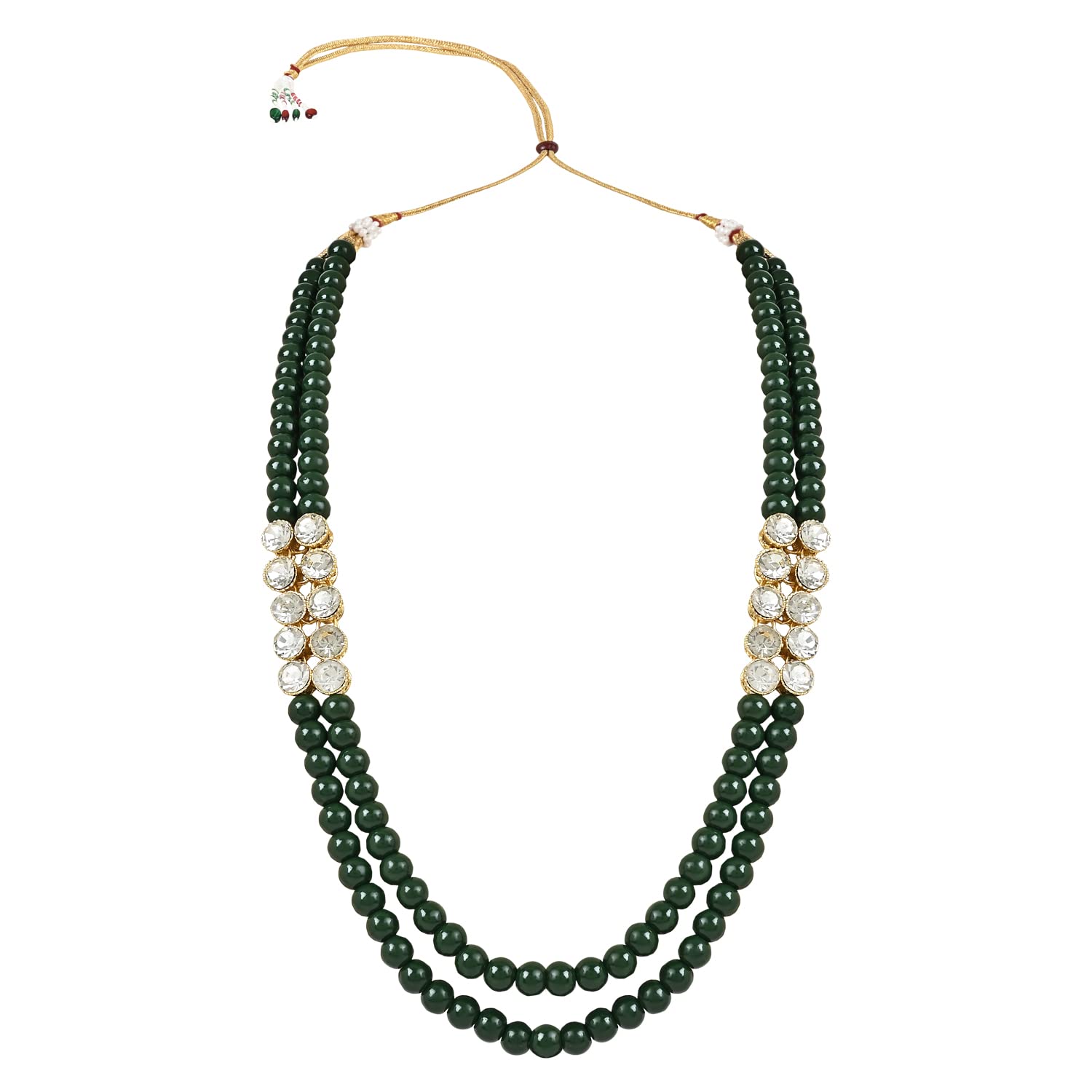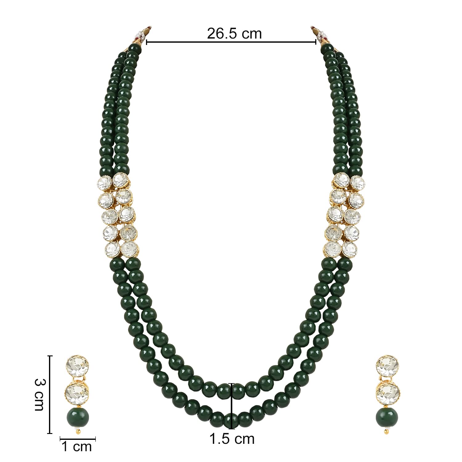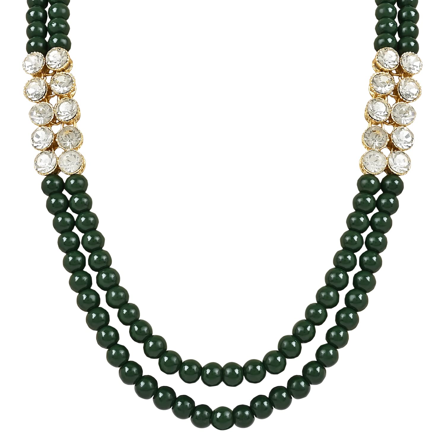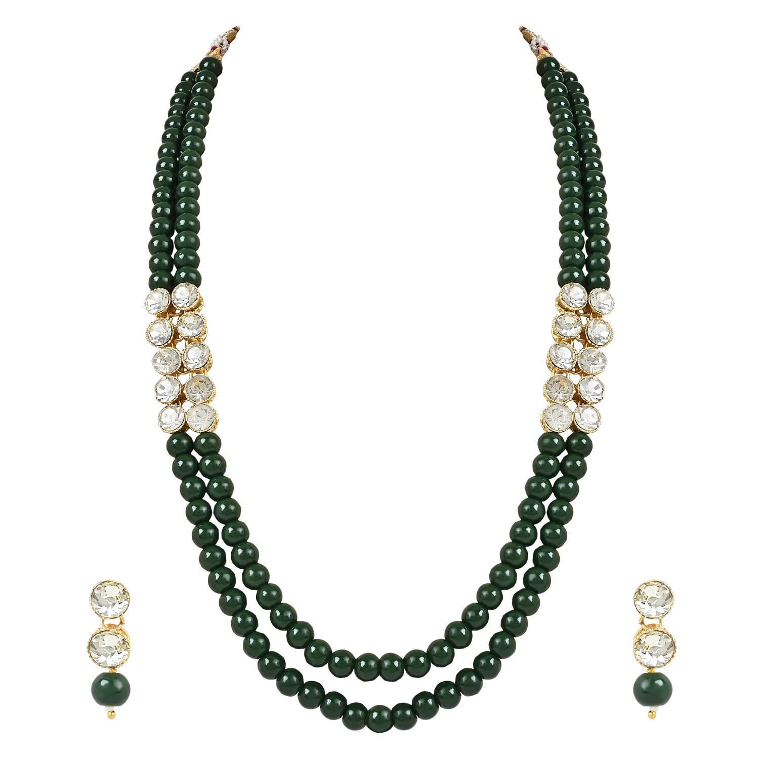 I Jewels Gold Plated Indian Wedding Bollywood Stunning White Stone Layered Pearl Necklace Jewellery Set with Earrings For Women