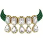 This jewellery set is crafted in 18K gold plating and consists of a Choker and a pair of earrings. The choker necklace feature beads & pearls-studded in it and is secured with a drawstring closures. Style this necklace set with a saree or a salwar suit to enhance the look.