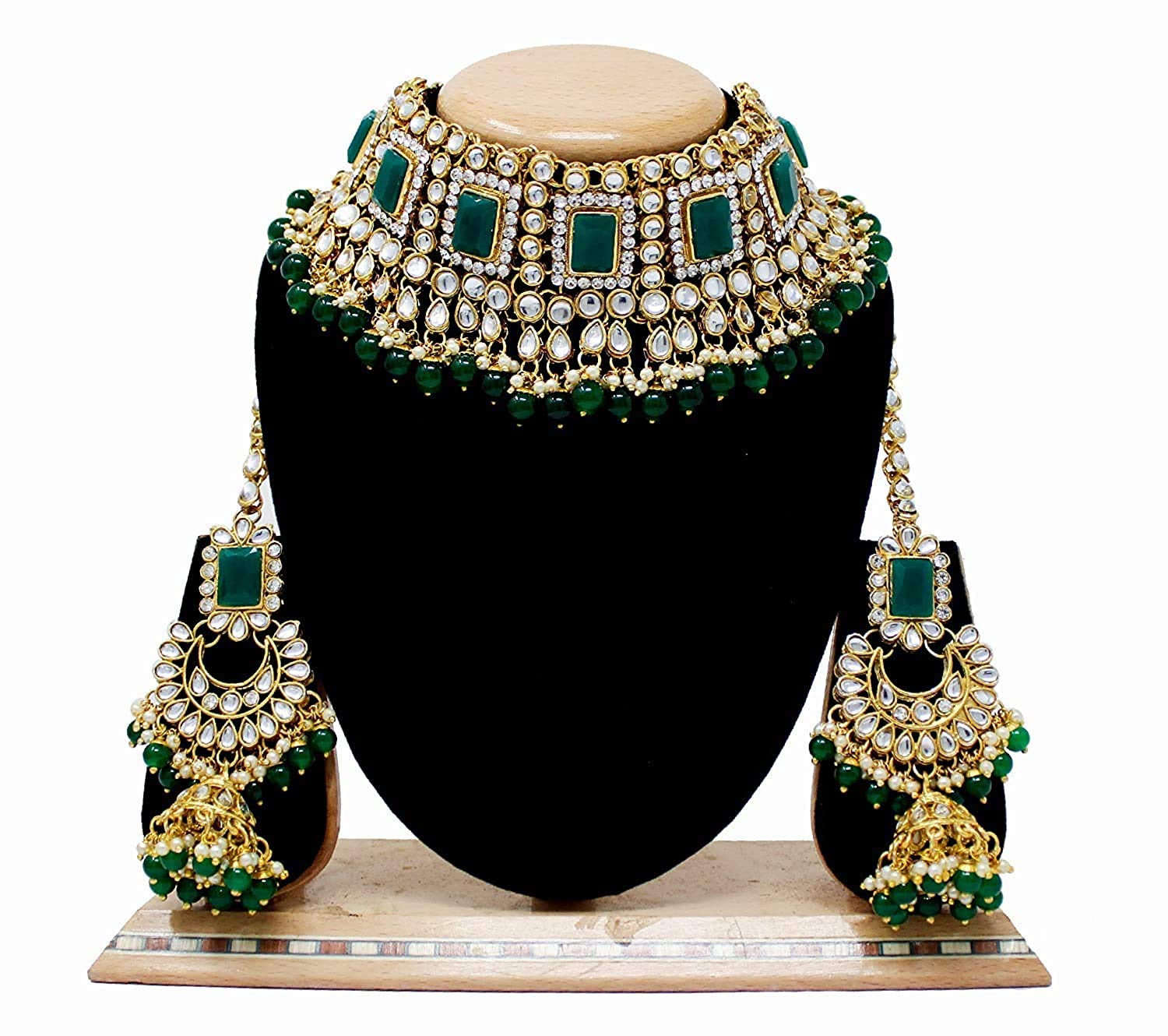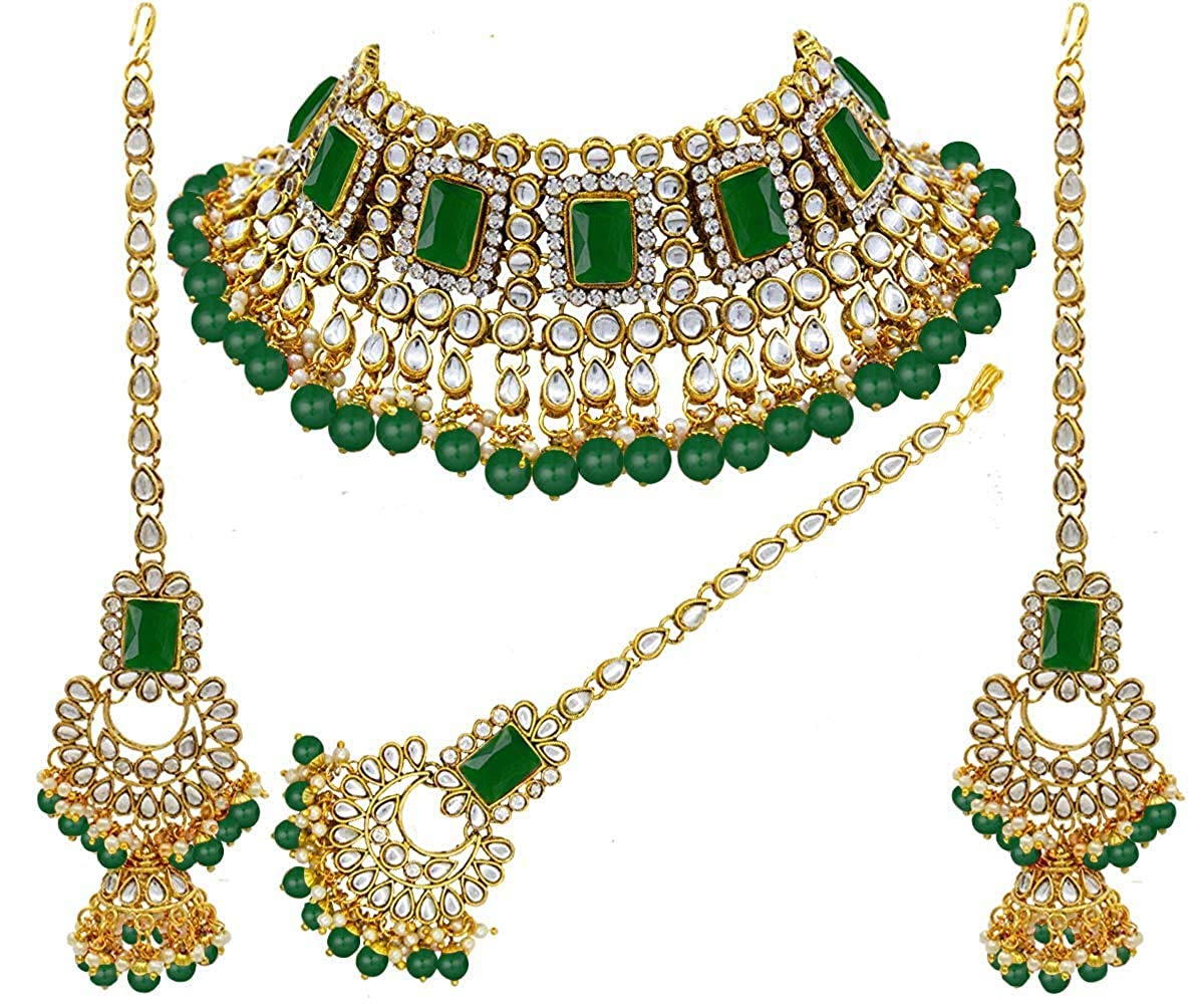 HomeFashionNecklaceI Jewels Gold Plated Traditional Handcrafted Faux Kundan & Pearl Studded Bridal Choker Necklace Jewellery Set with Earrings & Maang Tikka For Women (IJ401)