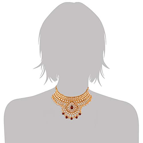 I Jewels Gold Plated Traditional Kundan Choker Necklace Set with Earrings & Maang Tikka For Women