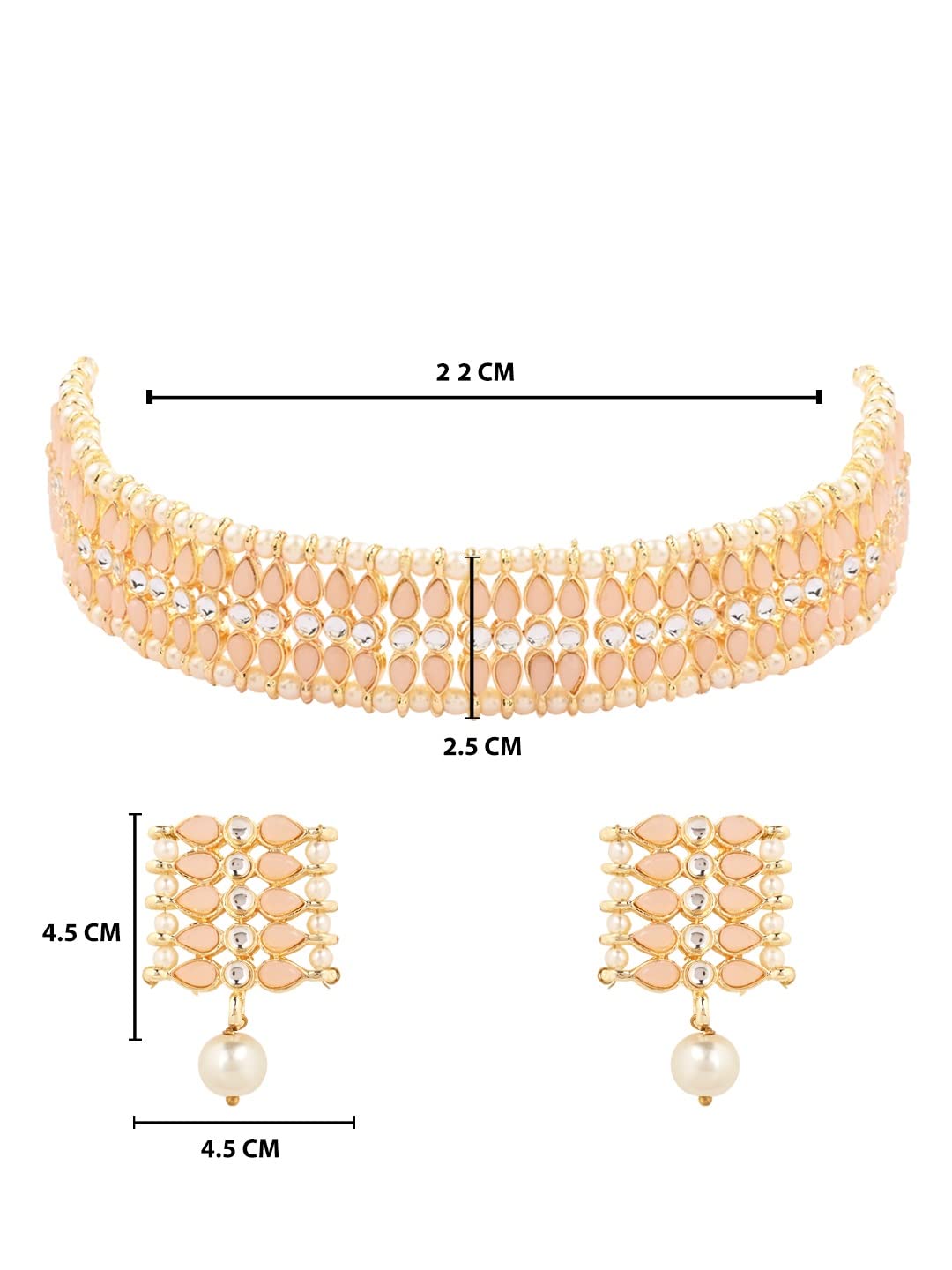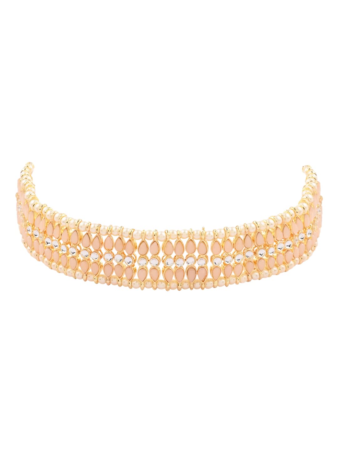 This jewellery set is crafted in 18K gold plated traditional light weight Pearl choker set glided with Kundan work. The necklace feature Pearl & Kundan work in it and is secured with a drawstring closures. Style this necklace set with a saree or a salwar suit to enhance the look.