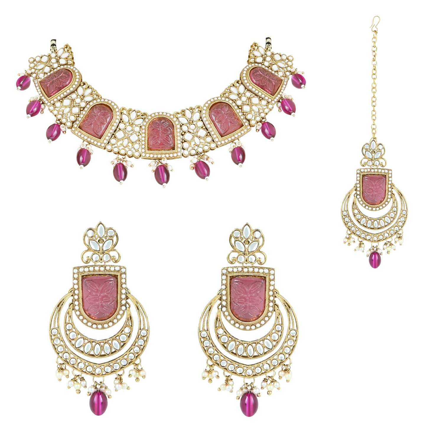 I Jewels Gold Plated Traditional Kundan Pearl Choker Necklace Jewellery Set For Women/Girls (K7234)
