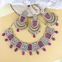 This jewellery set is crafted in Gold plating and consists of a necklace and a pair of earrings. The long necklace feature multicolor stone studded in it and is secured with a drawstring closures. Style this necklace set with a saree or a salwar suit to enhance the look. This jewelry set is a great option and a perfect pick for your wedding functions.