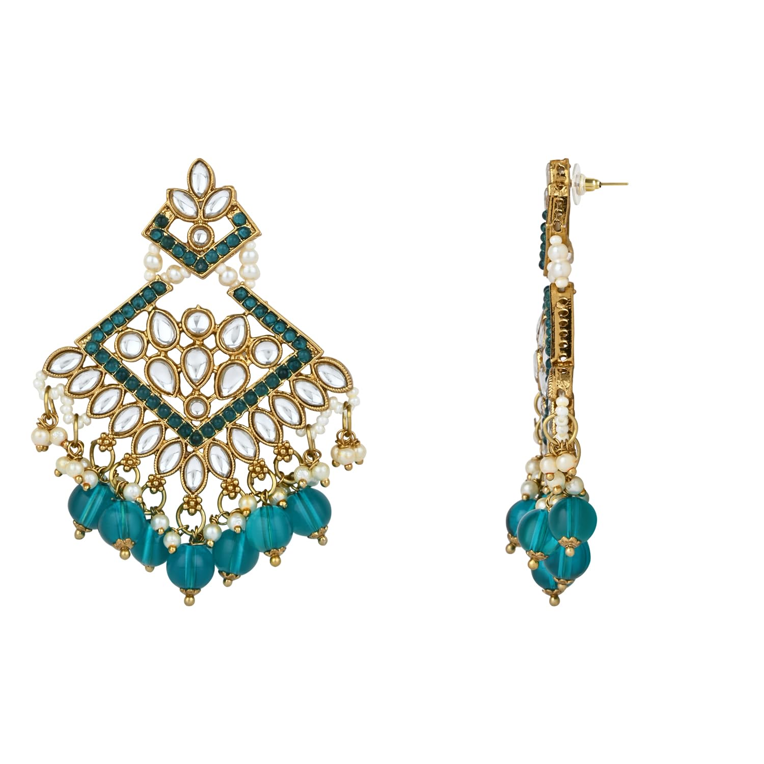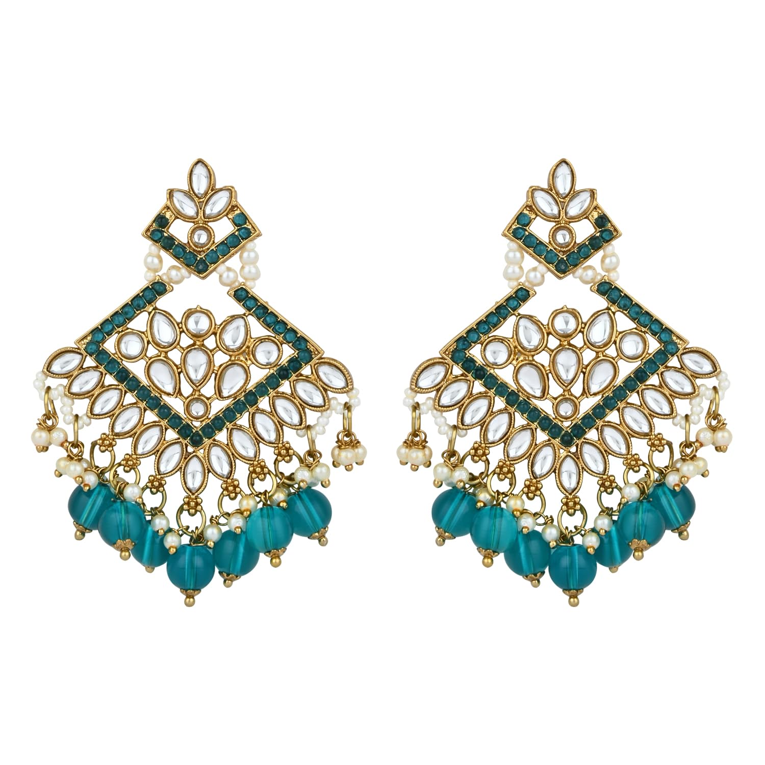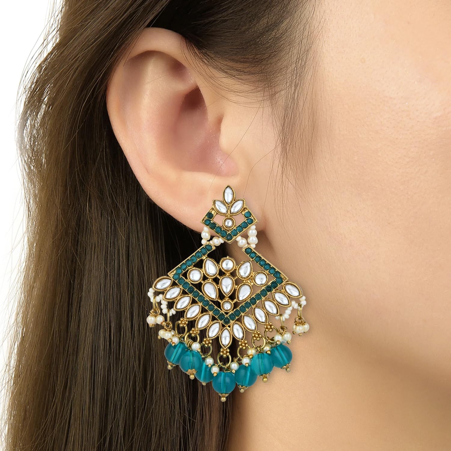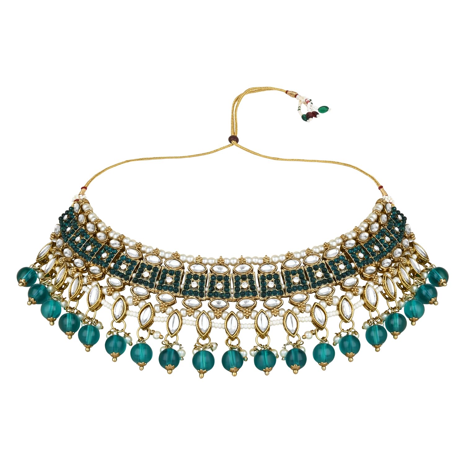 I Jewels Gold Plated Traditional Kundan Pearl Drop Choker Necklace Jewellery & Dangle Earrings Set For Women/Girls (K7273)