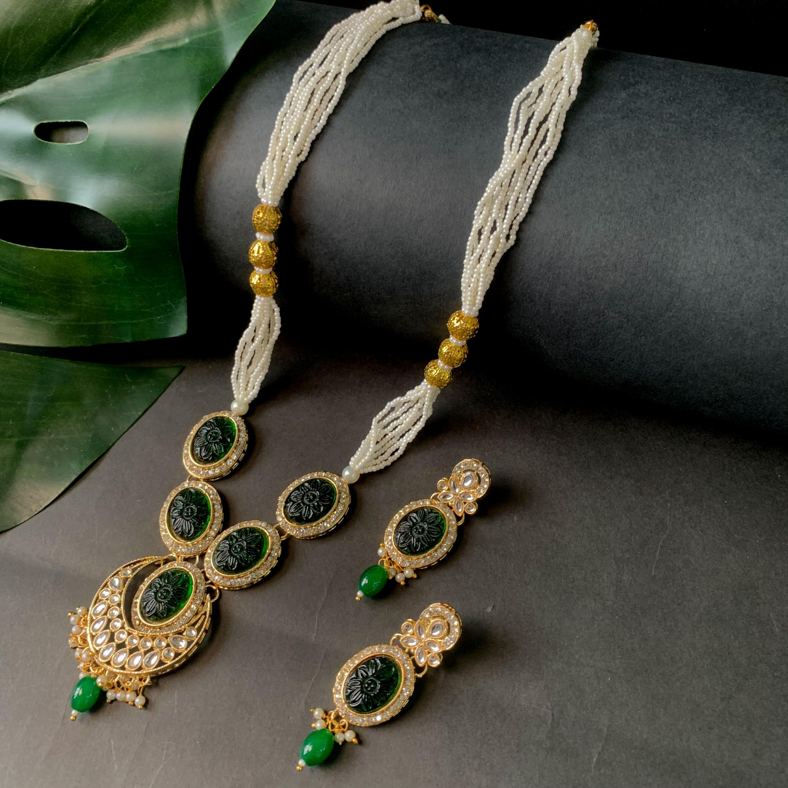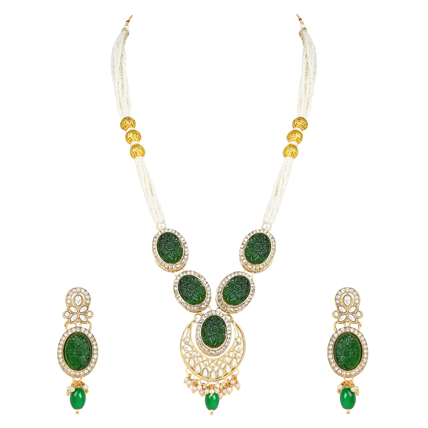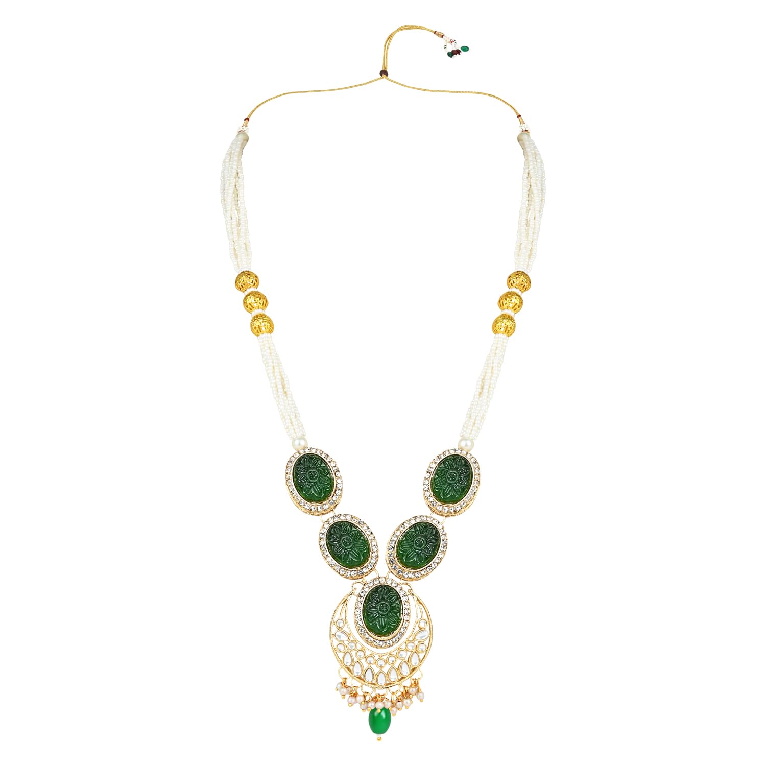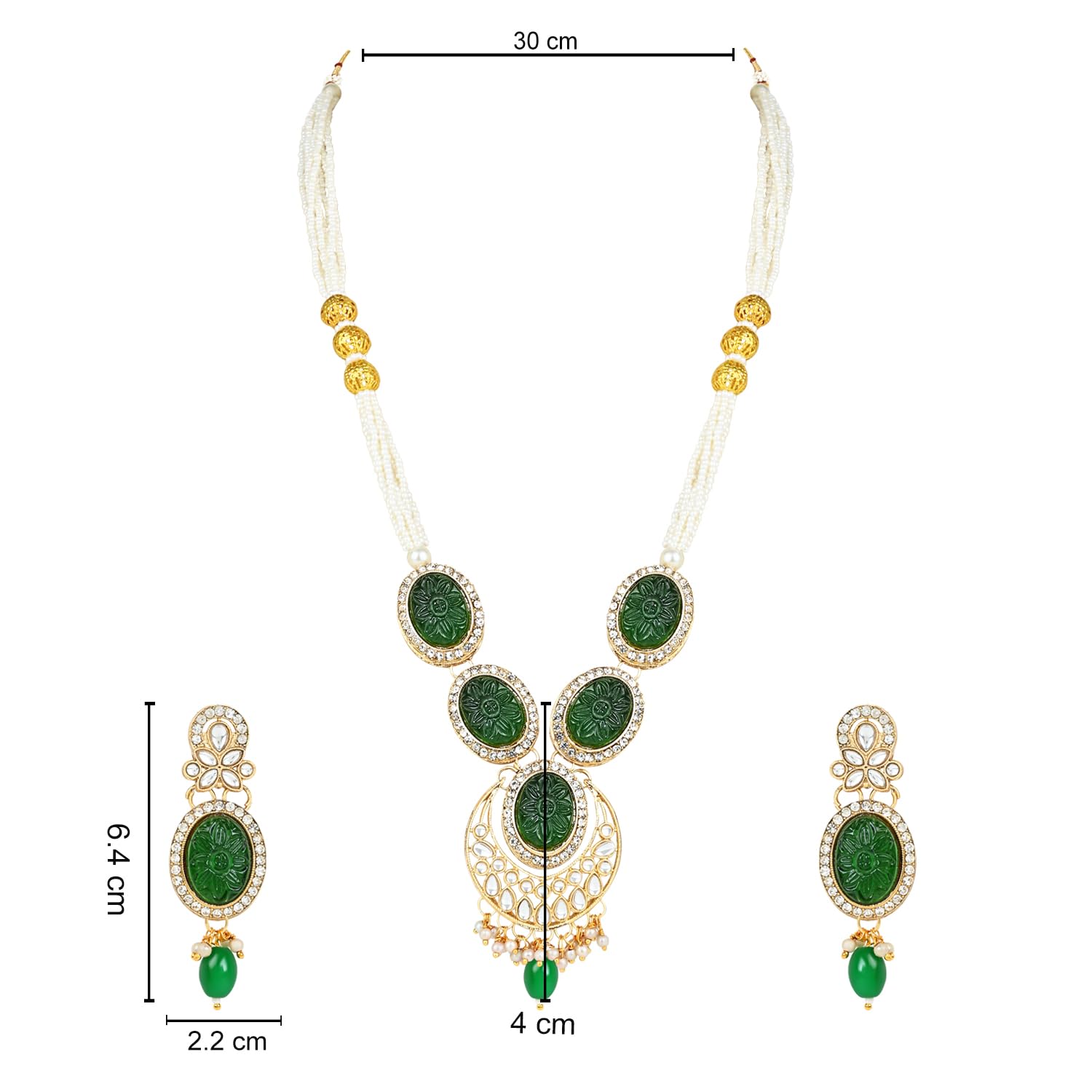 I Jewels Gold Plated Traditional Long Multistrand Pearl Necklace Jewellery & Earrings Set For Women/Girls (ML335)