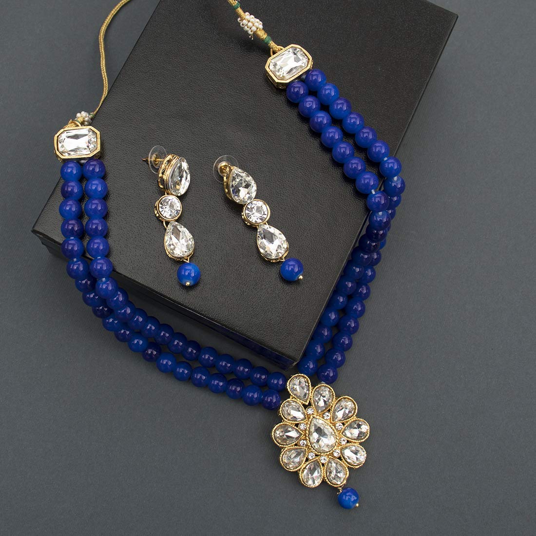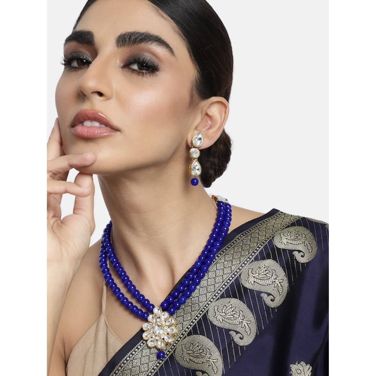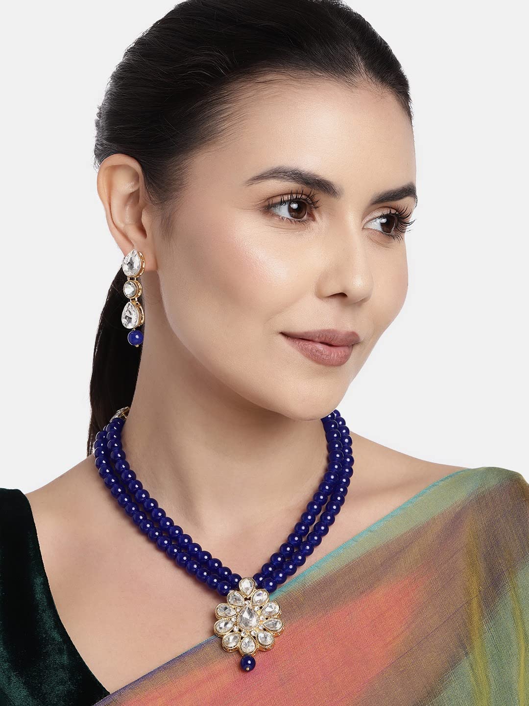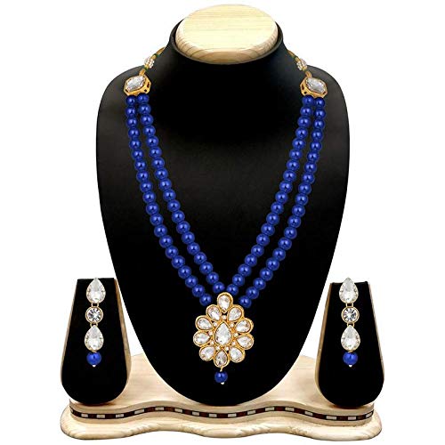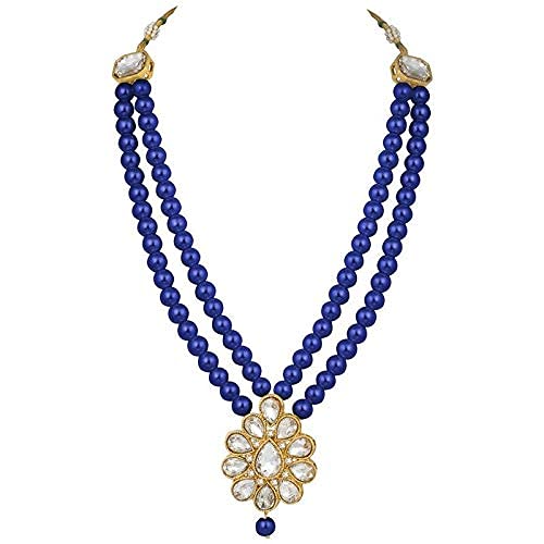 I Jewels Gold Plated Traditional Pearl & Stone Necklace & Earrings Jewellery Set For Women (ML140Pu)