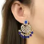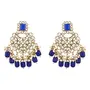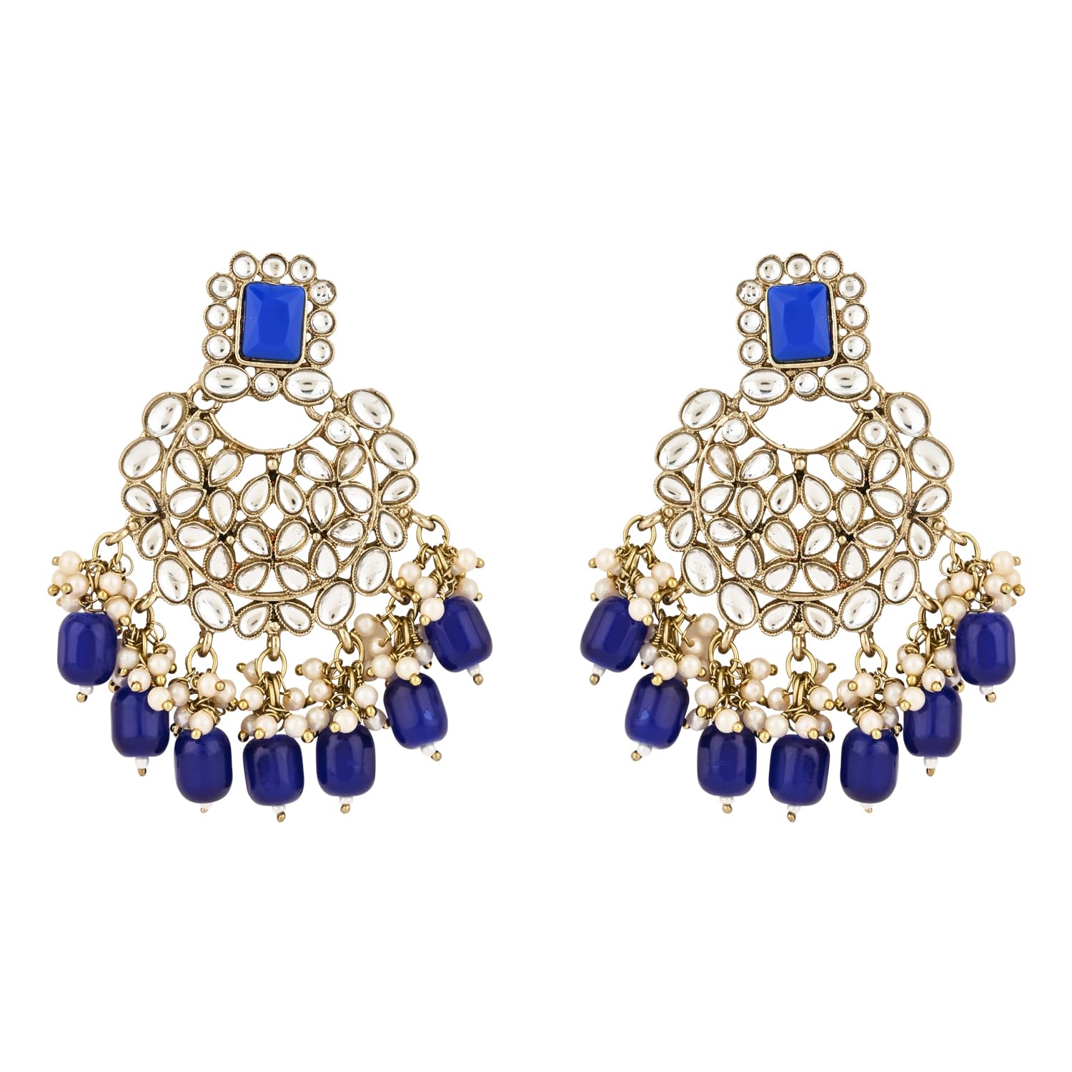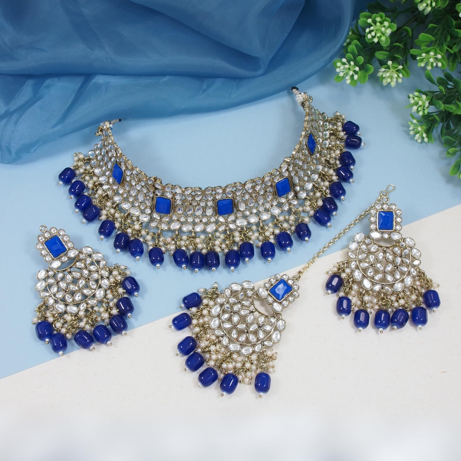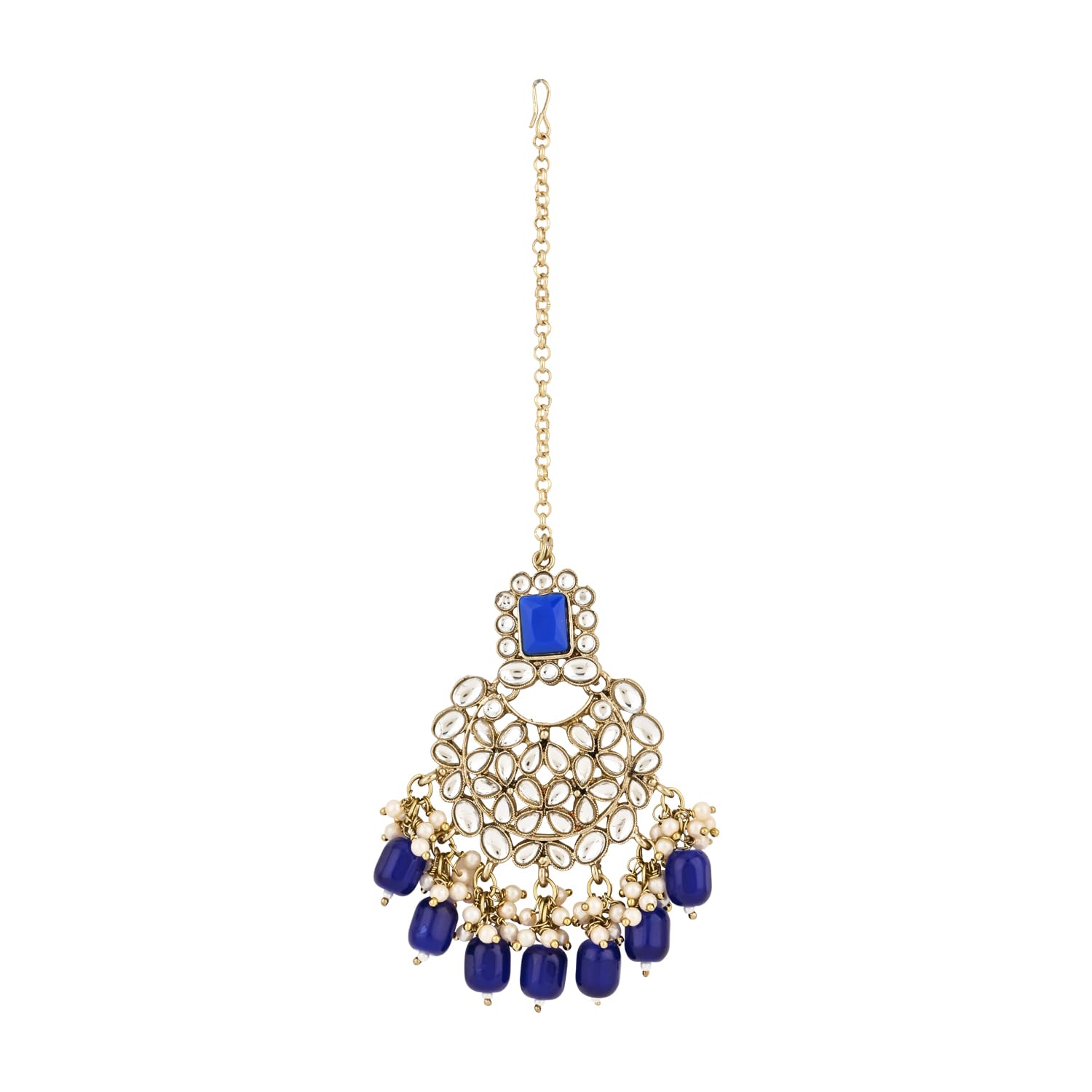 This jewellery set is crafted in 18K gold plating traditional stone studded necklace and a pair of earrings. The necklace feature stone studded in it and is secured with a drawstring closures. Style this necklace set with a saree or a salwar suit to enhance the look.